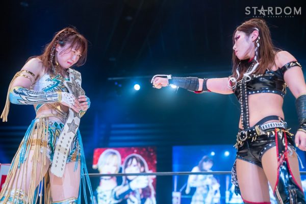 朱里「初代ワールド・オブ・スターダム・チャンピオン高橋奈七永の挑戦表明ってことでいいですか? スターダムの歴史に必要な人。私はアナタとやりたいと思ってた。でも、ちょっといろいろ言い方? 改めてもらってもいいですか? パッション? パッションがない? いまのスターダム、バカにしてんじゃねーよ! いまのスターダム…いや、いまの女子プロレスの強さを見せつけてやるよ。オマエ、高橋奈七永から勝利し、私が最強を名乗らせてもらう」