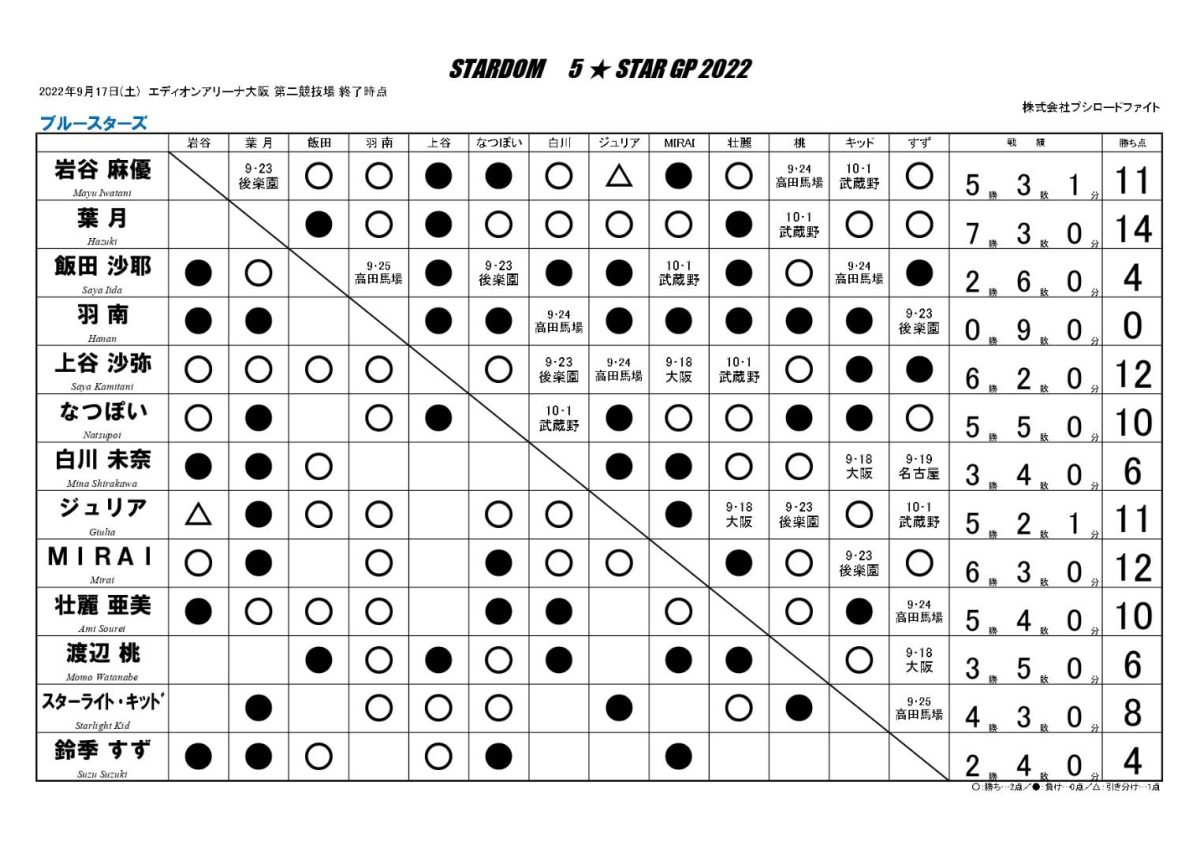 桜井まいと世羅りさが5★STAR GP公式戦で初シングル。両者は7・23名古屋での「ショーケース」で対戦。そのときはドンナ・デル・モンドのジュリア&桜井組とプロミネンスの世羅りさ&鈴季すず組によるハードコアマッチだった。このときは桜井がすずのジャーマンに敗れたがハードコア初挑戦で意外な適応ぶりを発揮したのもまた事実。桜井がプロミネンスのリーダー相手にリベンジなるか?