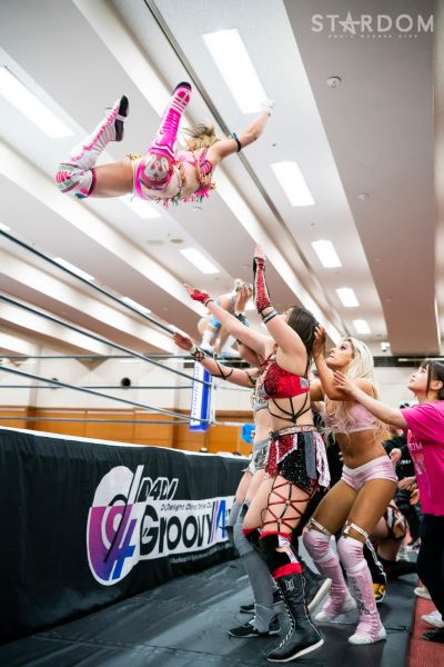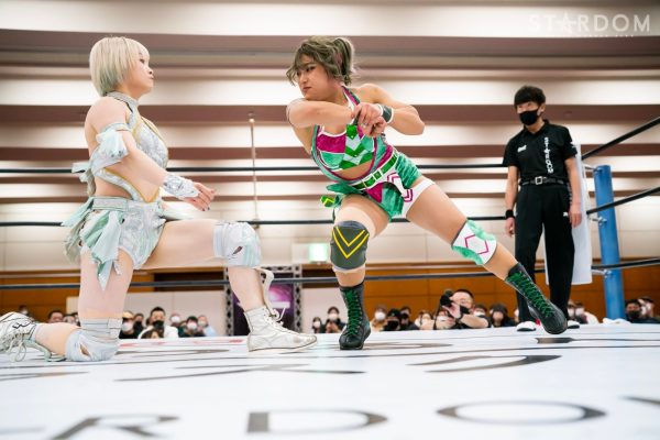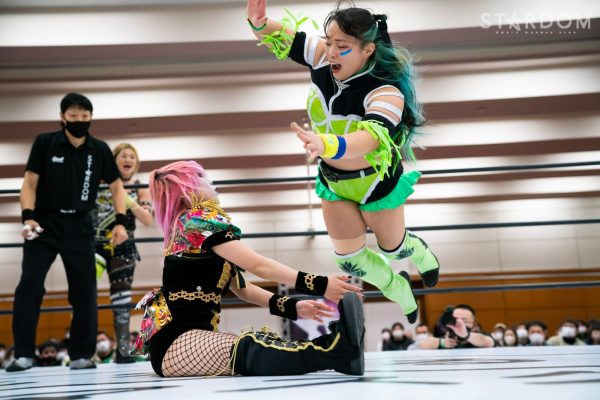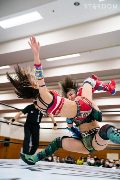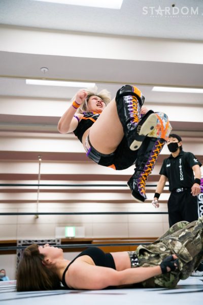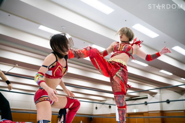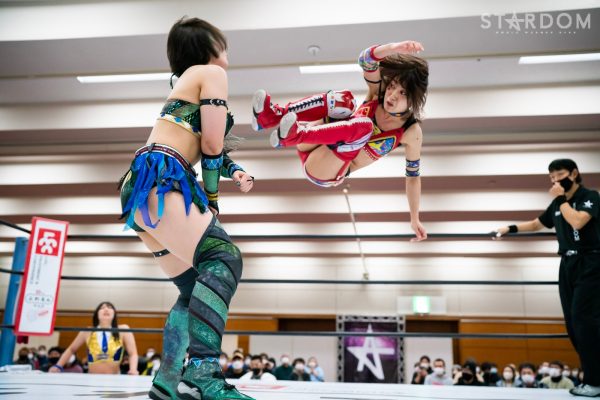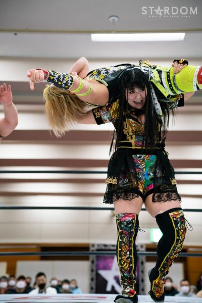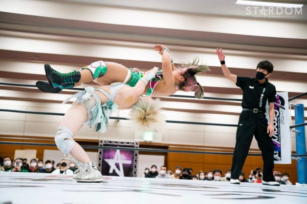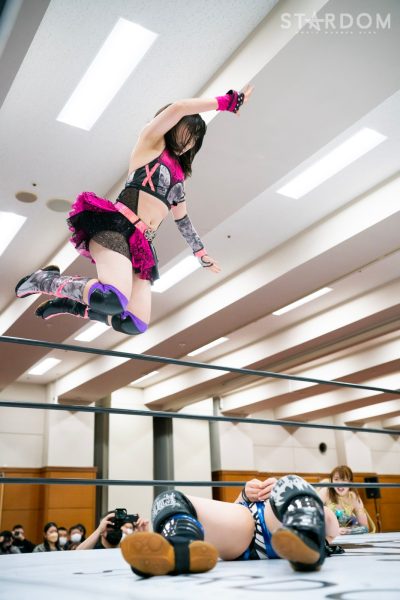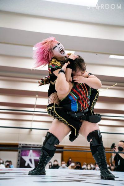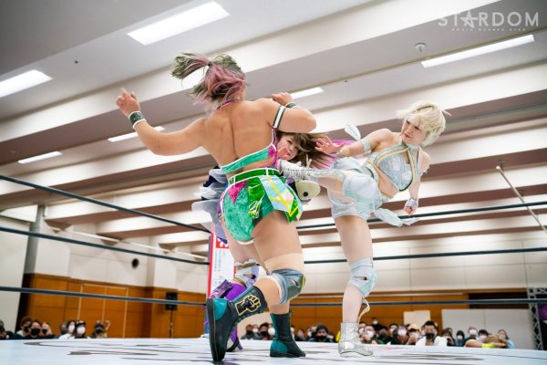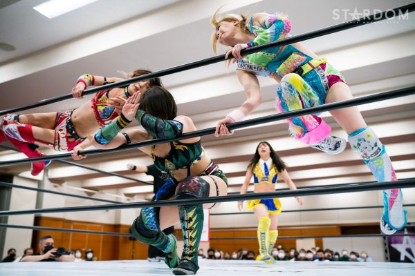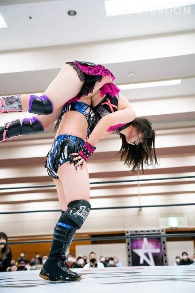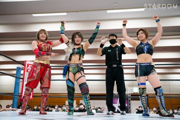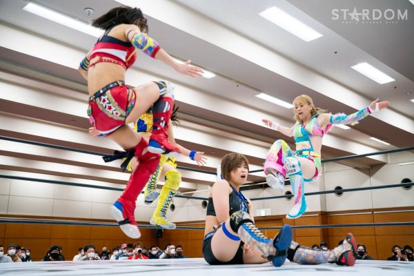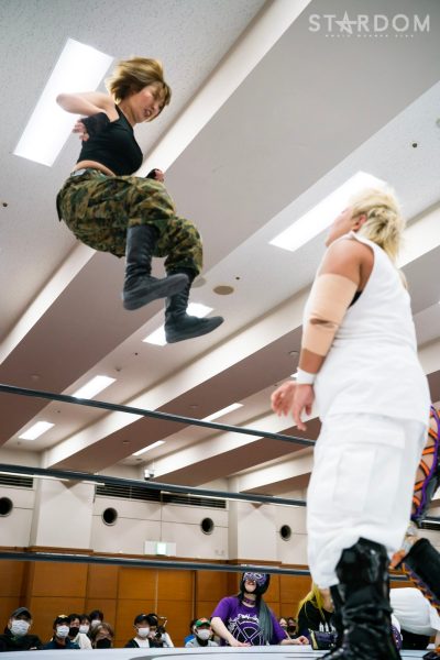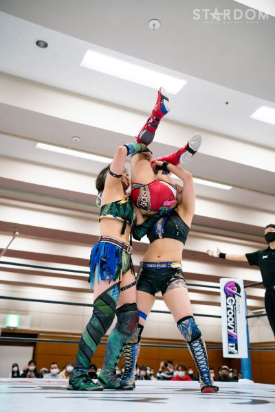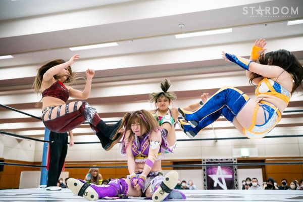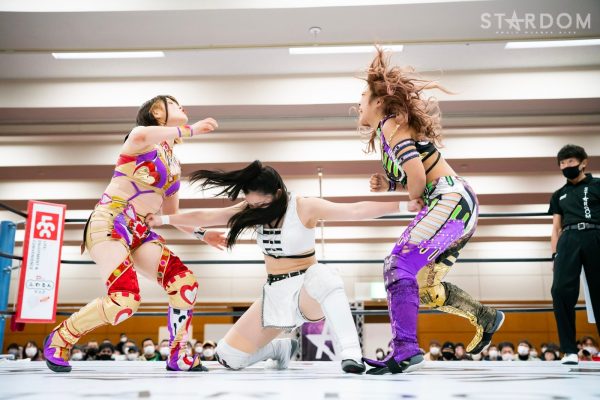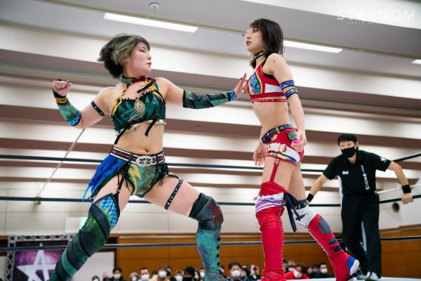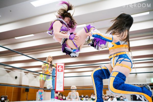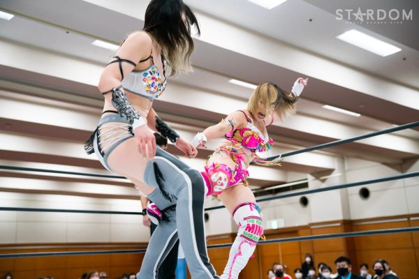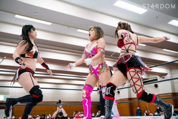 クイーンズクエストのアフロディーテ、林下詩美&上谷沙弥が妃南を従えて大江戸隊のスターライト・キッド&渡辺桃&吏南組と6人タッグマッチ。ユニット闘争に妃南と吏南の姉妹対決が組みこまれる。前日の船橋大会では3WAYマッチで妃南が吏南から勝利。6人タッグマッチに形を変えて、妃南が連勝、吏南がリベンジを狙う。また、2・4大阪でワンダー・オブ・スターダム王座をかけて対戦する上谷と桃には前哨戦となる。