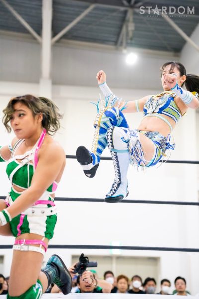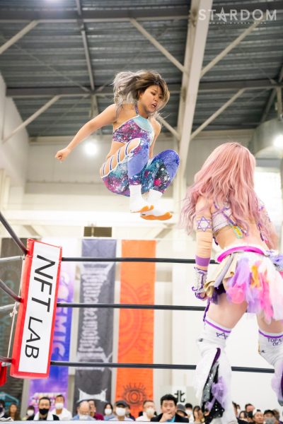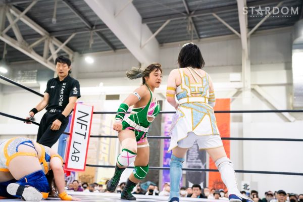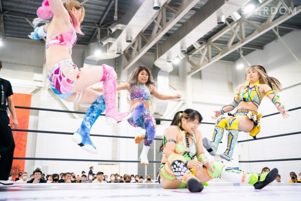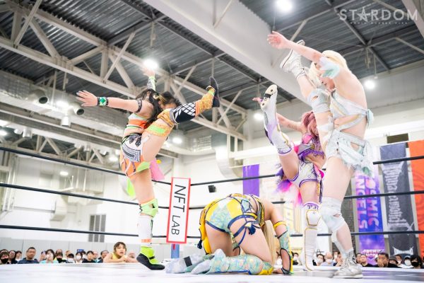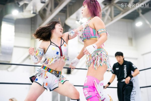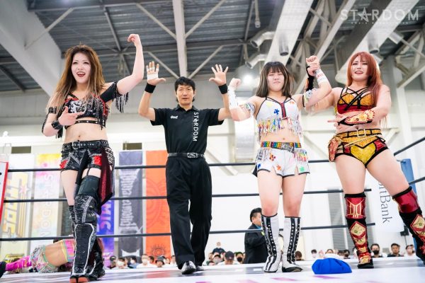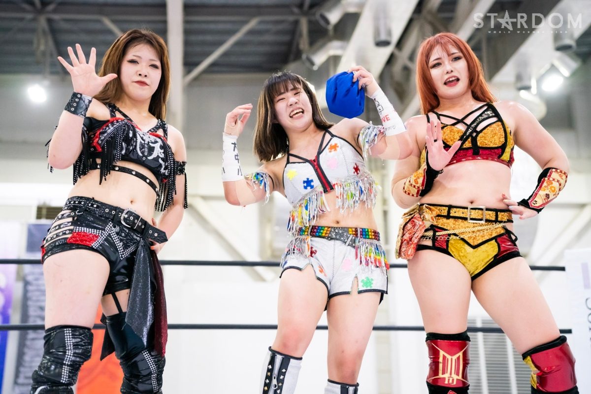 コズミックエンジェルズの白川未奈&月山和香&マライア・メイ組と、このところトリオを組む機会の多い舞華&鈴季すず&星来芽依組が6人タッグマッチで激突。白川&マライア組はゴッデス・オブ・スターダム王者チームであり、次期挑戦者を睨んでの闘いになる可能性もありそうだ。