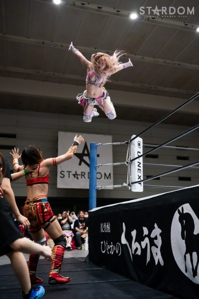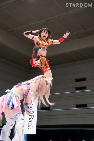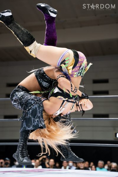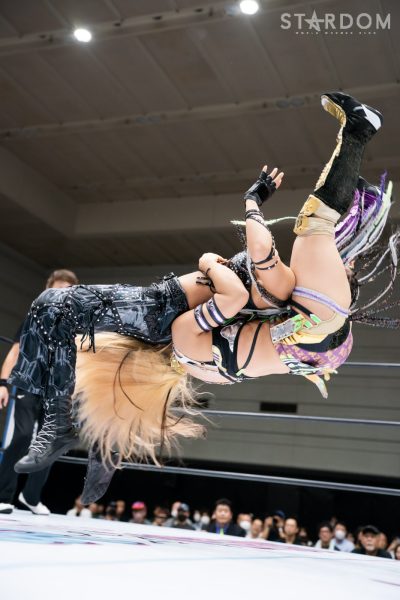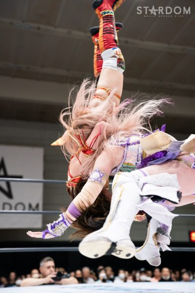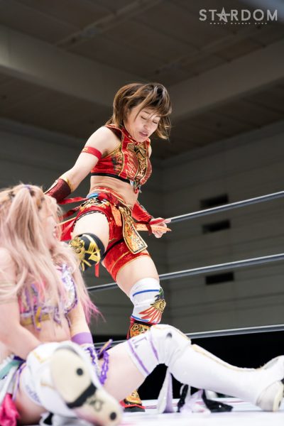 4勝1敗1引き分けの朱里と4勝2敗1引き分けの中野たむは元&現ワールド・オブ・スターダム王者による5★STAR GP公式戦。勝った方が決勝進出に望みをつなぐ一戦で、中野には崖っぷちでもある。この試合で敗れれば敗退、現・赤いベルトの王者の優勝はその時点で消える。朱里が2点を獲得し2度目の優勝に勢いをつけるか、それとも中野が可能性をつなぐか。ここまでのシングルでは圧倒的に朱里が優位だが…。