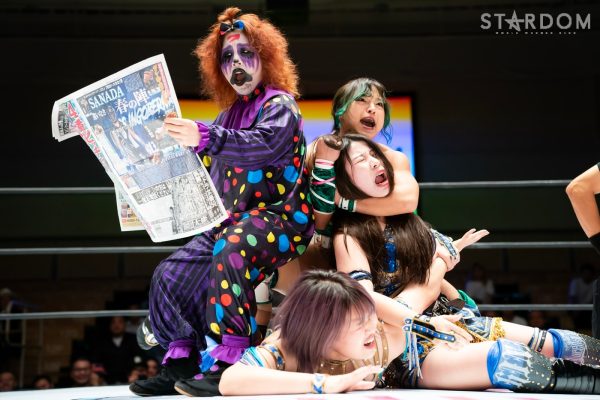 月山が白川に先発を志願し天咲と向かい合う。ロックアップから月山が腕を取りにいくと天咲も応戦。腕の取り合いから月山がヘッドロック。天咲が切り返してドロップキック。ロープに振られた月山がフェイントをかけ白川とドロップックの競演。月山は天咲にヒップアタック連打。天咲が返すと、月山の突進をレディが妨害し天咲がドロップキック、串刺し側転エルボーアタック、ドロップキックをもう一発。レディが月山にショルダータックル、ジャイアントスイング狙い。月山が逃れるが、レディが捕まえてジャイアントスイング10回転。さらに串刺しでジャンピングニーアタック。月山が返すと、レディがエルボーをブロックしコブラツイストを狙う。月山がかわしてクロスボディー。代わった白川が天咲を落としてからレディへエルボーアタック、ドロップキック。レディがカウンターのビッグブーツで白川を吹っ飛ばす。天咲が白川の背後からドロップキック。サブミッションに捕らえるが白川がエスケープ。天咲がDDTを狙うが白川が阻止して月山がDDT、白川がリバースDDTを決める。天咲が返すと、白川とエルボーを打ち合う。天咲がコーナーに追い込まれ白川が突進。天咲がかわしてレディと天咲がキックの挟み撃ち、天咲がスイングDDT。しかし月山がカットする。天咲は「決めるぞ!」と絶叫し白川に天聖の構え。白川がこらえてローリングエルボー。月山がレディをカットし白川と合体スイングネックブリーカー。天咲が返すと白川が狙いすまして延髄斬り。天咲が丸め込むが2カウント。白川がバックブローからインプラントDDTを決めると3カウントが入った。