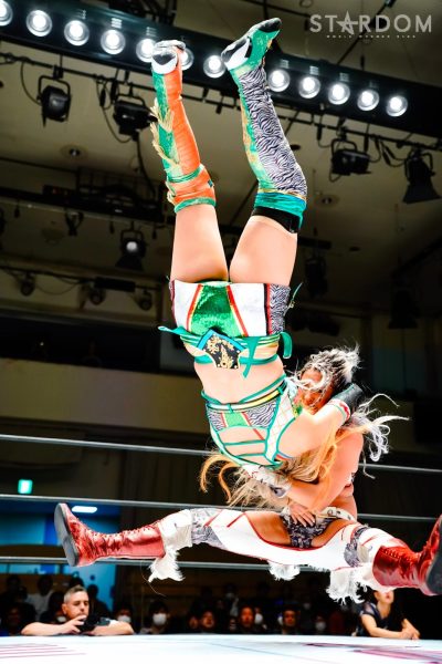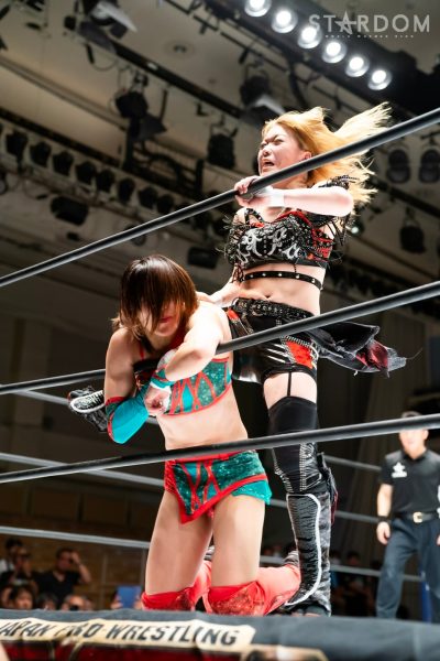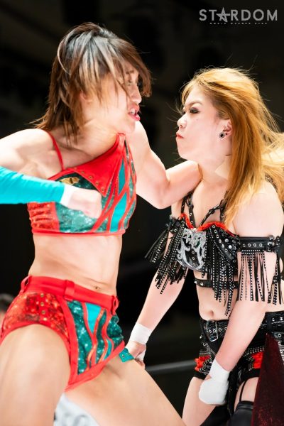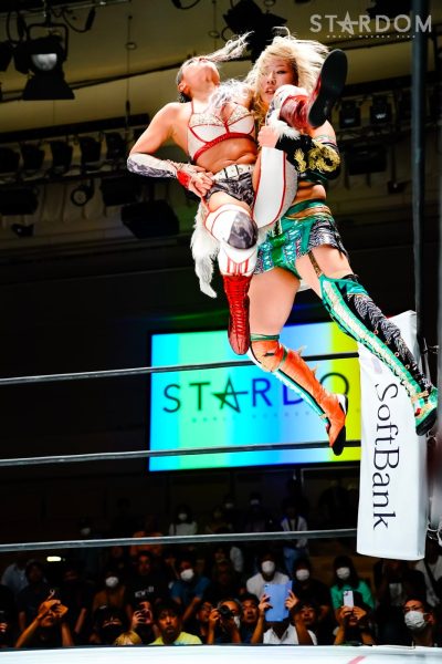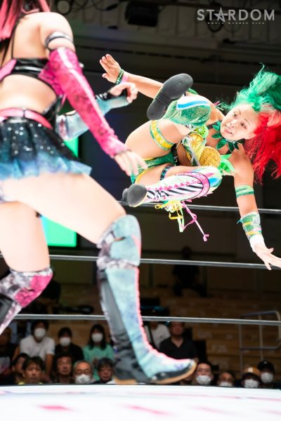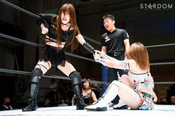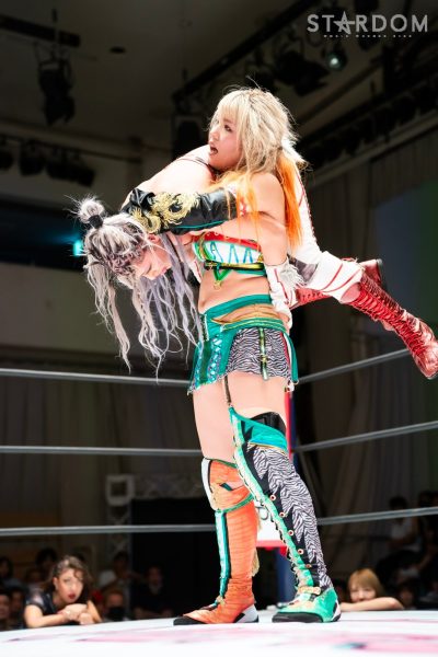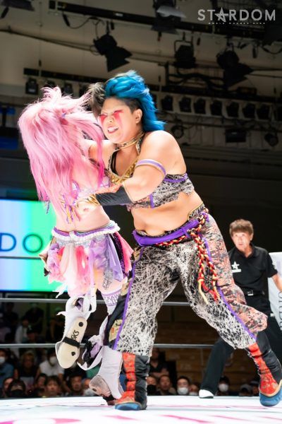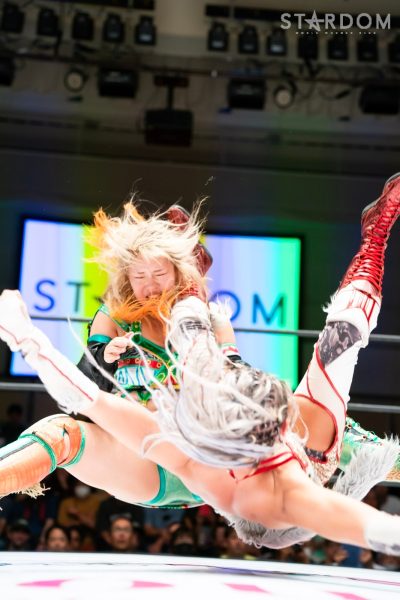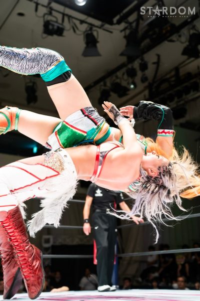 前日の5★STAR GP決勝戦で初制覇を達成した鈴季すずが6人タッグマッチに途上。星来芽依&メーガン・ベーンとのトリオで朱里&MIRAI&鹿島沙希組のゴッズアイと対戦する。すでに11月の大阪での赤いベルト挑戦を表明している鈴季。この試合で5★STAR GP覇者としての力と勢いを見せつけるか。優勝を争った舞華とはメーガンを含めてのトリオでアーティスト・オブ・スターダム王座挑戦も控えているだけに、さらなる勢いをつけたい試合だろう。また、10・9名古屋でハイスピード王座をかけて対戦する鹿島と星来には前哨戦だ。