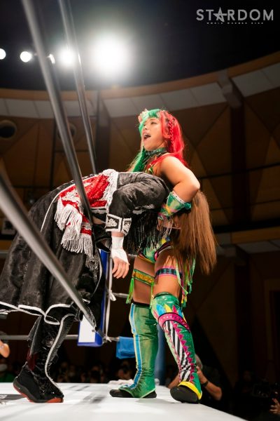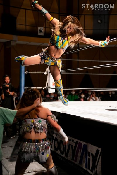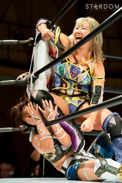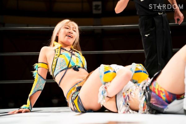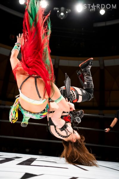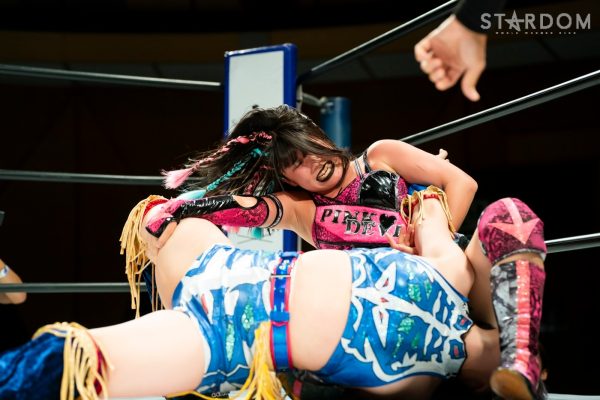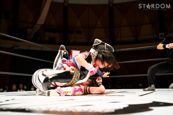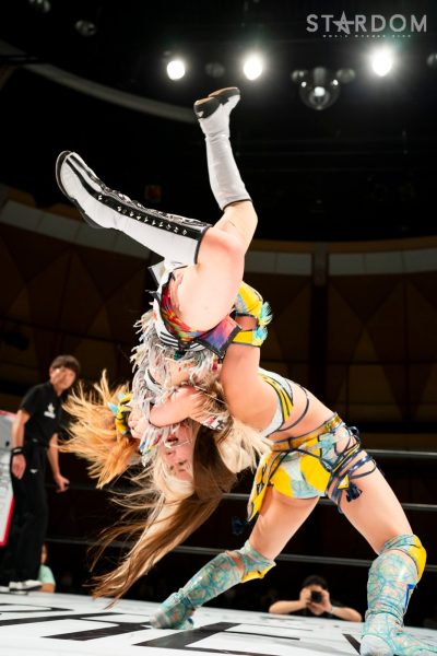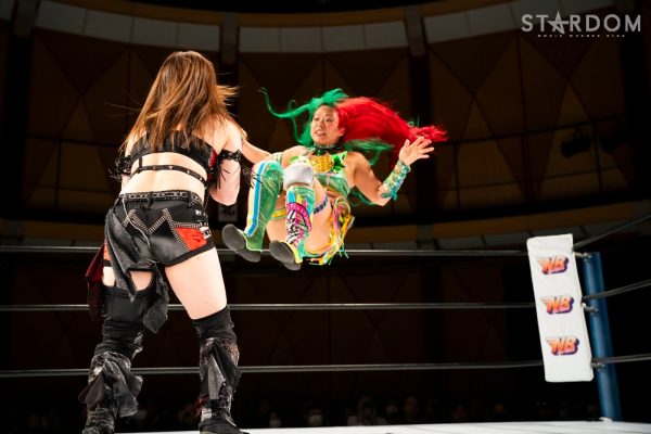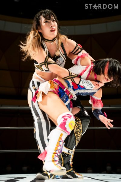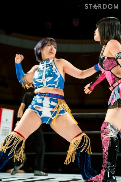 星来のドロップキックを羽南がかわす。羽南が腕を取ると星来も取り返し、腕の取り合い。羽南が丸め込むが星来が返す。羽南のヘッドシザーズを星来が切り返し視殺戦。羽南が蹴りをぶち込みヘッドロック、首4の字固め。星来がエスケープすると、お互いが髪をつかみ合う。星来がヘアーホイップからコーナーに追い込み顔面を踏みつける。羽南がヘアーホイップを連続でやり返し背後からニーアタック。星来がタックルからマウントパンチの連打。羽南もマウントパンチの連打でやり返す。星来が丸め込みからカウンターのクロスボディー、エプロンからドロップキック。もう一発ドロップキックを決める。羽南が返すと、ブレーンバスターを掛け合う。星来が丸め込みフロントネックロック。羽南がエスケープするとエルボーの打ち合い。星来がネックブリーカーも羽南が切り返しブロックバスター狙い。星来が切り返してブレーンバスターを決める。星来がコーナーに駆け上がるが羽南が落としてエプロンに送り出すとエルボースマッシュ、自分もエプロンに出てバックを取る。星来が切り返しエプロンでコードブレイカー、場外に出た羽南にエプロンからドロップキック。羽南がかわしてエプロンからボディーアタック。リングに戻すとランニングエルボースマッシュ、フェイマサ―。星来が返すと羽南はフィニッシュを宣言してバックドロップ狙い。星来が切り返しドロップキック。両者ダウン。羽南が後方からランニングエルボースマッシュ。コーナーに乗せてバックドロップを狙うが星来がこらえてボディーアタック。羽南がかわして丸め込みの応酬。星来がラリアットをかわしダイビングボディーアタック。フィニッシュを宣言し流星龍でロックする。しかし羽南の手がロープに届く。星来はパワーボムの構えも羽南が切り返しバックドロップ。星来のドロップキック、羽南がブロックバスターホールド。残り2分。エルボーの打ち合いから羽南がカウンターでドロップキック。バックドロップ狙いを星来が切り返し丸め込む。エルボーの応酬から羽南が張り手、星来も張り返す。張り手が交錯し残り30秒。エルボーが交錯し両者ダウン。星来がラリアットも羽南がかわしバックドロップホールド。しかし、タイムアップで引き分けとなった。