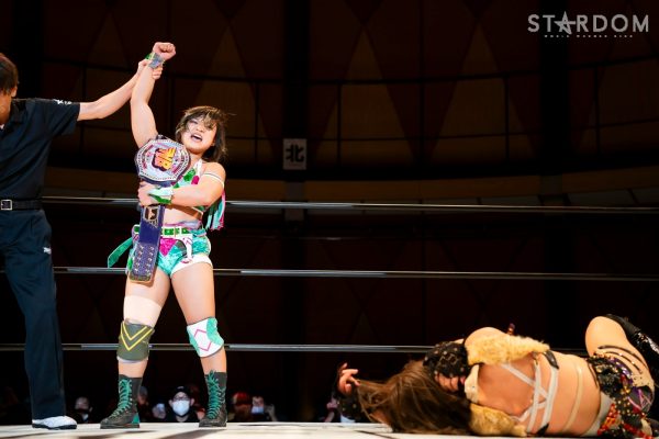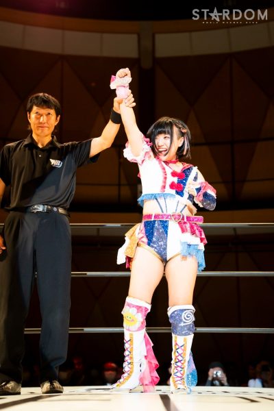 ロックアップでの力比べでHANAKOがロープに追い込む、吏南が突進するとHANAKOがラリアット。ボディースラムを吏南が切り返しマットに叩きつける。「大阪いくぞ」とアピールしヘアーホイップ、「テメエなんかがベルト取れるか」とコーナーに追い込み顔面を踏みつけ、止めに入ったレフェリーには「うるせえクソジジイ」。HANAKOはカバーを1カウントで返す。吏南は「オマエこんなもんか」と髪をつかみ「こいよ」と挑発。ビッグブーツを打ち合い吏南が手を蹴り上げる。吏南の突進にHANAKOがビッグブーツ、アルゼンチンバックブリーカー。コーナーに追い込むと串刺しボディーアタック、ボディースラム。吏南が返すと、HANAKOは逆エビ固め。吏南がエスケープすると、HANAKOは背中を叩いてブレーンバスター狙い。吏南が切り返し卍固め。しかしHANAKOがコーナーに追い込む。HANAKOの突進を吏南がかわして串刺しダブルニーアタック、ドロップキック。HANAKOが返すと吏南がワキ固め。HANAKOがエスケープすると、吏南がビッグブーツ、大外刈り。コーナーに上がるがHANAKOが下からビッグブーツ、デッドリードライブ。HANAKOのラリアットを吏南がかわす。HANAKOがDDTも2カウント。吏南は払い腰で叩きつけハイドレンジアへ。しかしHANAKOがエスケープ成功。吏南はダイビングダブルニードロップ。HANAKOが返すと、吏南は河津掛けの体勢、HANAKOが切り返しボディースラム。両者ダウン状態から立ち上がりHANAKOがショルダータックルを4連打。しかし吏南が返してみせる。HANAKOはアルゼンチンで絞り上げる。吏南がこらえるとHANAKOが引き起こしてブレーンバスター。吏南が返すと、HANAKOはアルゼンチン。吏南が切り返しバックスライド、ジャックナイフ。HANAKOが返しラリアット連打。返した吏南にHANAKOは「決めるぞ!」と叫んでJPコースター。しかしロープ際で吏南が命拾い。HANAKOは吏南を引き起こし担ぎ上げる。吏南が逆打ちで叩きつけるが2カウント。吏南が絡みつきサブミッション、HANAKOがギブアップし吏南の防衛となった。