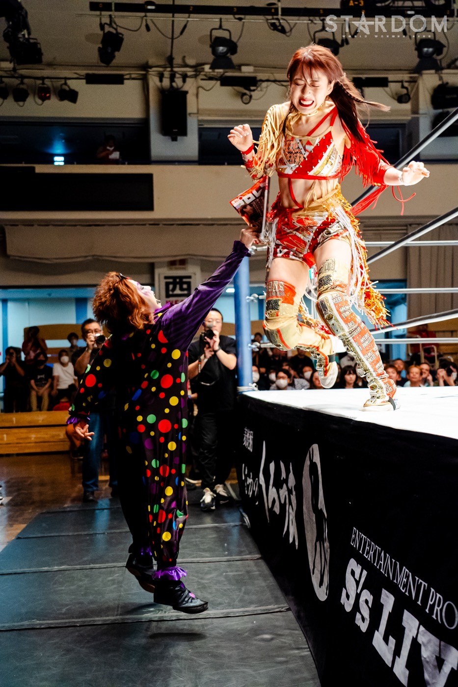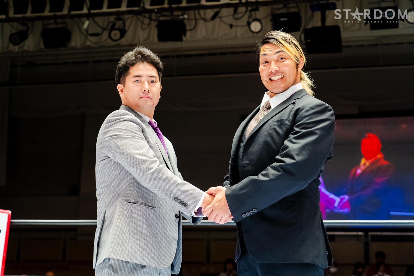 岡田社長「スターダムは昨日から名称も変わりまして、株式会社ブシロードファイトだったんですけども、株式会社スターダムになりまして、あらためてもう一度スタートと思っております。新日本プロレス、会社としては親会社。イメージとしては、お兄ちゃんというところでありますが、我々スターダムは選手スタッフ一同、新日本プロレスを超える勢いでますますスターダムを盛り上げていきますので、みなさまのご声援よろしくお願いいたします!」