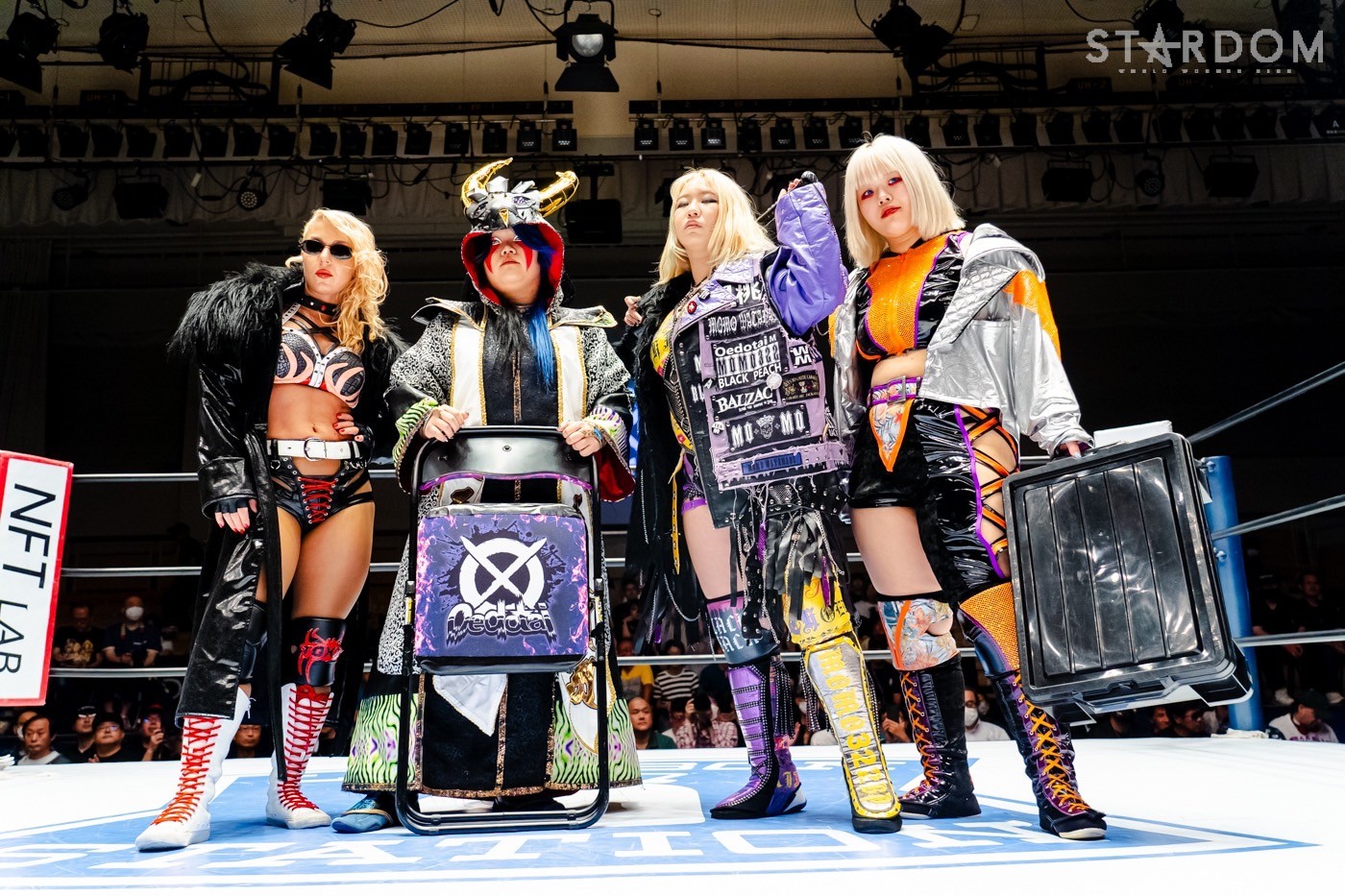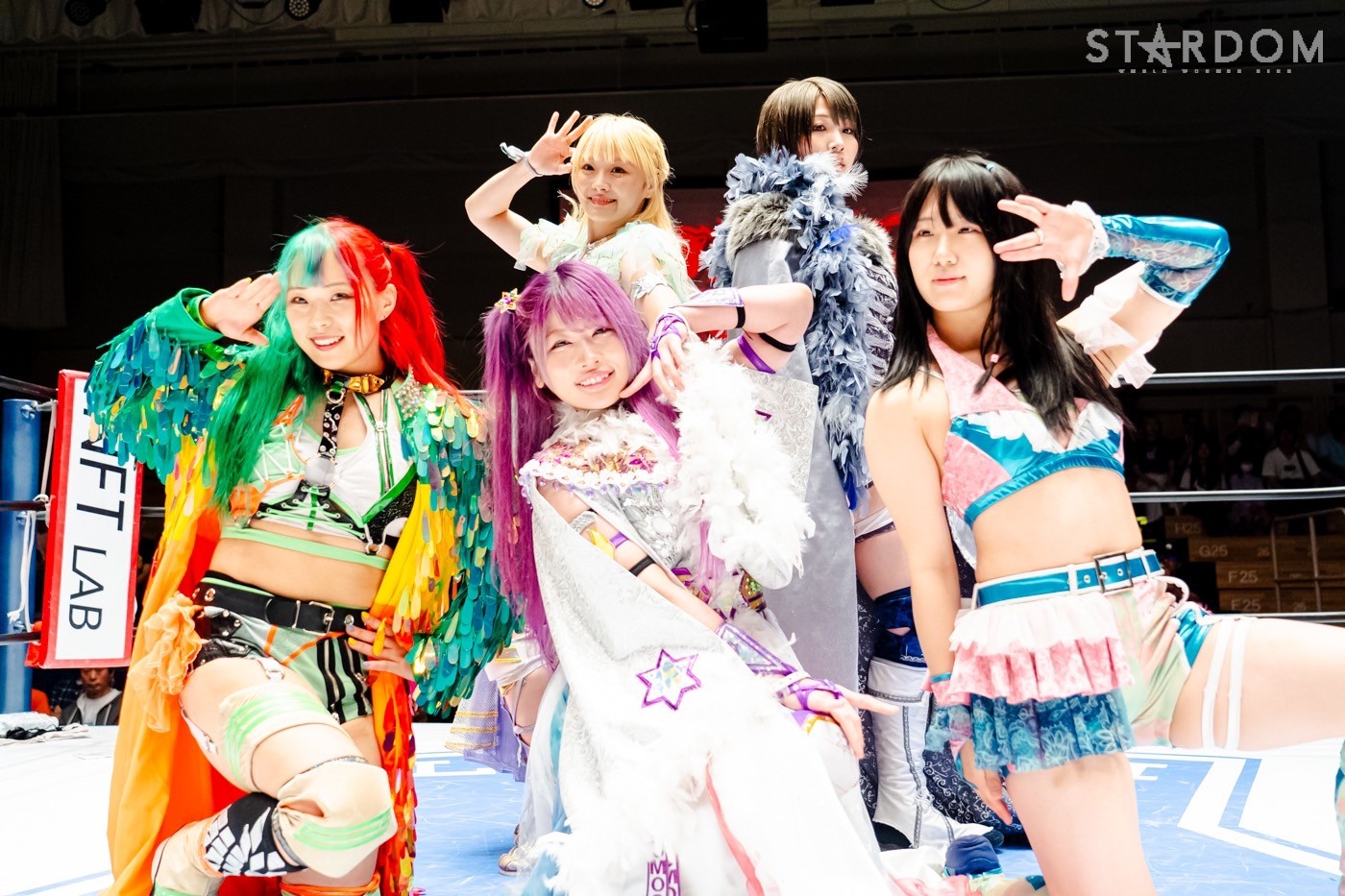 6・22代々木で新ユニット結成に動いたスターライト・キッド。鈴季すず&星来芽依のクレイジースターとの合体を表明し、クイーンズクエストを追放されたAZMと天咲光由に声をかけた。ショックの大きいAZMらは保留したものの、まずはキッドと星来のチームにAZMと天咲が加わることで、試合を通じてトライすることに。対するは因縁の大江戸隊。刀羅ナツコ&渡辺桃&テクラ&琉悪夏を前に、大江戸隊を追放されたキッド、AZM、天咲がリベンジを狙う。