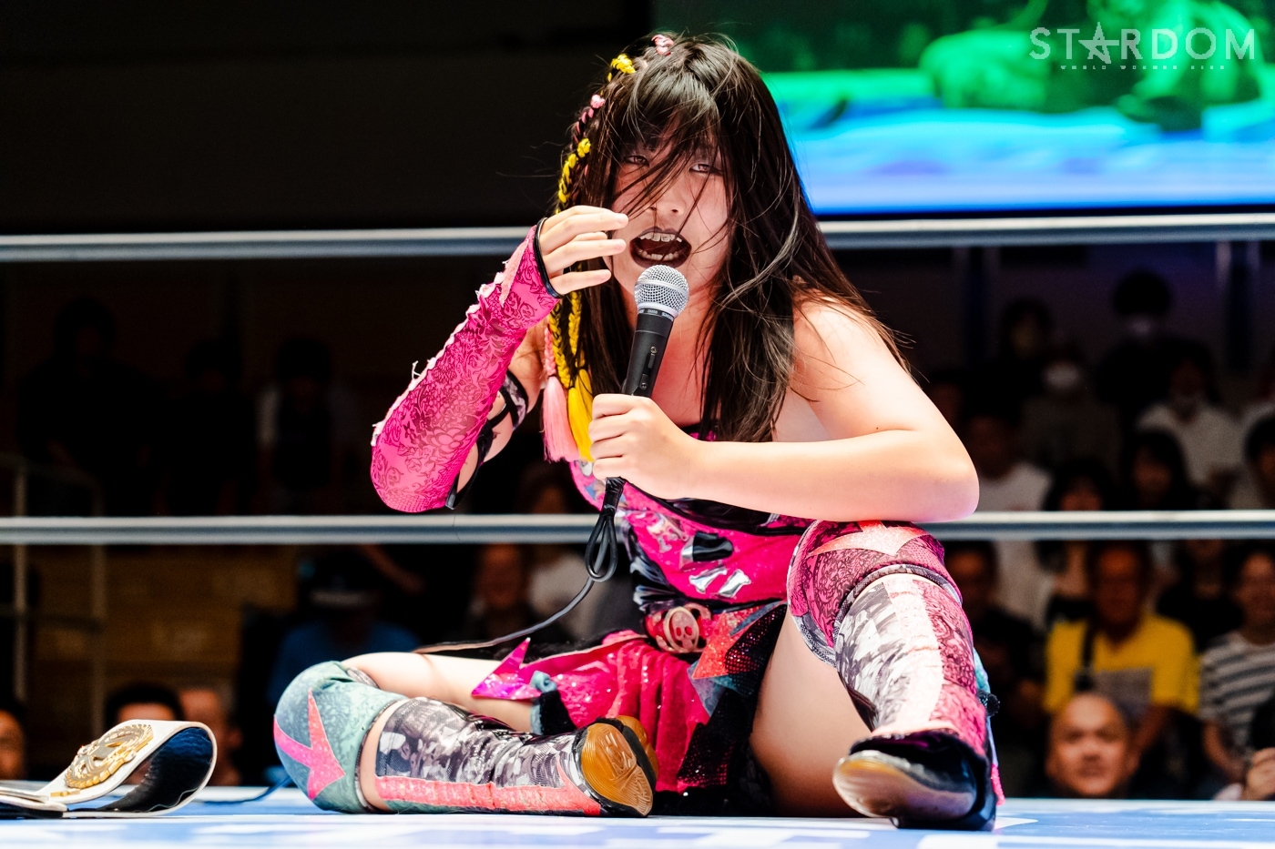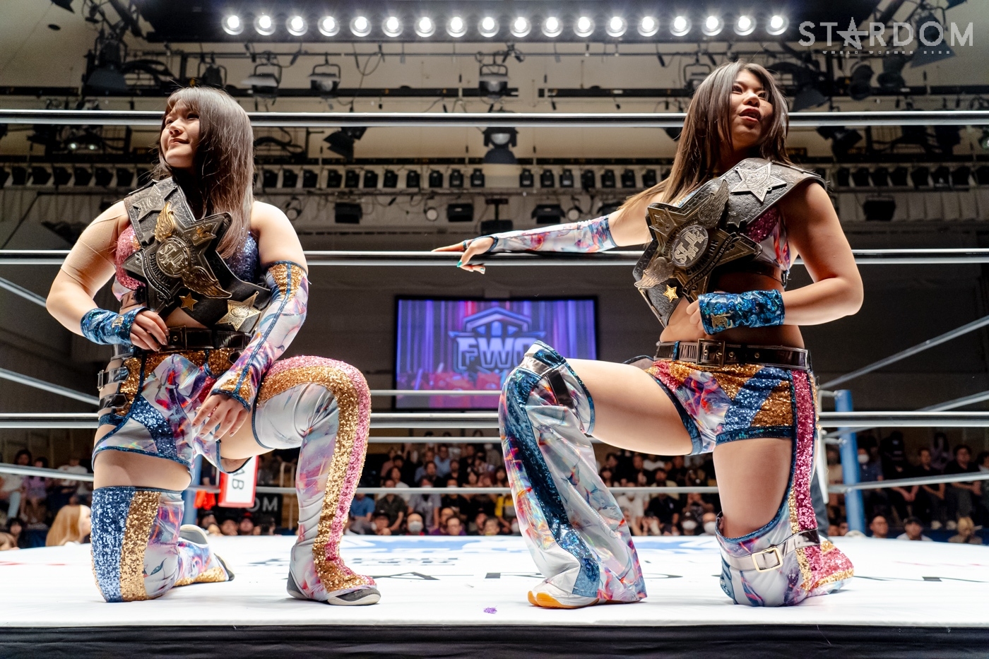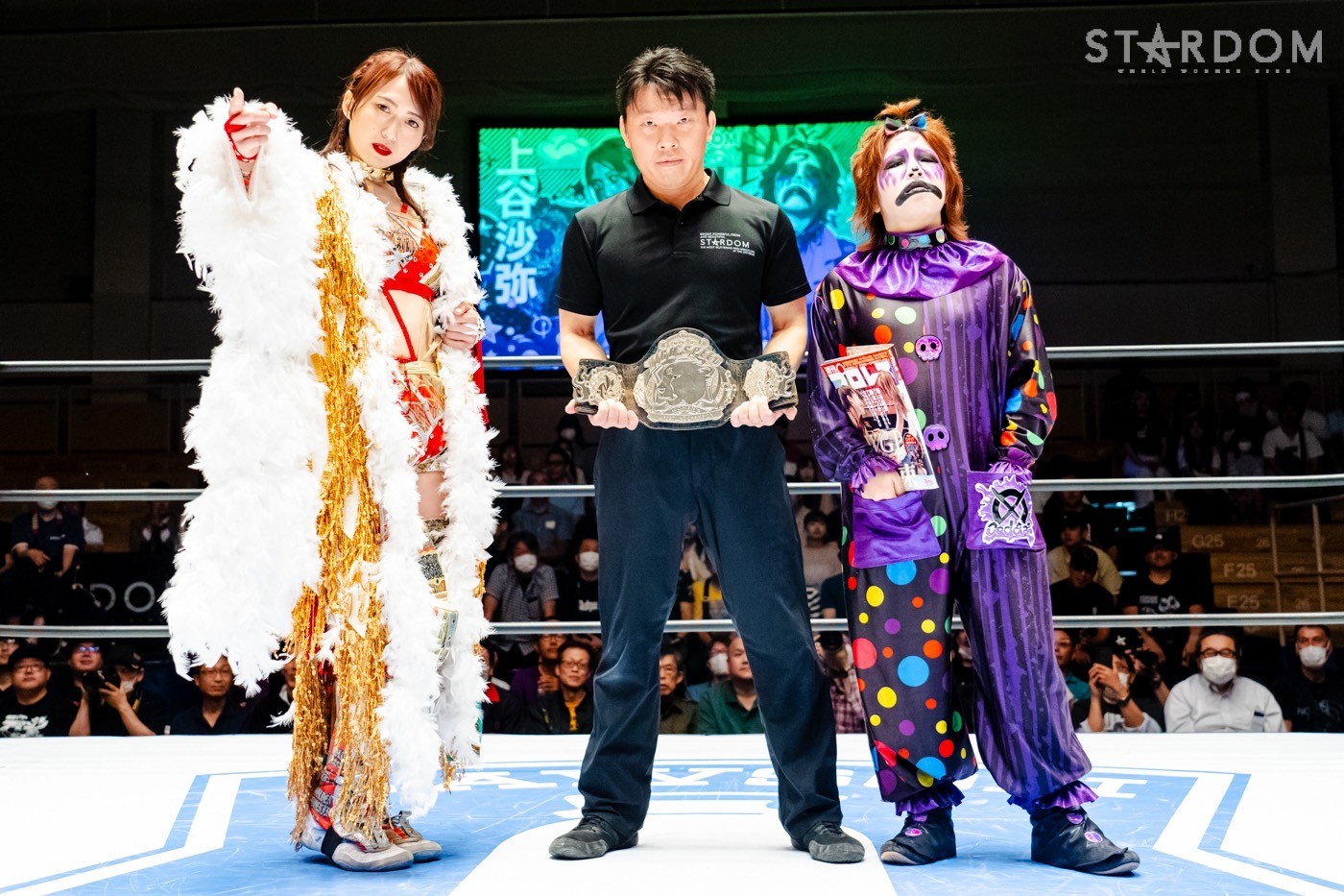 小波「ありがとうございます。FWC、メッチャ強かったです。連係技もいっぱいあって、なんとずっとヒヤヒヤしてたけど、絶対に負けられないから絶対にこのチャンスもう二度とないと思って。でも、なんとか勝つことができて本当によかったです。これからはこのベルトを持ってスターダムの新しい壁になって、私たちで最多防衛記録残していきたいと思います。それからこのゴッデスのタイトルマッチのうちにやりたい目標もあるので、それをこのタイトルマッチでいろいろ実現していきたいなと私は思ってます」