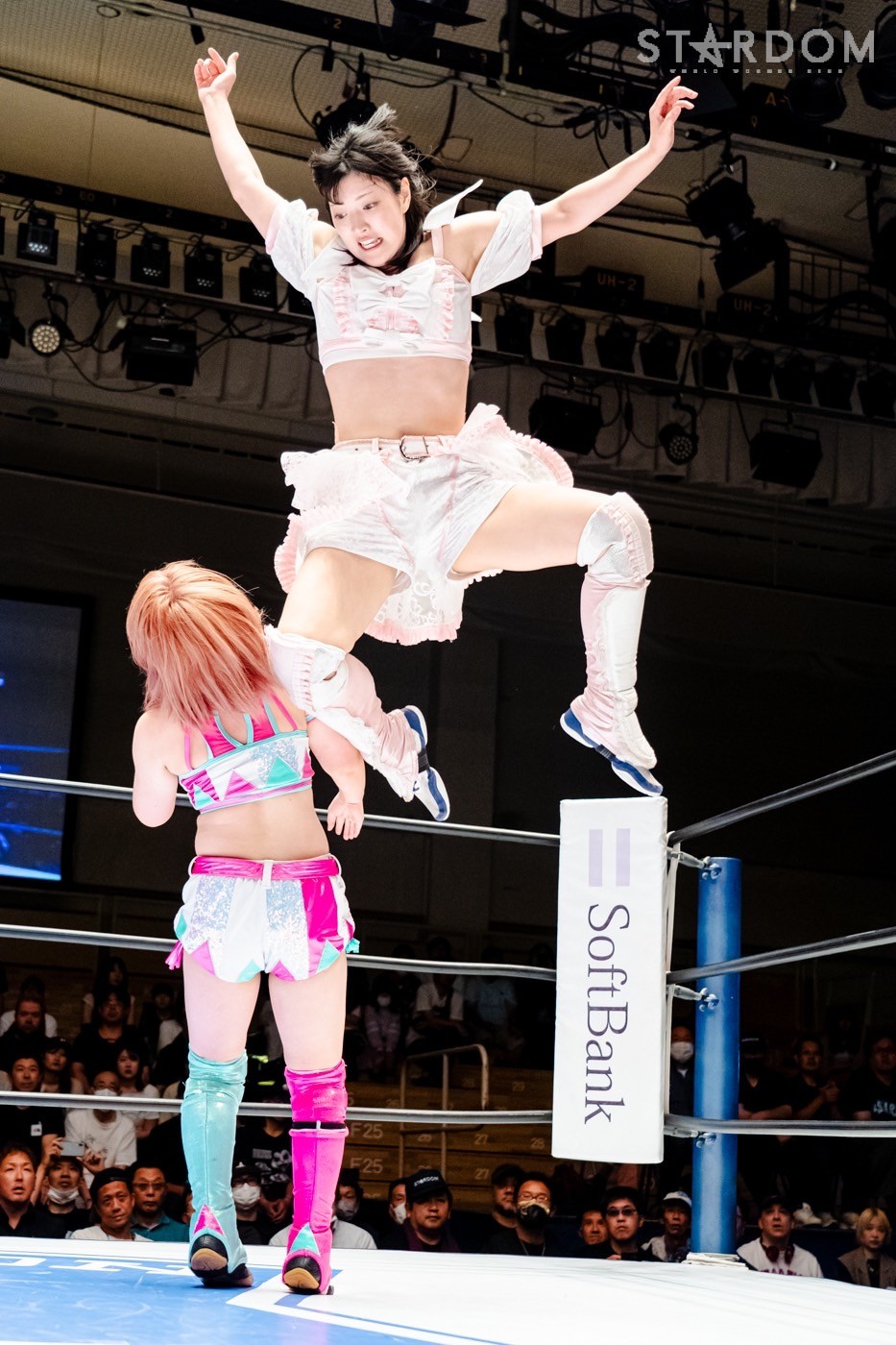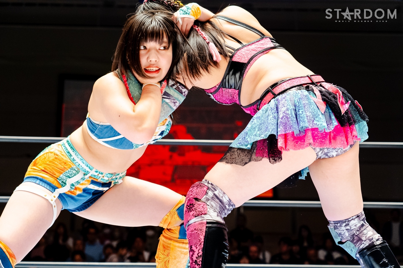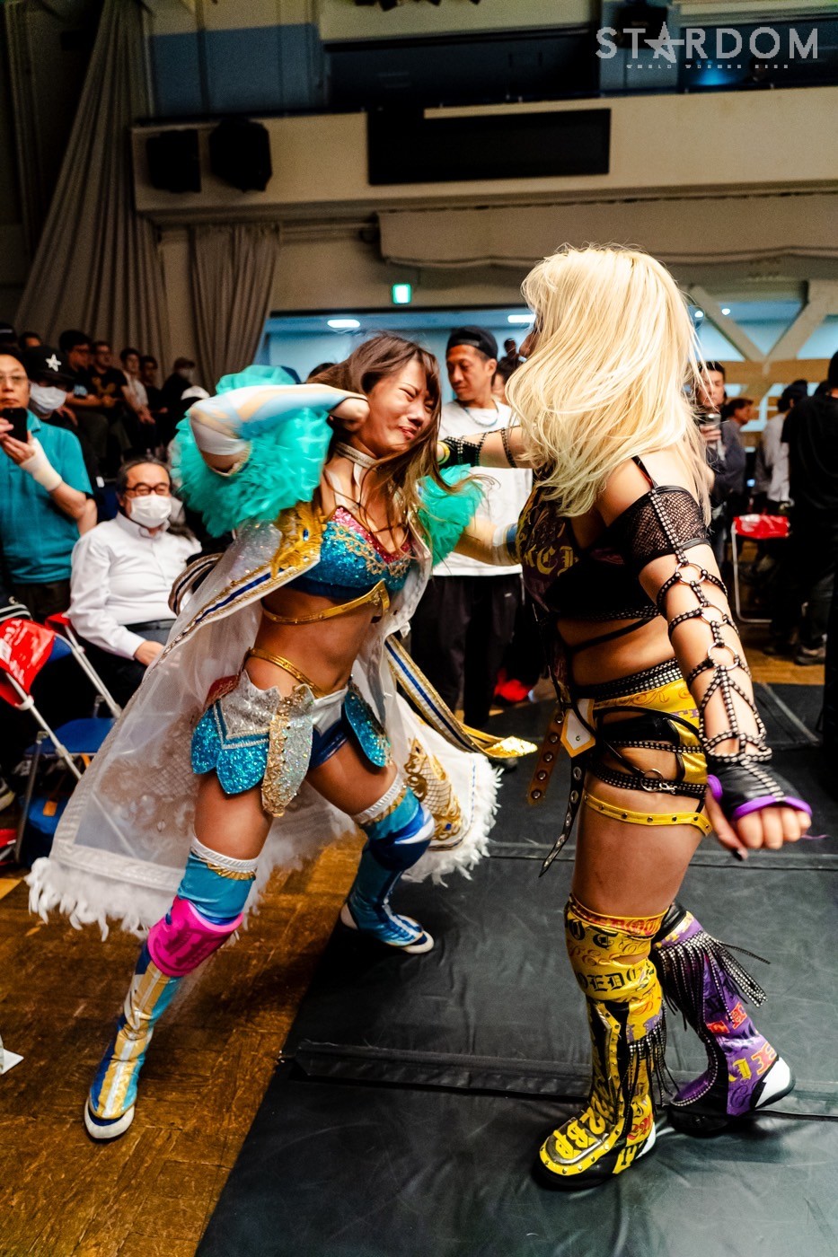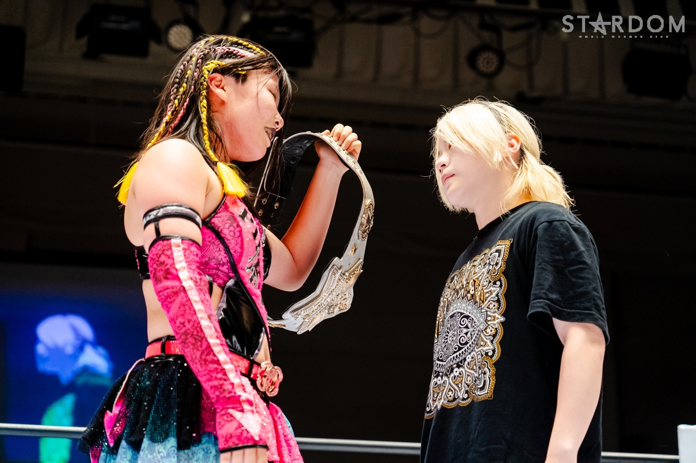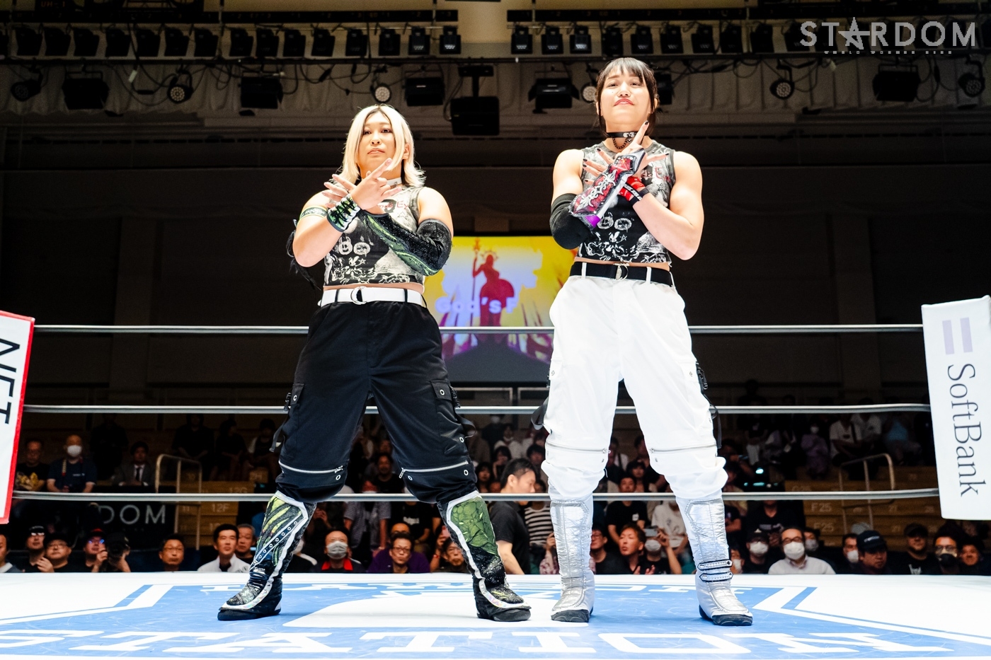 代々木大会で羽南&飯田沙耶組とのSTARS同門対決を制しゴッデス・オブ・スターダム王座を防衛した葉月&コグマ組が次期挑戦者に指名したのが、ゴッズアイの朱里&小波組だった。しかも王者組は1週間後の今大会を指定、スタイルがまったく異なるチームなだけに、大きな賭けに出たことになる。指名を受けた小波にとっては復帰以来最大のチャンス。ベルトを奪えば朱里にとってもジュリア以来のゴッデス戴冠となるだけに、こちらも大きなチャンスとなる。
