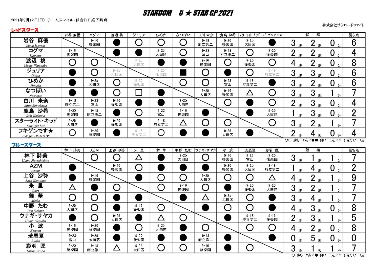 Minggu, 12 September, Sendai PIT (234 penonton = tiket habis terjual / jumlah penonton dibatasi karena tindakan pencegahan COVID-19)