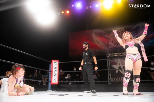 Koguma meminta jabat tangan, tetapi Momo tetap diam di sudut ring. Pertandingan dimulai dengan pertarungan di tali ring, dengan saling bertukar cambukan lengan. Momo membalas dengan dropkick dan tendangan bola sepak. Koguma menerima rentetan pukulan Momo, dan meminta lebih. Momo menerapkan kuncian kepala dan kemudian kuncian unta. Koguma memblokir serangan Momo dan memberikan dropkick serta hentakan kaki ke punggung. Momo membalas dengan tendangan tinggi. Koguma menangkap tendangan tengah dan berlari, tetapi Momo membalas dengan tendangan tengah dan serangkaian dropkick dorong, diikuti oleh serangkaian tendangan tengah dan brainbuster. Koguma mencoba B-Driver, tetapi Momo melepaskan Aomato. Momo melompat dengan Aomato, tetapi Koguma melanjutkan dengan serangkaian roll-up, jackknife, dropkick, serangan tubuh dorong, ronde knockout, dan DDT. Momo pergi ke sudut ring, tetapi Momo menendangnya dan mengirimnya ke apron. Koguma kembali dan melancarkan neckbreaker dan missile kick. Saat Momo melawan balik, Koguma mengambil posisi di belakangnya dan mencoba kuncian sleeper hold. Dia beralih ke body choke dan mencoba German suplex. Momo membalas dan menerapkan chicken wing facelock. Koguma menggulungnya, tetapi Momo melawan balik. Koguma menghindari tendangan tinggi dari Momo dan menggulungnya. Koguma menghindari tendangan tinggi dan mencoba German suplex. Saat Momo mendapatkan posisi di belakangnya, dia berpegangan dan menuju ke tali ring. Koguma menyerang, tetapi Momo membalas dengan tendangan tinggi. Momo melakukan dive dengan Aomatou. Koguma menggulungnya, tetapi Momo juga menggulungnya. Koguma melawan balik dan Momo melakukan Peach Sunrise. Hitungan tiga memberi Momo kemenangan