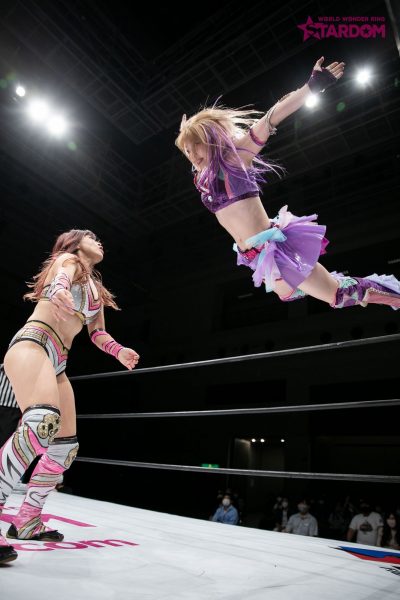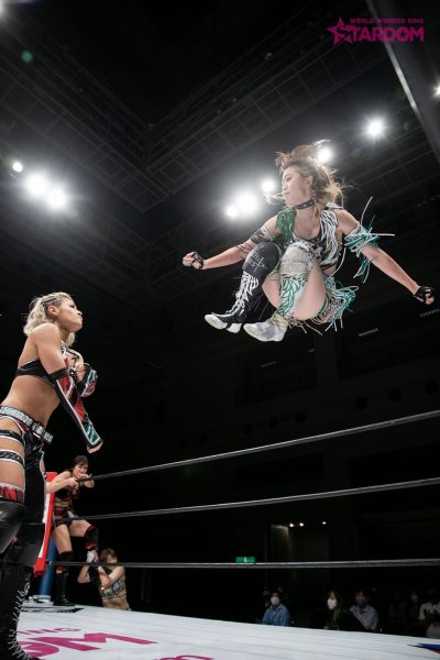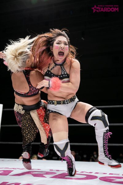 ドンナ・デル・モンドとクイーンズクエストがイリミネーションマッチで全面対決。DDMには新戦力なつぽい(万喜なつみ)が合流。新生DDMの力が試される試合となるだろう。前日、なつぽいはTCSのDEATH山さん。と対戦したが、この日からが本格的なスターダムの本流参戦と言っていい。すでになつぽいはAZMの保持するハイスピード王座に照準を定めている。しかも元王者を破っているだけに資格はあるだろう。両者の遭遇はもちろん、なつぽい絡みのすべてが新鮮だ。また、前日にゴッデス・オブ・スターダム王座を懸けて対戦したばかりの林下詩美&上谷沙弥と、舞華&ひめかも再び顔をそろえる。タッグタイトルでは上谷が新技フェニックススプラッシュで二冠王の舞華からフォール勝ち。フューチャー王座戦線への可能性も含め、見どころ満載のメインイベントだ。