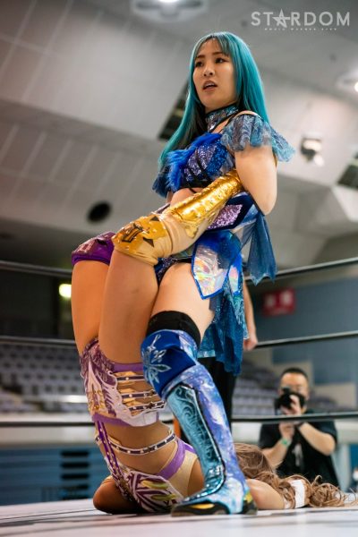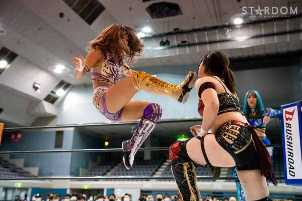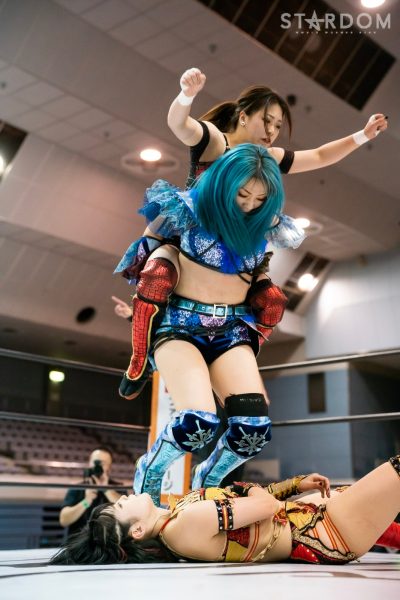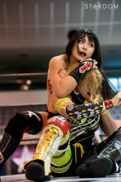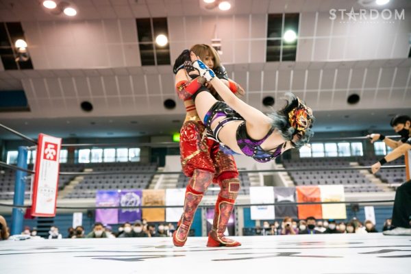 ゴッズアイの朱里&MIRAI&壮麗亜美組とスターライト・キッド&琉悪夏&梅咲遥組による公式戦。スターダムで梅咲、NEW BLOODでKARMAを使い分けるキッドだが、この試合はトライアングルダービー公式戦。ここまで2勝1敗で、まだまだこれからが本番だろう。対する朱里組は2勝1引き分けでここまで黒星がない。どちらも公式戦はこれが4試合目。今後を占う公式戦となる。