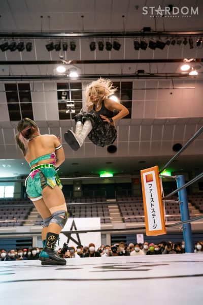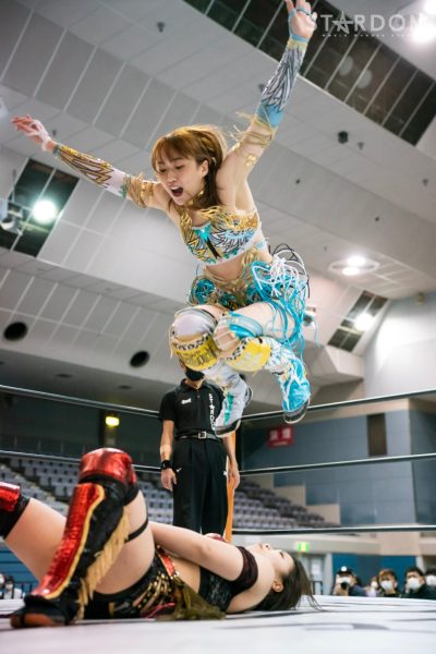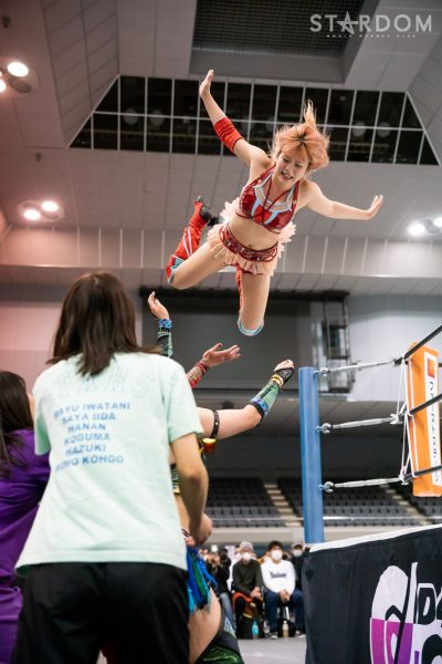 向後が先発に名乗りを挙げると月山も手を挙げて立候補。月山がコーナーに振ると向後がアームホイップからドロップキック。STARSを呼び込み月山を捕獲、次々とフットスタンプを見舞うと3方向からドロップキックを決める。向後は月山にボディースラム。月山が返すとクロスボディー。コズエンが3方向から向後にドロップキック。中野が向後に串刺しエルボーアタック、前後から蹴りを見舞いカカト落としへ。中野は向後にネックロック。なつぽいが向後の背後からドロップキックを放つ。向後が返すと、なつぽいがヘアーホイップの連続。なつぽいはレフェリーに注意されるが髪を「もってない!」と主張。向後がカウンターでドロップキック。619。しかしなつぽいが返してみせる。岩谷がなつぽいにバックキック、なつぽいの突進をかわしドロップキック。中野と月山が合体を試みるが岩谷がまとめてアームホイップ、STARSでドロップキックの競演。なつぽいが岩谷をかいくぐりドロップキック。中野が岩谷にボディーアタック。ニーアタックを岩谷がかわしバックを取る。中野が切り返しバックの取り合い。なつぽいが中野の手を引くがリング下から向後、月山が引っ張る。羽南がカットすると岩谷と中野がバックを取り合い、岩谷がスリングブレイド。羽南が中野にニーアタック、ダブルリスト狙いを中野が回避するとなつぽいとバックキック、ネックブリーカー、トラースキックの合体。しかし羽南が返してみせる。月山が羽南にクロスボディー、ヒップバット連打。羽南が返すと、月山が極楽ドンの構え。羽南が切り返しエルボーの打ち合い。月山が突進すると羽南が払い腰。中野がスピンキック、なつぽいがバックラッシュ、中野となつぽいで月山を羽南の上にボディープレス。しかし向後のカットが間に合う。10分経過。月山が向後にスープレックスを狙うが大外刈りで倒される。月山が向かっていくが羽南がかわしボディーアタック。羽南と岩谷が持ち上げて向後が背後からスワンダイブ式ミサイルキック、羽南がフェイマサ―。しかし中野となつぽいのカットが間に合う。岩谷と向後がトラースキックでコズエンを分断。月山が羽南にオースイスープレックス、羽南がブロックバスターホールド。羽南がフィニッシュを予告してバックドロップホールド。月山が返せず羽南がピンフォールを奪ってみせた。