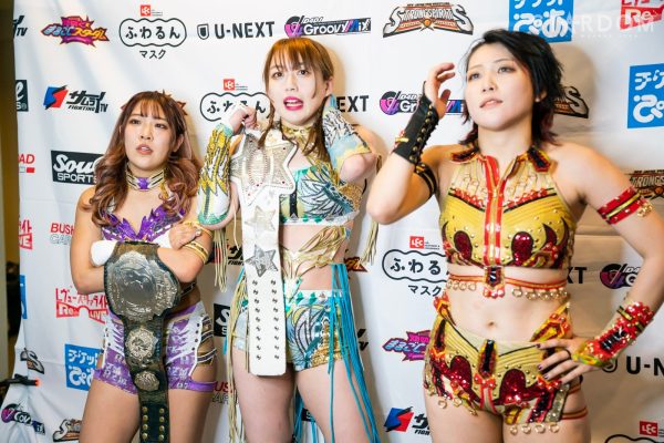 上谷「メチャクチャ悔しいですよ。だって私たち生え抜きからしたら外敵である存在のプロミネンスが巻いてるってことがホントに悔しくてたまらないです。これで一歩アーティストのベルトに近づいてきたんじゃないかと私は思っています」