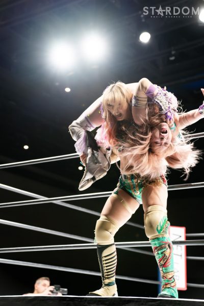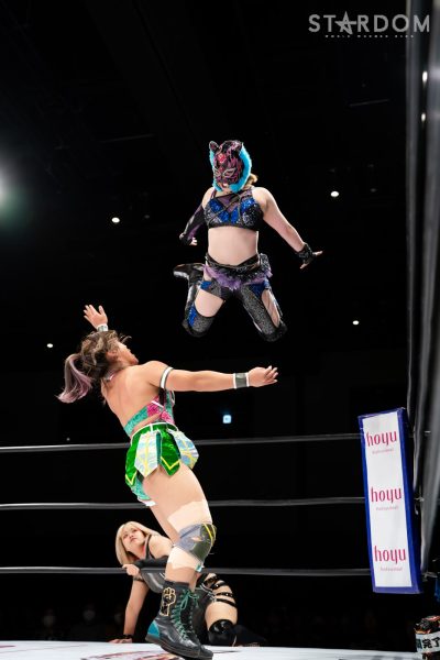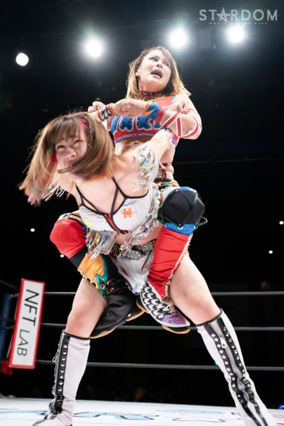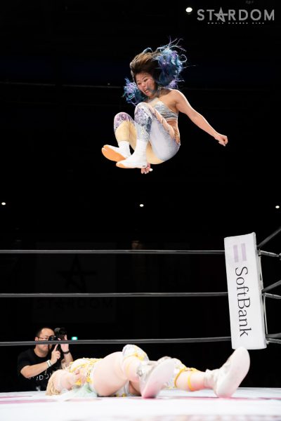 星来芽依と月山和香が“星vs月”のシングルマッチ。ハイスピード王座挑戦が決まった星来のハイスピードに月山がどう挑むかが勝負のポイントになりそうだ。