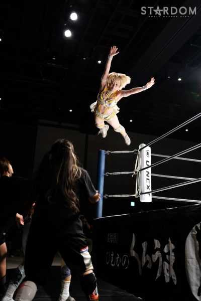 誕生日の鈴季とHANAKOが先発。バックの取り合いから鈴季が腕を取ると、HANAKOも取り返す。鈴季がヘッドロック、HANAKOが持ち上げるが鈴季がグラウンドにもっていきドロップキック、鈴季は控えの詩美を落としてからHANAKOにサッカーボールキック。メーガンがHANAKOに体をぶつけていき逆水平、ビッグブーツ。片足でカバーするがHANAKOが返す。鈴季がHANAKOをエプロンに出してリング下からドロップキック。鈴季は「どうしたんだよ、オメエも2日前誕生日だろ」と挑発。鈴季の突進をHANAKOが止めてボディースラム。代わった詩美がドロップキック。しかしメーガンが乱入。すると詩美を鈴季を担ぎ上げてメーガンに投げ渡すとドロップキック。メーガンの突進をロープを引いて落とすと、詩美が鈴季にドロップキック。鈴季が返すと、詩美がエルボー連打。バックを取られた鈴季だが切り返して後方からドロップキック。メーガンが詩美にフロントスープレックス。ブレーンバスターの構えを詩美が切り返し後方から抱き着く。メーガンがコーナーに追い込むと詩美がドロップキック、ラリアット。HANAKOがメーガンにショルダータックル連打。メーガンが受けて立つとショルダータックルで吹っ飛ばす。メーガンの突進をHANAKOがかわし詩美がドロップキック、打撃のサンドイッチ攻撃からHANAKOがブレーンバスターを狙うが、メーガンが反対に叩きつけてみせる。メーガンがHANAKOのエルボー連打を受けて立つ。HANAKOの突進にメーガンがジャンピングラリアット。鈴季が詩美をネックブリーカーでカットし、メーガンがHANAKOにネックハンギングボム、HANAKOが返せずメーガンが勝利した。