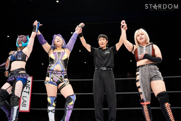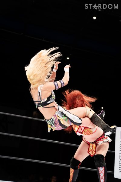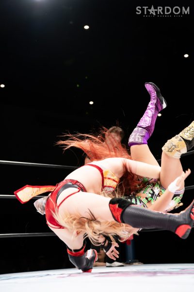 コズミックエンジェルズの安納サオリ&水森由菜組、クラブビーナスの白川未奈&マライア・メイ組、ゴッズアイのMIRAI&鹿島沙希組が一度に激突する3WAYタッグマッチ。コズエン見習いが中野たむ、なつぽいではなく、安納とのコンビでどんな働きを見せるか。ゴッデス・オブ・スターダム王座こそ失ったものの、白川&マライア組は前王者としてローズゴールドの底力を見せつけたい。そして、ゴッズアイ入りしたハイスピード王者の鹿島沙希と白いベルトの王者MIRAIが合体。予測困難な3WAY戦の結末は?