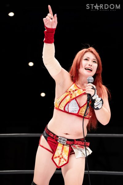 舞華「あらためまして福岡のみなさん、ただいま! これで5★STAR GP、まだまだ優勝の可能性残ってます。必ず優勝して福岡に帰ってきたいと思います! 明日は、佐賀大会。なんとスターダム初らしいです。今日ここに来た人たち、明日も来てくれるかな? ちょっと今日は元気が足りなかったかなということで、舞華が一番と言ったら今日一番の大きな声ですがすがしいと言えよ。OK? じゃあいくよ。舞華が一番、すがすがしい!」