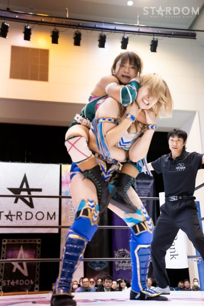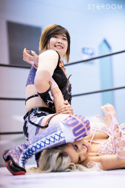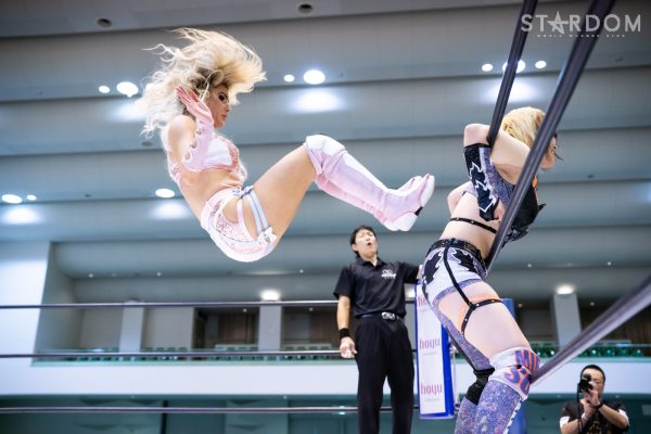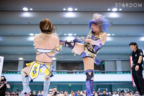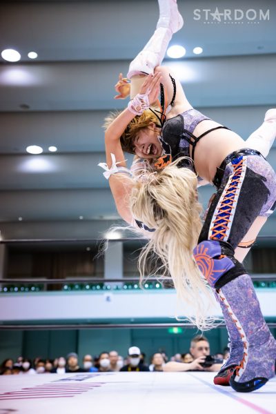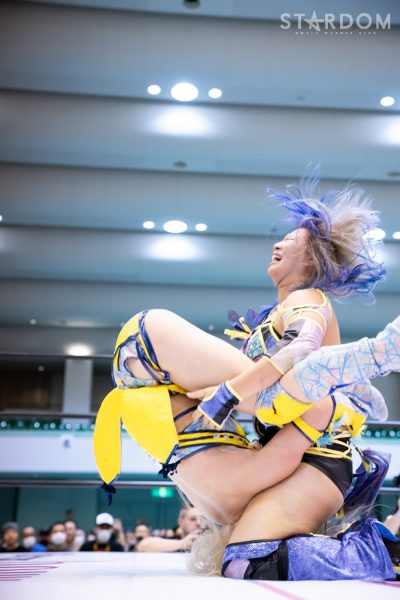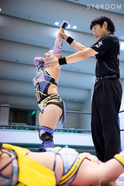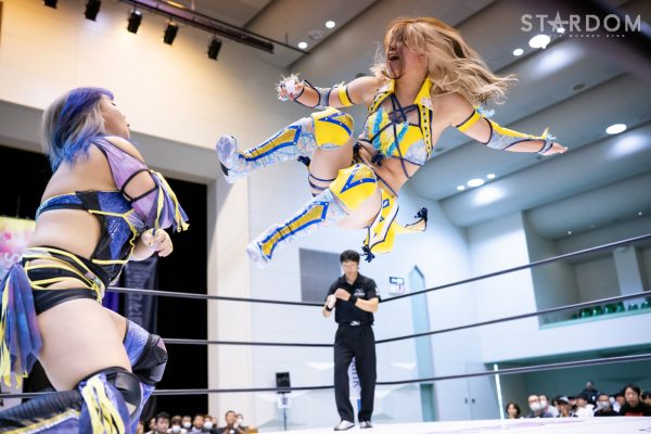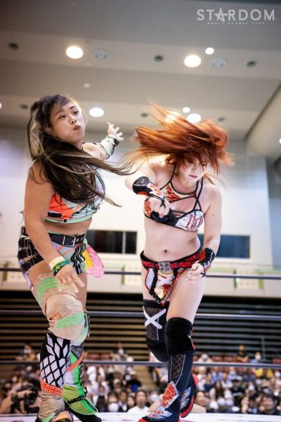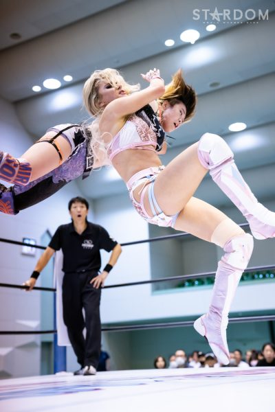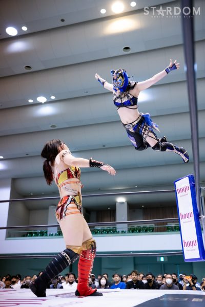 3勝3敗の鈴季すずと2勝4敗の壮麗亜美が5★STAR GP公式戦でシングルマッチ。すずは3勝3敗ながら、現在レッドスターズのトップを走っている刀羅ナツコに勝っているため、まだ決勝進出の可能性が残されている。一方の壮麗はナツコに敗れたことから早々と脱落となってしまった。前日の公式戦でも中野たむに敗れており、今後のためにもズルズルと後退することは避けておきたい。すずを破れば相手の決勝進出を阻止することになるだけに、ここは大仕事をやっておきたいところだが、鈴季にとっては絶対に落とせない一戦だ。