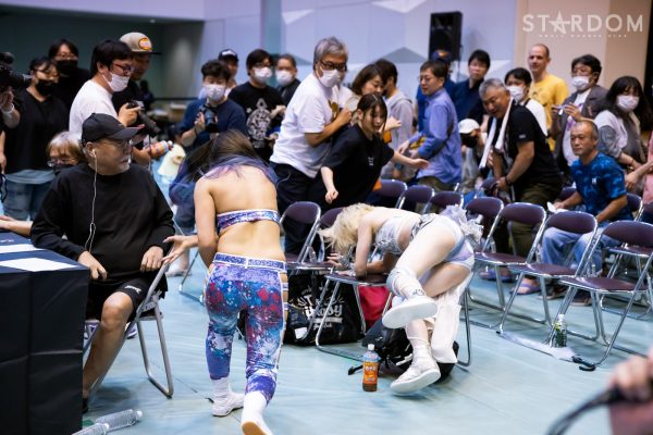 コズミックエンジェルズの中野たむ&水森由菜組と舞華&メーガン・ベーン組がタッグで激突。見習いの水森としては正式メンバーになるためにもリーダー中野にいいところを見せておきたい。査定マッチで対戦する中野がいかにして水森を引っ張るかもカギとなる。対する舞華&メーガンは10・15で開幕するタッグリーグ戦にエントリーされているとあって、この試合が試運転。リーグ戦の本命?台風の目? この試合でタッグリーグ戦の行方が見えてくるか? そして、赤いベルトを争った中野とメーガンの“再会”も見どころのひとつだ。