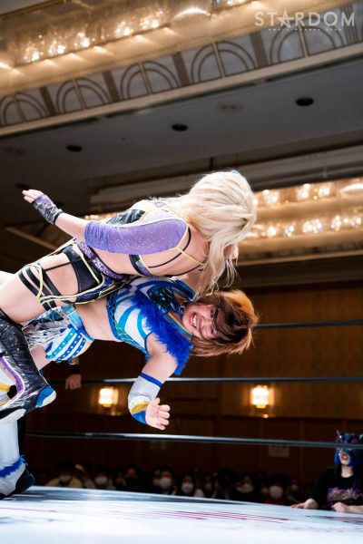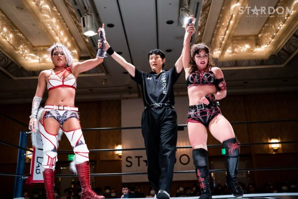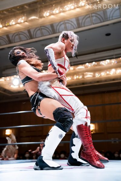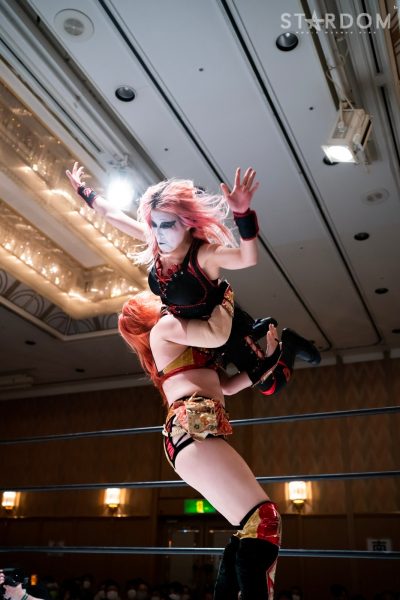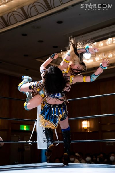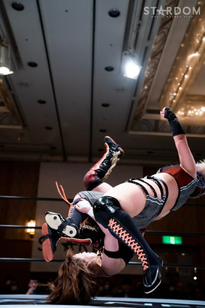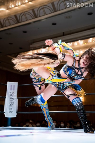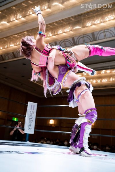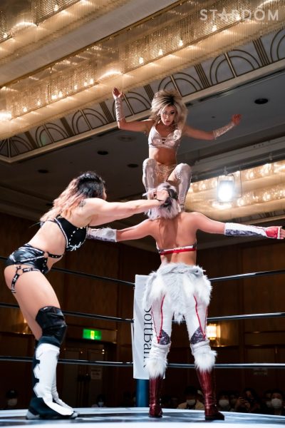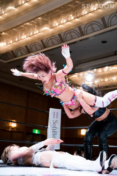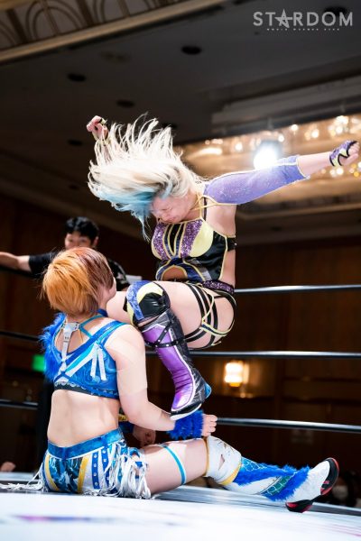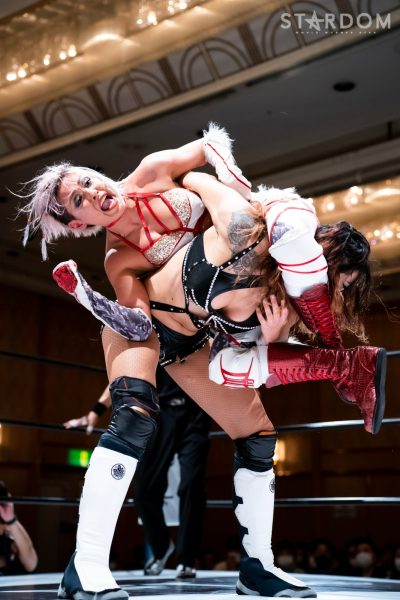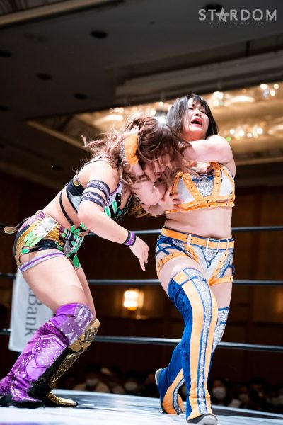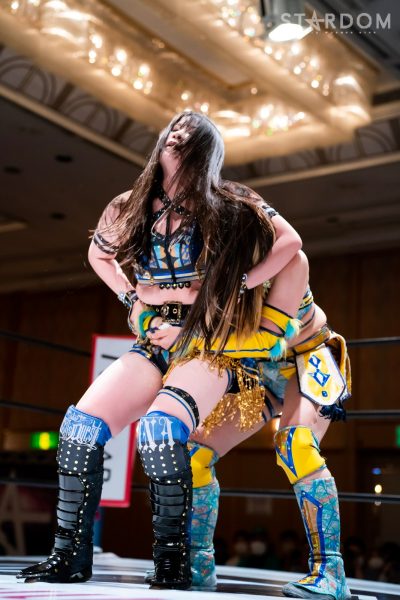 ジュリア&テクラ組とマライア・メイ&ジェシー組によるインターナショナルなタッグマッチ。桜井まいを加えたトリオでアーティスト・オブ・スターダム王座挑戦が決まったジュリア&テクラのバリバリボンバーズにはタイトルマッチに向けて弾みをつけたい試合である。