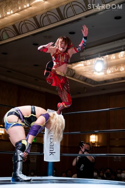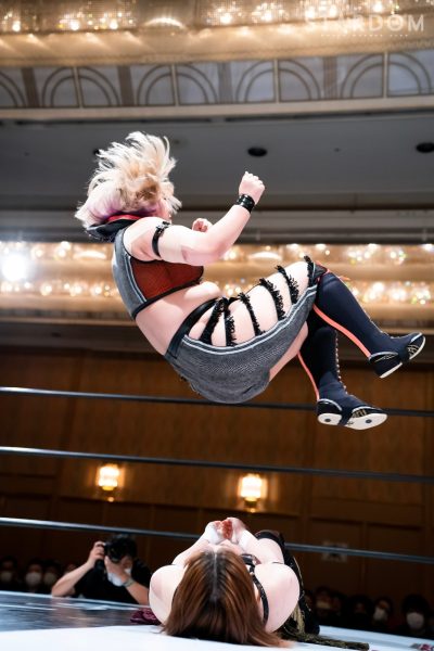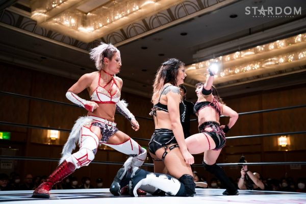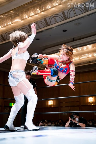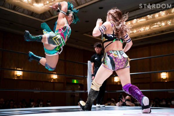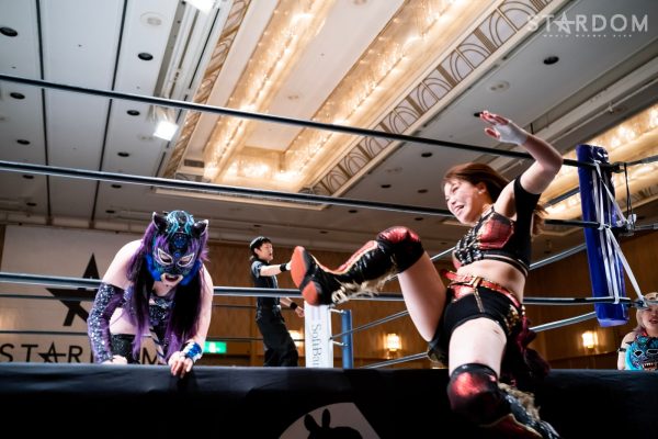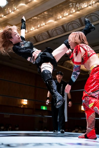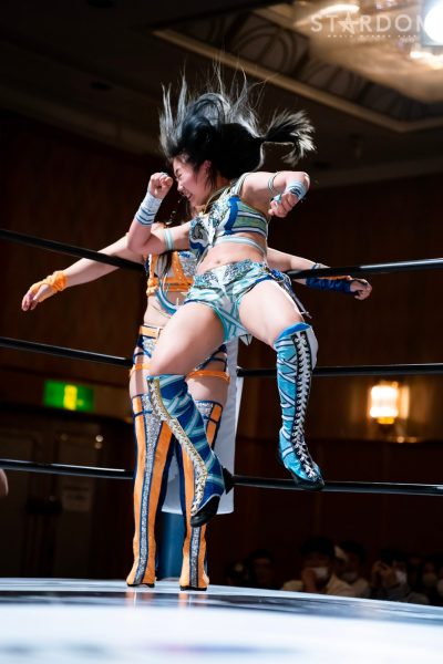 朱里&MIRAI&壮麗亜美組のゴッズアイと刀羅ナツコ&鹿島沙希&渡辺桃組の大江戸隊による6人タッグマッチ。ユニットのベストメンバーと言っても差し支えない構成だけに、どちらも負けられない闘いだ。とくに5・27大田区でのゴッデス・オブ・スターダム王座戦に臨む王者MIRAI&壮麗組と挑戦者ナツコ&桃組には前哨戦。タイトルマッチに向けて激しい駆け引きが展開される。