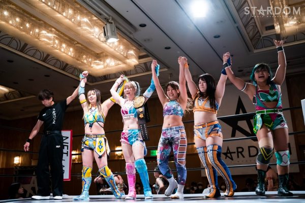 飯田と天咲の先発で開始。ロックアップから腕の取り合い。飯田がヘッドロックで締め上げると天咲がロープに振りドロップキック。すぐに飯田がショルダータックルで天咲を吹っ飛ばす。STARSが天咲を捕まえ連係攻撃、5人で一斉にドロップキック。葉月が天咲に顔面ウォッシュ、高々とボディースラム。岩谷がフットスタンプからサッカーボールキックを天咲に放つ。返した天咲に岩谷がキャメルクラッチ。そこへ葉月がドロップキック。コグマが天咲にボディースラム、フットスタンプ。天咲のエルボー連打をコグマが受けて立つ。天咲がコグマの突進をかわし串刺し側転エルボーからドロップキック。上谷がコグマにスワンダイブ。コグマがかわすと上谷はコグマと葉月にドロップキック。上谷がコグマの突進をかわしリング下のSTARSへプランチャを放つ。AZMが上谷と合体しコグマにドロップキック。コグマが待ったをかけジャンケンで勝った方が攻撃しようと提案。コグマが裏切り攻撃するとAZMがやり返す。ブレーンバスターの掛け合いはどちらも譲らずコグマがAZMにガンスタン。飯田がAZMにショルダータックル、コルバタを止めてフットスタンプもかわすとジャンピングチョップ。詩美が飯田に串刺しエルボー、ドロップキック。飯田が詩美にショルダータックル連打。詩美が受けて立ち、ショルダータックルで吹っ飛ばす。すぐに飯田もショルダータックルを決め、ブレーンバスターの体勢。詩美が切り返しジャーマン、飯田がスパインバスター。妃南と羽南が姉妹対決。羽南がクロスボディーからノーザンライトの構え。妃南が切り返して払い腰で叩きつける。岩谷がトラースキック、羽南と飯田が合体のネックブリーカー。羽南が妃南にノーザンライトもカットされる。STARSが合体フェースクラッシャーを狙うがQQがドロップキックでカット。妃南が羽南に大外刈り。羽南がダッシュすると上谷がDDT。QQのドロップキックがかわされSTARSが5方向で場外弾を決める。さらにリングに戻ると妃南を捕まえ合体フェースクラッシャー、羽南がフェイマサ―。しかしギリギリで妃南が肩を上げる。羽南はフィニッシュを宣言しバックドロップ狙い、妃南が外道クラッチに切り返すが2カウント。羽南が突進を止めて後方に投げつけると、バックドロップホールド。3カウントが入り羽南が妃南をフォールした。