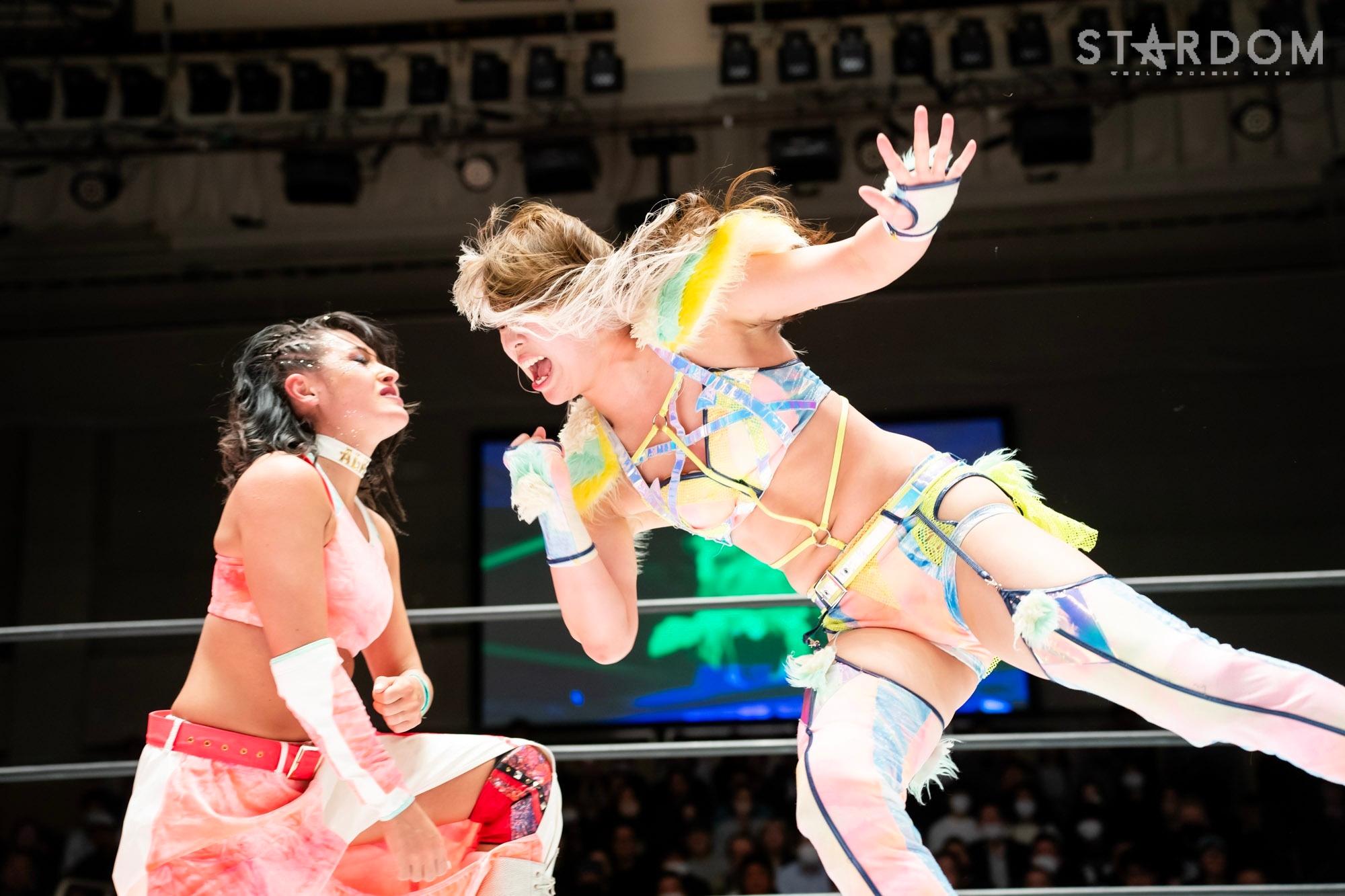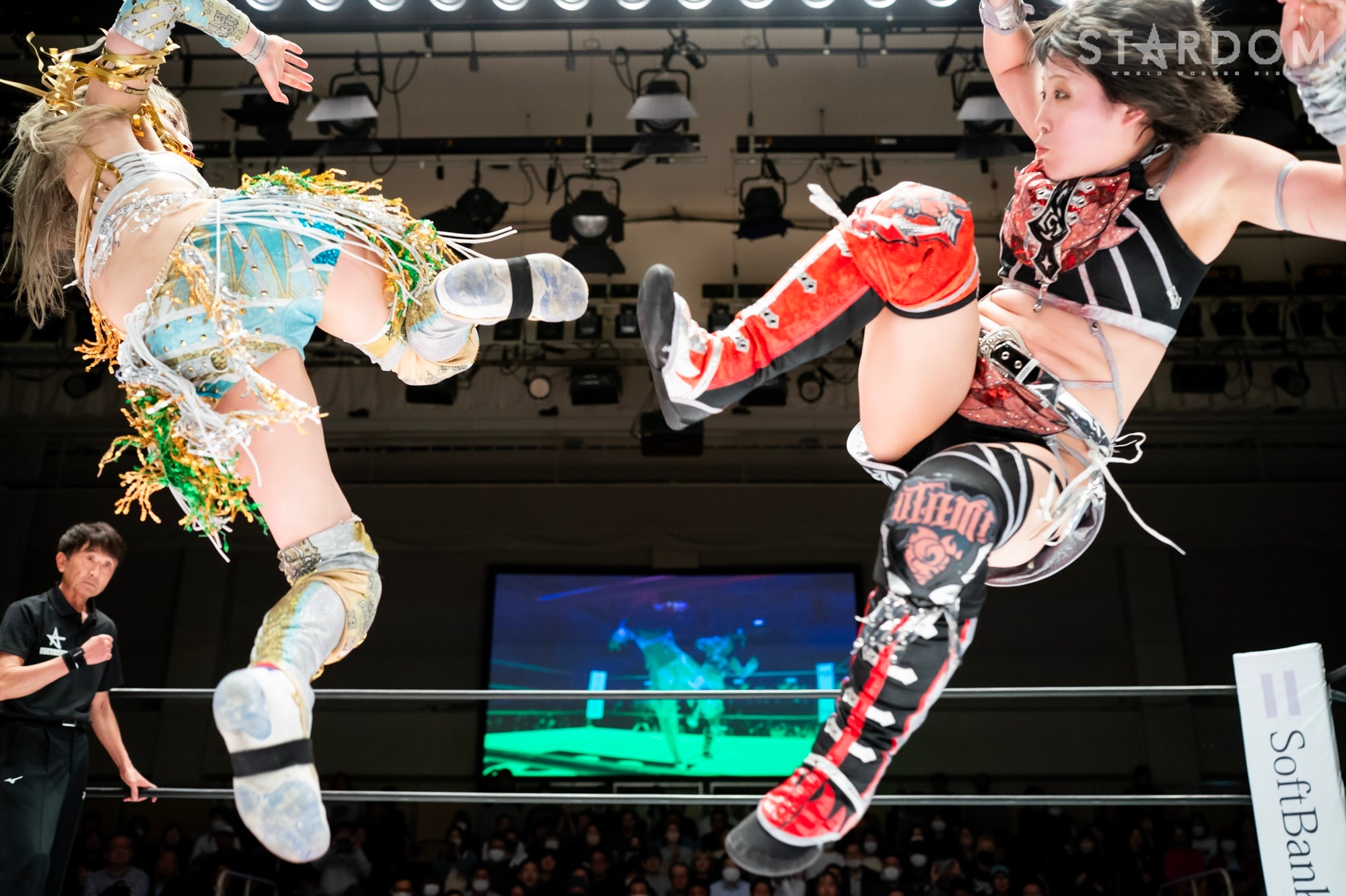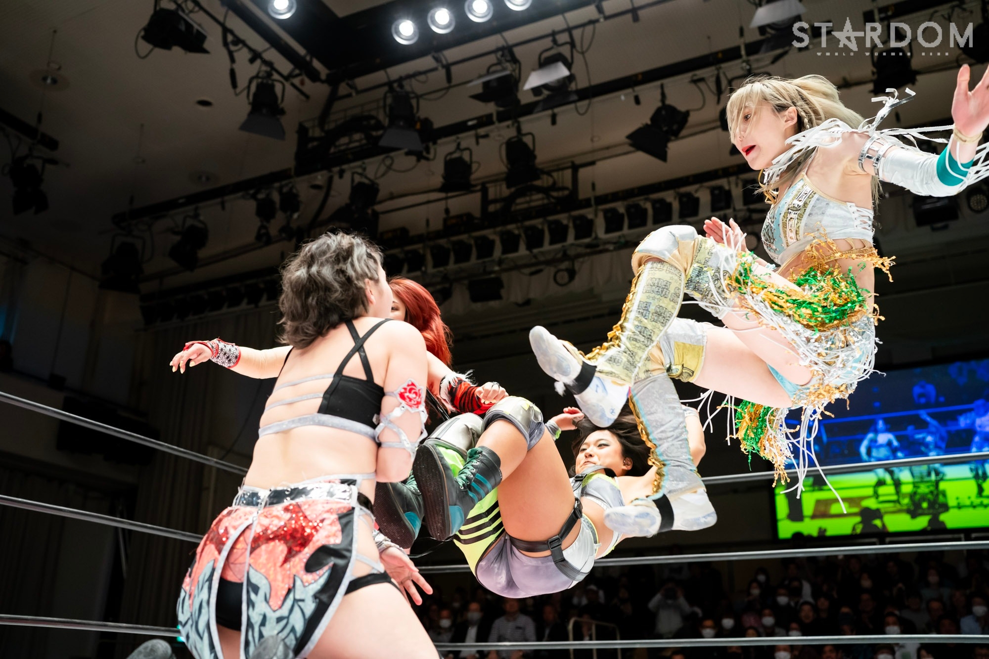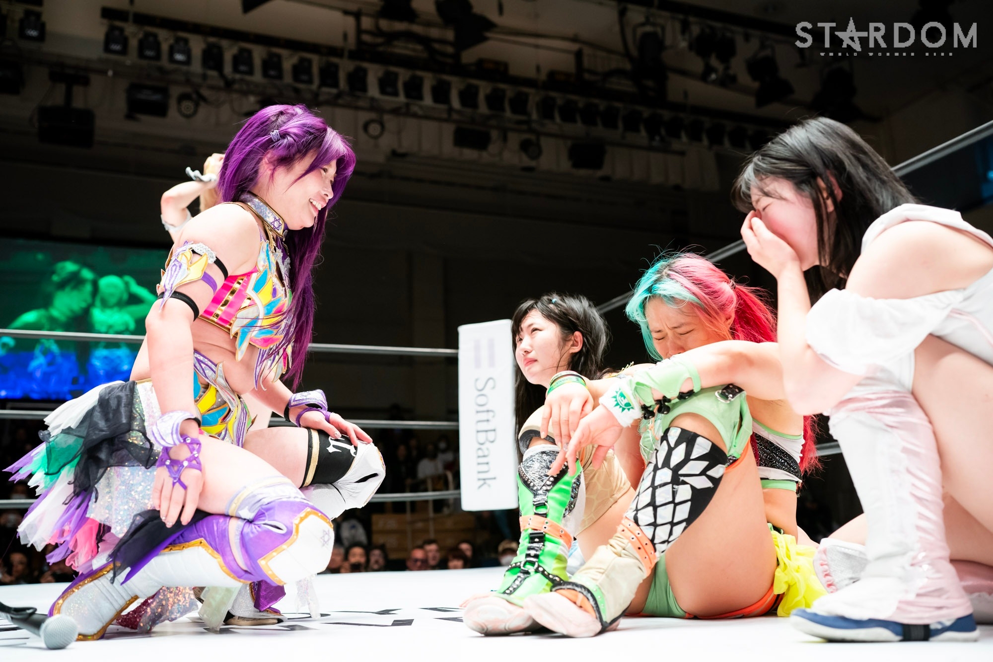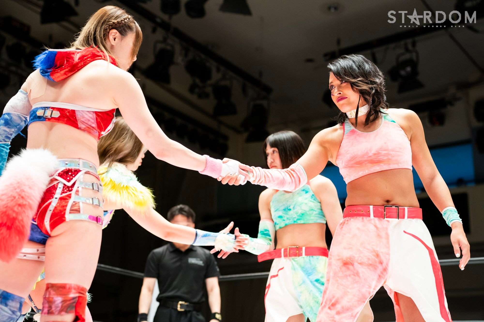 Akari dan Julia muncul dari tribun penonton selatan. Akari dan Julia berjabat tangan, dan Iwatani serta Hanan mengulurkan tangan mereka. Akari dan Julia membalas jabat tangan tersebut, dan Iwatani serta Julia memulai pertandingan. Akari memeluk Julia dan mengantarnya pergi. Iwatani tampak kesal saat penonton meneriakkan nama Julia. Teriakan untuk Mayu dan Julia bercampur di arena, dan mereka dengan hati-hati mengambil posisi empat arah. Saat Iwatani bergoyang maju mundur, Julia berkata, "Itu menyebalkan!" Keduanya kemudian saling mengunci dengan erat. Iwatani meraih lengannya, dan Julia meraih kakinya lalu melakukan kuncian kepala. Julia melakukan serangan bahu, dan Iwatani membalas dengan cambukan lengan dan tendangan menjatuhkan. STARS bergabung dan menyerang Julia secara bersamaan, memberikan tendangan menjatuhkan ganda dari belakang. Hanan menyerang Julia dari belakang. Akari bergegas masuk dan bergabung dengan Julia untuk melakukan serangan bahu tusukan ganda diikuti tendangan menjatuhkan ganda. Hanan membalas serangan, dan Julia melakukan kuncian leher. Akari dan Julia menyerang Hanan di sudut mereka sendiri. Akari mencoba tendangan bola sepak, tetapi Hanan membalasnya. Akari mendaratkan pukulan lain, mendorongnya ke sudut, dan memberikan serangkaian injakan dan lutut tusukan. Julia mengikat rambut Hanan dan melakukan kuncian tidur. Julia berdiri untuk menghadapi serangkaian serangan siku Hanan, dan menjatuhkannya dengan serangan siku lainnya. Akari menginjak wajahnya dan kemudian melakukan DDT. Hanan membalas serangan, dan Akari memukulnya dengan serangkaian tendangan tengah. Ketika Hanan kembali, Akari melakukan kuncian dagu dan kuncian tidur. Hanan lolos, tetapi Akari melancarkan serangkaian serangan lutut. Akari menyerang, dan Hanan melempar tendangan pinggul. Iwatani, yang menggantikannya, melakukan tendangan kaki melompat ke arah Akari. Julia menghindari serangan Iwatani, tetapi terkena tendangan menjatuhkan. Arikaba menghindari serangan Iwatani. Iwatani mendorong keduanya ke sudut ring. Cambukan lengan dan tendangan menjatuhkan. Mereka berebut posisi belakang, dan Akari melakukan tendangan menjatuhkan, serangan lutut, dan kuncian leher depan. Iwatani kembali, dan Akari melakukan tendangan bola sepak. Julia menggulung Iwatani dan mencoba melakukan STF. 10 menit berlalu. Iwatani lolos, dan Julia melemparnya ke belakang. Julia dibalas dan dikirim ke sudut ring. Iwatani mengejar, menanduk, dan melakukan avalanche frankensteiner. Dia kemudian mengambil posisi belakang dan menahannya dengan German suplex. Julia kembali, dan Iwatani pergi ke sudut ring. Akari menghentikannya, dan Julia bersiap untuk melakukan avalanche double armlock. Akari ikut bergabung, membanting kedua wanita itu dari atas ring. Selanjutnya, Julia melakukan Falcon Arrow, tetapi Iwatani berhasil menangkisnya. Julia mencoba melakukan Glorious Driver pada Iwatani. Iwatani membalas dengan tendangan dorong. Hanan menggantikan Julia dan menghantamnya dengan empat serangan siku berlari. Ketika Julia membalas, Hanan menerapkan kuncian lengan, tetapi Akari menghentikannya dengan kuncian guillotine. Julia membalas suplex dari Hanan, dan Akari ikut bergabung, memberikan pukulan ganda dan membanting Hanan ke matras. Ketika Hanan membalas, Julia mengunci lengannya dan menerapkan kuncian submission. 15 menit telah berlalu. Kaki Hanan mencapai tali ring. Julia mengancam untuk mengakhiri pertandingan dan mencoba melakukan Glorious Driver. Iwatani menghentikannya dengan tendangan rudal dan memisahkan Akari dengan corbata. Hanan melakukan plancha, dan Iwatani melakukan tope, keduanya melompat ke luar ring secara bersamaan. Julia dibawa kembali ke dalam ring, dan Hanan menerapkan kuncian famer dan blockbuster hold. Julia melakukan serangan balik, dan Hanan mengambil alih kendali. Julia menggulung Hanan, tetapi hanya mendapatkan hitungan dua. Hanan melakukan serangan balik, dan Julia menghantamnya dengan serangkaian bantingan punggung. Hanan bangkit dan menghantamnya dengan serangan siku. Iwatani dan Hanan bekerja sama dan membanting Julia ke depan. Dua menit tersisa. Hanan dan Julia berada di ring. Hanan menempatkan Julia di sudut ring dan mengambil alih kendali. Akari menghentikan serangan, dan Julia serta Iwatani melakukan serangan lutut dan membantingnya dengan gerakan ular raksasa. Namun, Iwatani menghentikan serangan tepat waktu, dengan satu menit tersisa. Julia mencoba melakukan Glorious Driver, tetapi Iwatani berhasil menghentikannya. Julia mengangkat Hanan, tetapi Hanan melakukan serangan balik dan menggulungnya. Akari menghentikan serangan, dan Julia mengangkat Hanan. Dengan 10 detik tersisa, Hanan menerapkan kuncian bantingan punggung. Hitungan dua tercapai, dan tepat saat Akari mencoba menghentikan serangan, waktu habis.