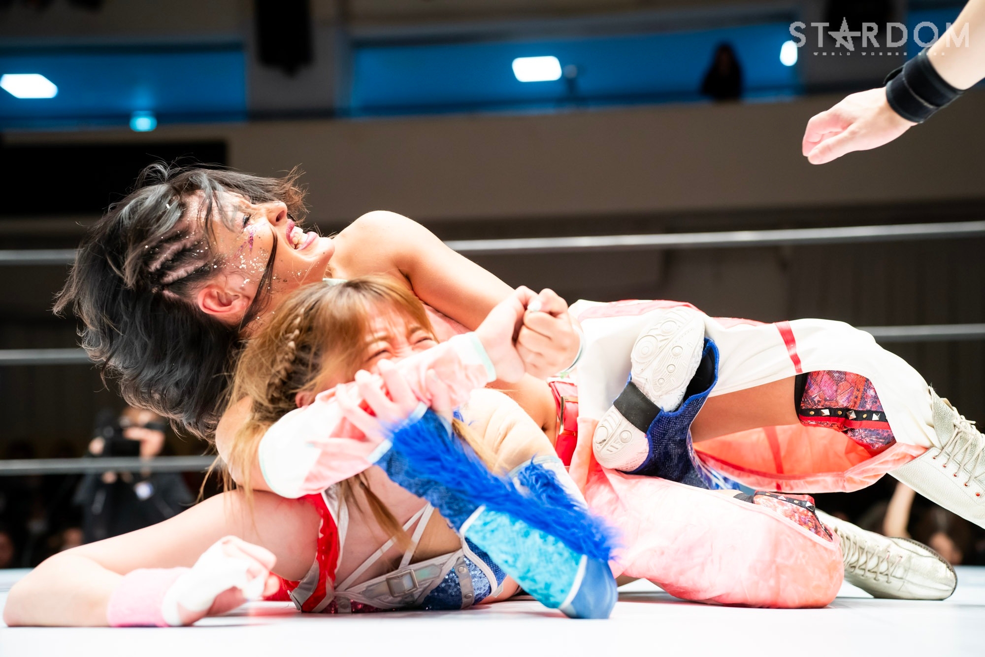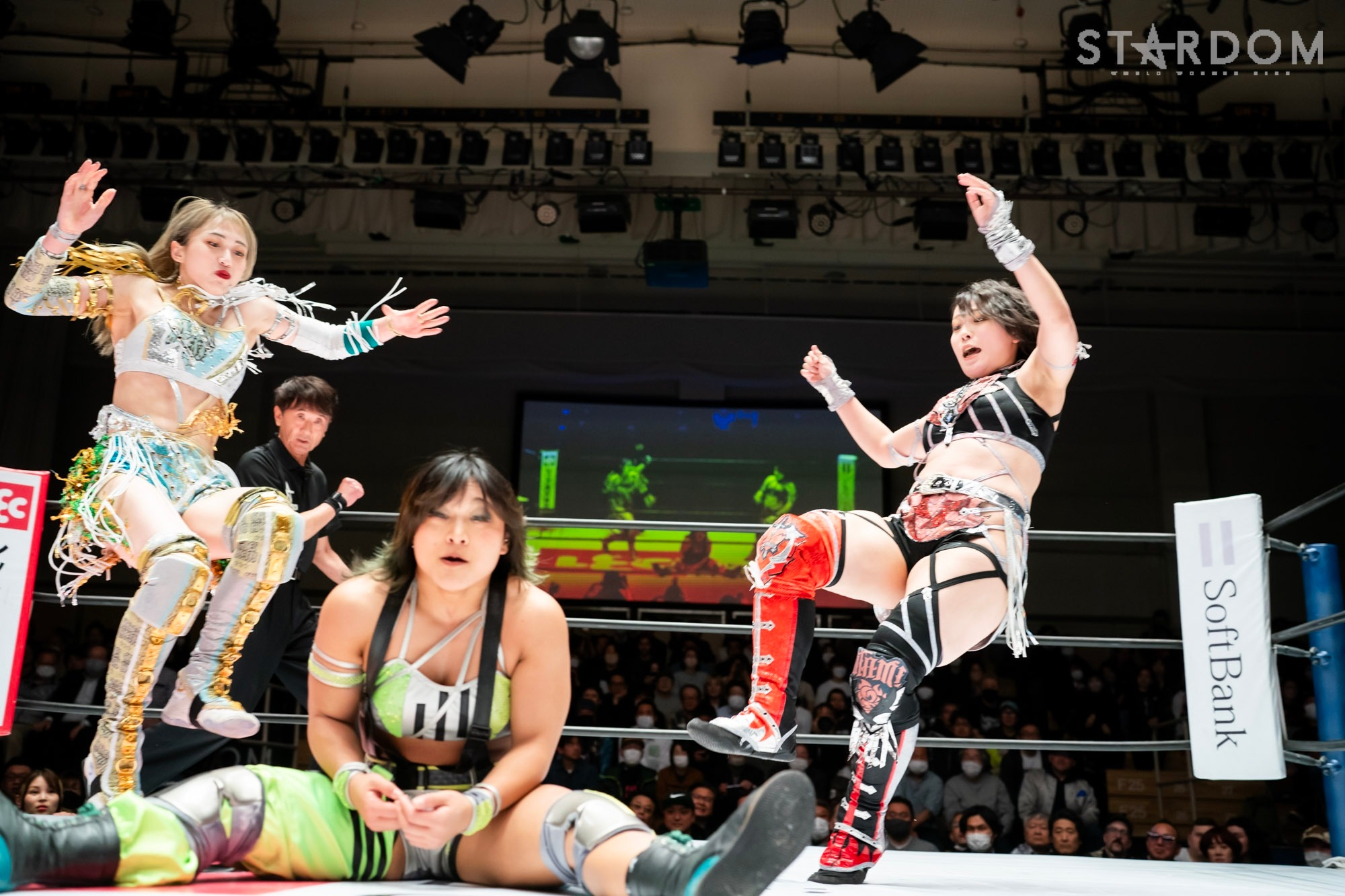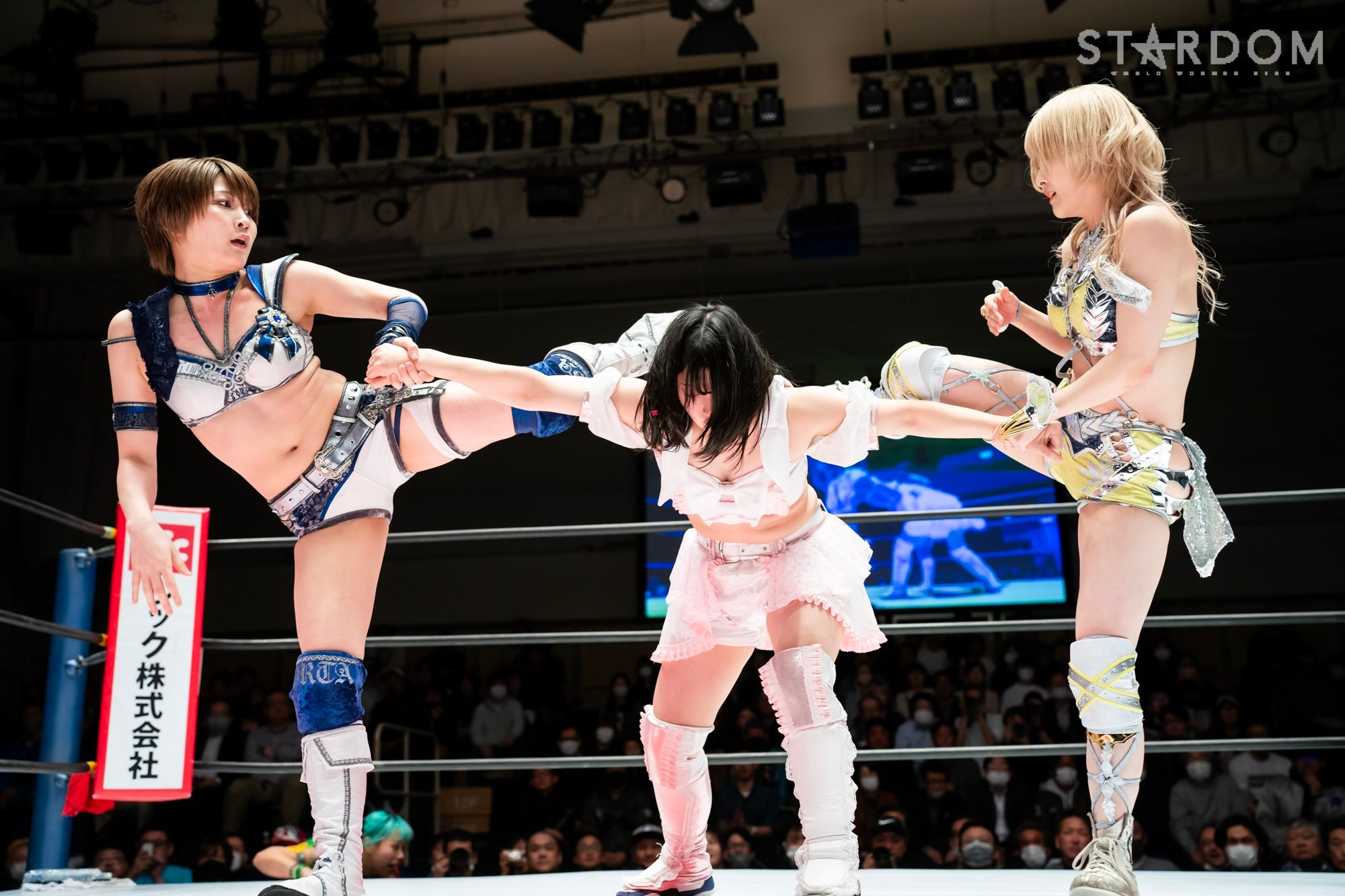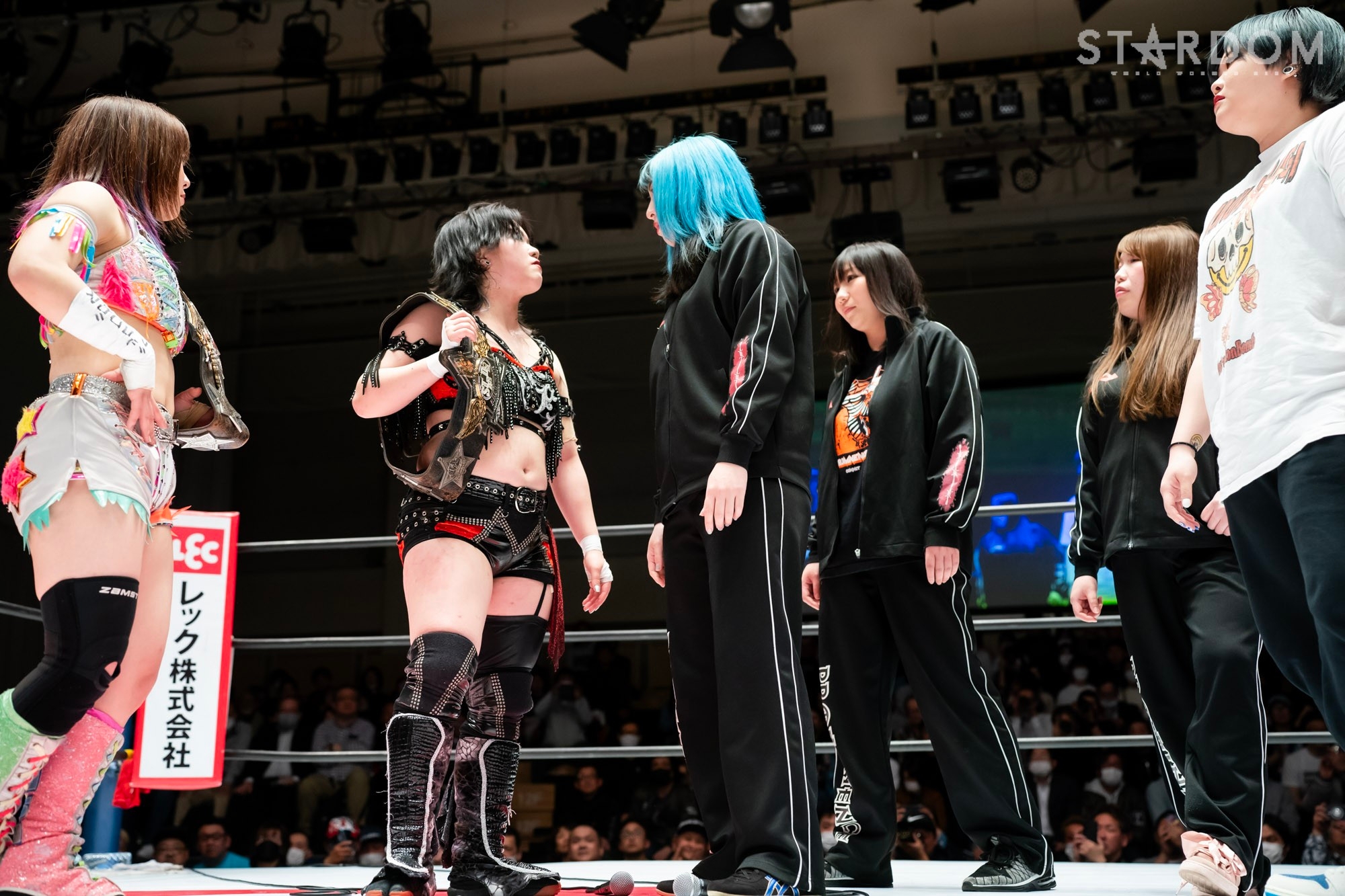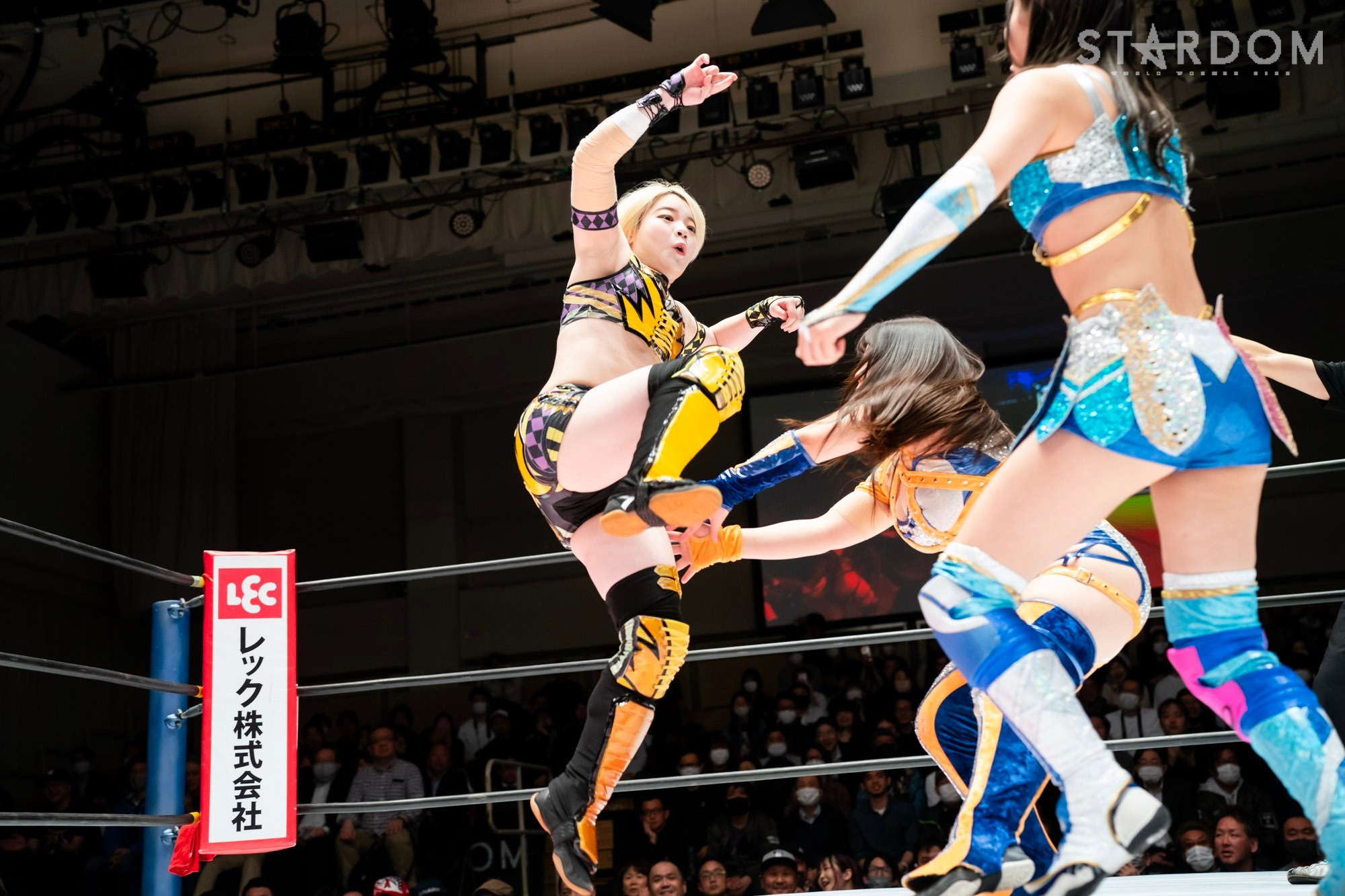 Akari dan Julia muncul dari tribun penonton selatan. Akari dan Julia berjabat tangan, dan Iwatani serta Hanan mengulurkan tangan mereka. Akari dan Julia membalas jabat tangan tersebut, dan Iwatani serta Julia memulai pertandingan. Akari memeluk Julia dan mengantarnya pergi. Iwatani tampak kesal saat penonton meneriakkan nama Julia. Teriakan untuk Mayu dan Julia bercampur di arena, dan mereka dengan hati-hati mengambil posisi empat arah. Saat Iwatani bergoyang maju mundur, Julia berkata, "Itu menyebalkan!" Keduanya kemudian saling mengunci dengan erat. Iwatani meraih lengannya, dan Julia meraih kakinya lalu melakukan kuncian kepala. Julia melakukan serangan bahu, dan Iwatani membalas dengan cambukan lengan dan tendangan menjatuhkan. STARS bergabung dan menyerang Julia secara bersamaan, memberikan tendangan menjatuhkan ganda dari belakang. Hanan menyerang Julia dari belakang. Akari bergegas masuk dan bergabung dengan Julia untuk melakukan serangan bahu tusukan ganda diikuti tendangan menjatuhkan ganda. Hanan membalas serangan, dan Julia melakukan kuncian leher. Akari dan Julia menyerang Hanan di sudut mereka sendiri. Akari mencoba tendangan bola sepak, tetapi Hanan membalasnya. Akari mendaratkan pukulan lain, mendorongnya ke sudut, dan memberikan serangkaian injakan dan lutut tusukan. Julia mengikat rambut Hanan dan melakukan kuncian tidur. Julia berdiri untuk menghadapi serangkaian serangan siku Hanan, dan menjatuhkannya dengan serangan siku lainnya. Akari menginjak wajahnya dan kemudian melakukan DDT. Hanan membalas serangan, dan Akari memukulnya dengan serangkaian tendangan tengah. Ketika Hanan kembali, Akari melakukan kuncian dagu dan kuncian tidur. Hanan lolos, tetapi Akari melancarkan serangkaian serangan lutut. Akari menyerang, dan Hanan melempar tendangan pinggul. Iwatani, yang menggantikannya, melakukan tendangan kaki melompat ke arah Akari. Julia menghindari serangan Iwatani, tetapi terkena tendangan menjatuhkan. Arikaba menghindari serangan Iwatani. Iwatani mendorong keduanya ke sudut ring. Cambukan lengan dan tendangan menjatuhkan. Mereka berebut posisi belakang, dan Akari melakukan tendangan menjatuhkan, serangan lutut, dan kuncian leher depan. Iwatani kembali, dan Akari melakukan tendangan bola sepak. Julia menggulung Iwatani dan mencoba melakukan STF. 10 menit berlalu. Iwatani lolos, dan Julia melemparnya ke belakang. Julia dibalas dan dikirim ke sudut ring. Iwatani mengejar, menanduk, dan melakukan avalanche frankensteiner. Dia kemudian mengambil posisi belakang dan menahannya dengan German suplex. Julia kembali, dan Iwatani pergi ke sudut ring. Akari menghentikannya, dan Julia bersiap untuk melakukan avalanche double armlock. Akari ikut bergabung, membanting kedua wanita itu dari atas ring. Selanjutnya, Julia melakukan Falcon Arrow, tetapi Iwatani berhasil menangkisnya. Julia mencoba melakukan Glorious Driver pada Iwatani. Iwatani membalas dengan tendangan dorong. Hanan menggantikan Julia dan menghantamnya dengan empat serangan siku berlari. Ketika Julia membalas, Hanan menerapkan kuncian lengan, tetapi Akari menghentikannya dengan kuncian guillotine. Julia membalas suplex dari Hanan, dan Akari ikut bergabung, memberikan pukulan ganda dan membanting Hanan ke matras. Ketika Hanan membalas, Julia mengunci lengannya dan menerapkan kuncian submission. 15 menit telah berlalu. Kaki Hanan mencapai tali ring. Julia mengancam untuk mengakhiri pertandingan dan mencoba melakukan Glorious Driver. Iwatani menghentikannya dengan tendangan rudal dan memisahkan Akari dengan corbata. Hanan melakukan plancha, dan Iwatani melakukan tope, keduanya melompat ke luar ring secara bersamaan. Julia dibawa kembali ke dalam ring, dan Hanan menerapkan kuncian famer dan blockbuster hold. Julia melakukan serangan balik, dan Hanan mengambil alih kendali. Julia menggulung Hanan, tetapi hanya mendapatkan hitungan dua. Hanan melakukan serangan balik, dan Julia menghantamnya dengan serangkaian bantingan punggung. Hanan bangkit dan menghantamnya dengan serangan siku. Iwatani dan Hanan bekerja sama dan membanting Julia ke depan. Dua menit tersisa. Hanan dan Julia berada di ring. Hanan menempatkan Julia di sudut ring dan mengambil alih kendali. Akari menghentikan serangan, dan Julia serta Iwatani melakukan serangan lutut dan membantingnya dengan gerakan ular raksasa. Namun, Iwatani menghentikan serangan tepat waktu, dengan satu menit tersisa. Julia mencoba melakukan Glorious Driver, tetapi Iwatani berhasil menghentikannya. Julia mengangkat Hanan, tetapi Hanan melakukan serangan balik dan menggulungnya. Akari menghentikan serangan, dan Julia mengangkat Hanan. Dengan 10 detik tersisa, Hanan menerapkan kuncian bantingan punggung. Hitungan dua tercapai, dan tepat saat Akari mencoba menghentikan serangan, waktu habis.
