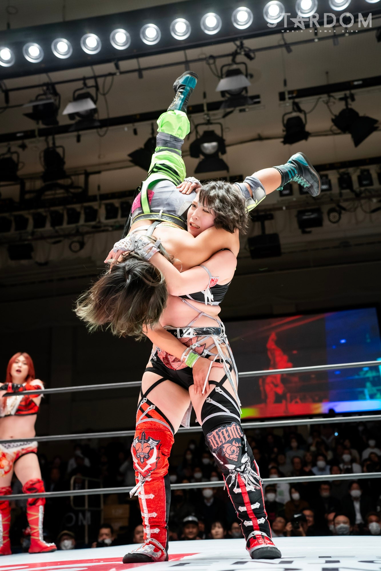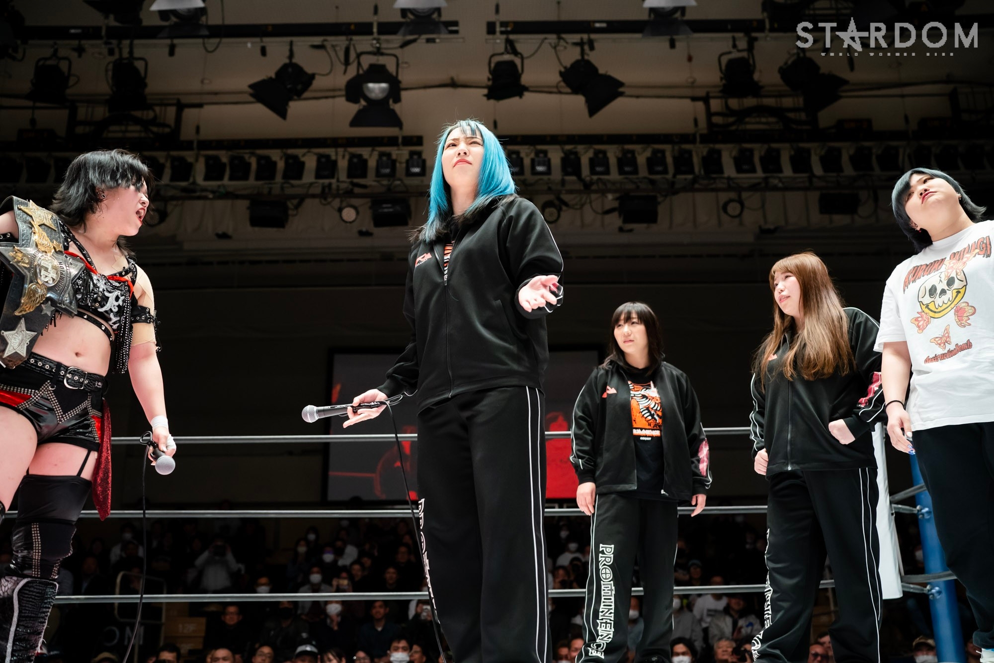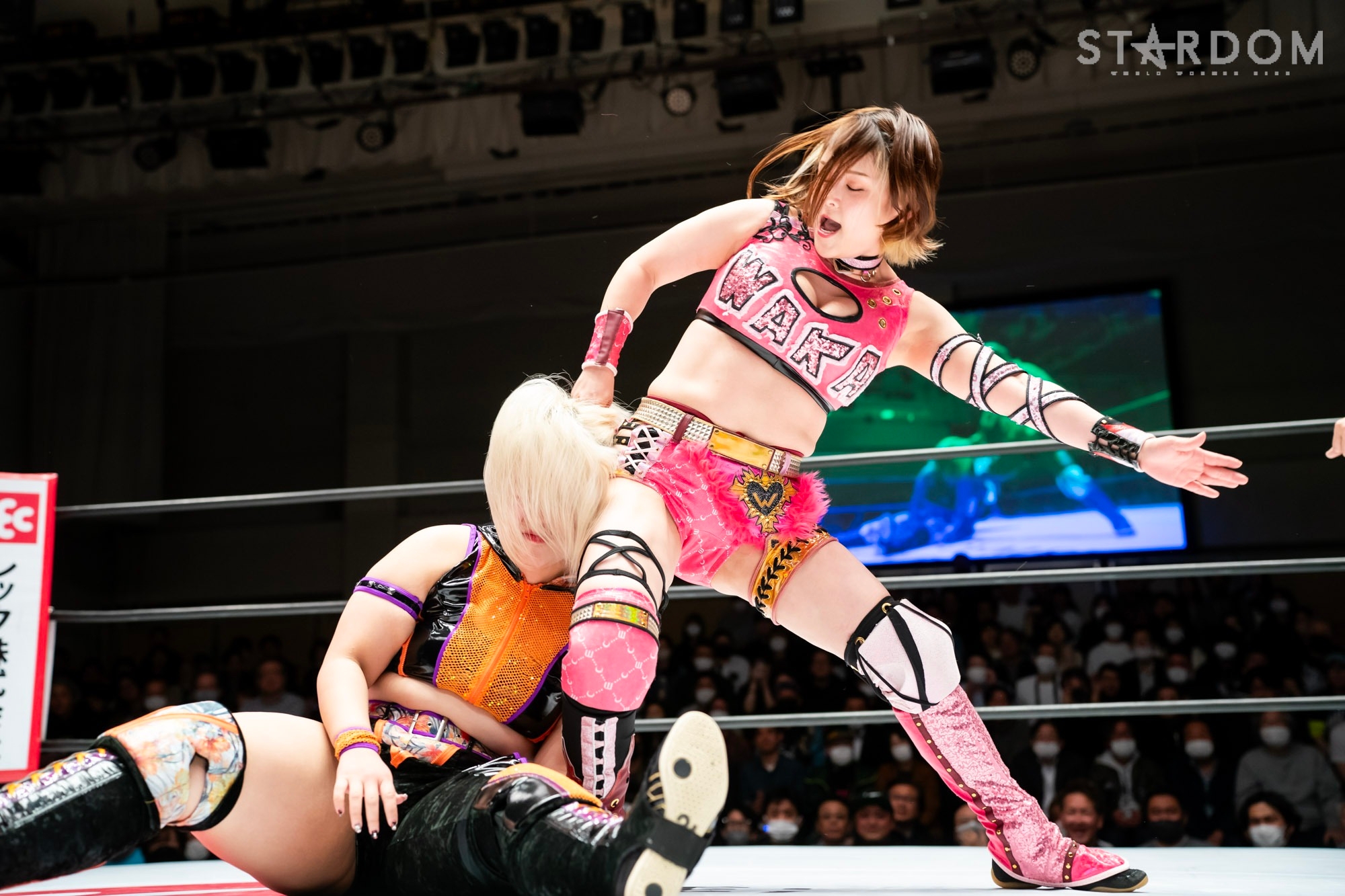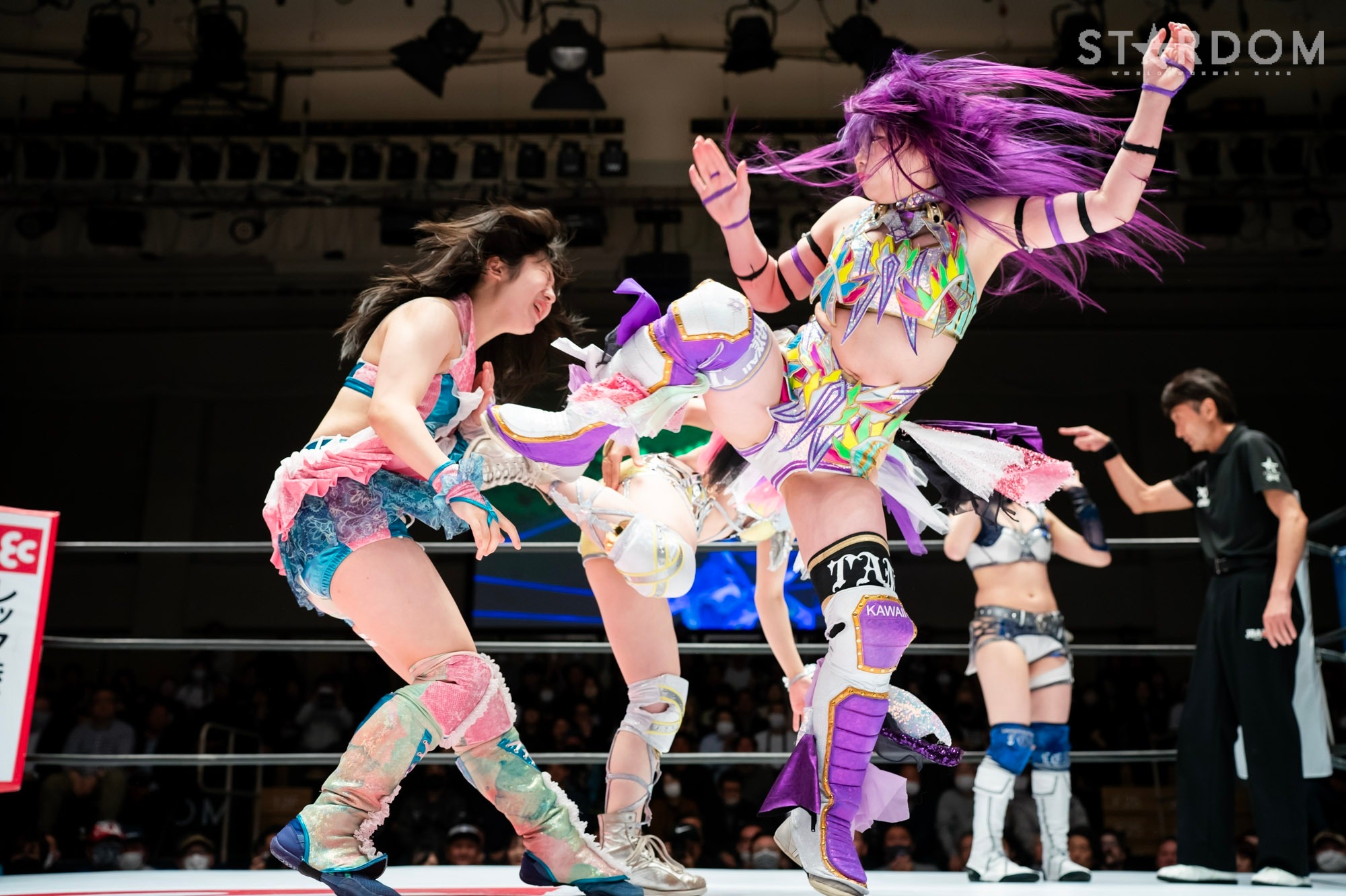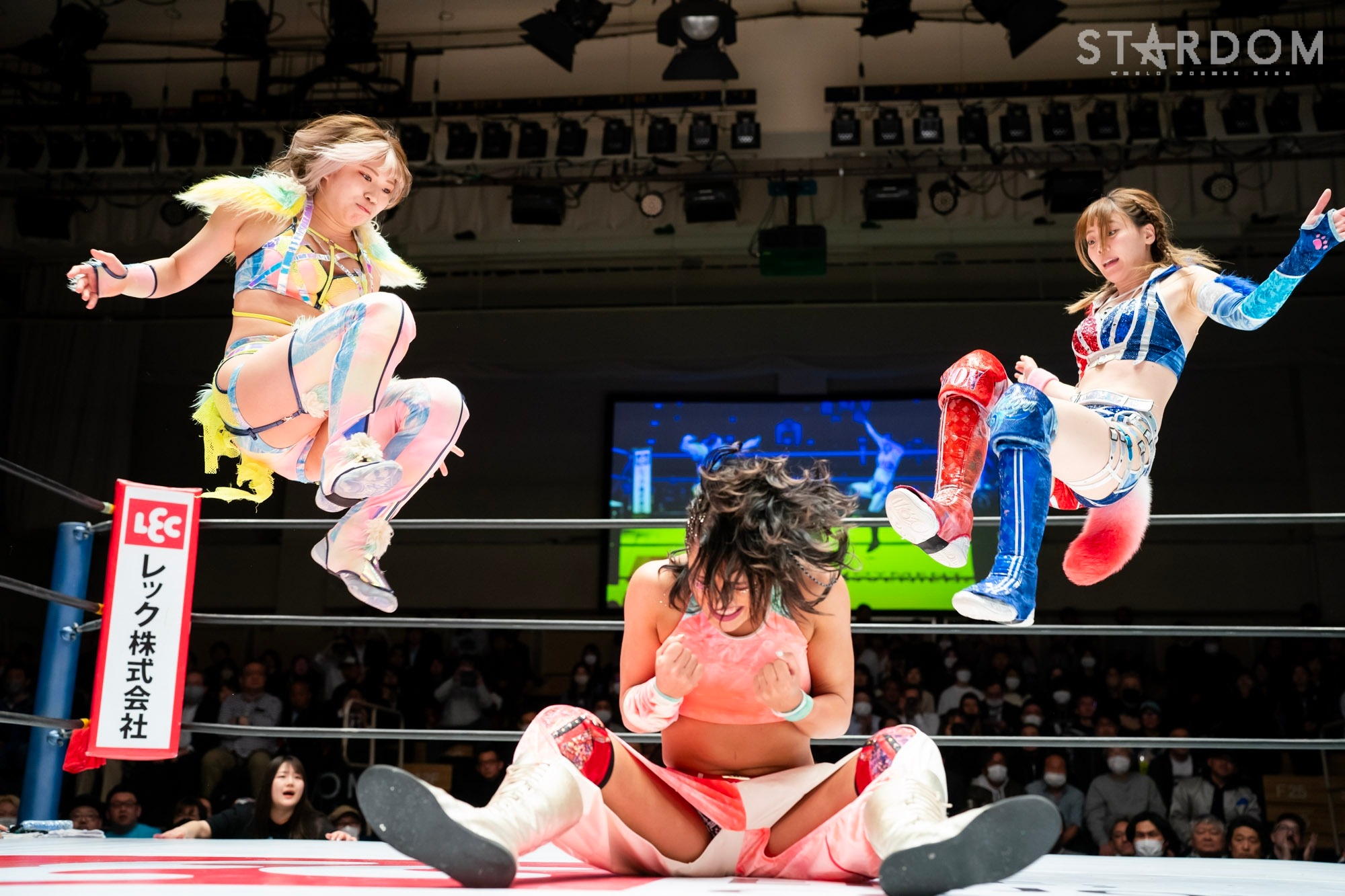 Akari dan Julia muncul dari tribun penonton selatan. Akari dan Julia berjabat tangan, dan Iwatani serta Hanan mengulurkan tangan mereka. Akari dan Julia membalas jabat tangan tersebut, dan Iwatani serta Julia memulai pertandingan. Akari memeluk Julia dan mengantarnya pergi. Iwatani tampak kesal saat penonton meneriakkan nama Julia. Teriakan untuk Mayu dan Julia bercampur di arena, dan mereka dengan hati-hati mengambil posisi empat arah. Saat Iwatani bergoyang maju mundur, Julia berkata, "Itu menyebalkan!" Keduanya kemudian saling mengunci dengan erat. Iwatani meraih lengannya, dan Julia meraih kakinya lalu melakukan kuncian kepala. Julia melakukan serangan bahu, dan Iwatani membalas dengan cambukan lengan dan tendangan menjatuhkan. STARS bergabung dan menyerang Julia secara bersamaan, memberikan tendangan menjatuhkan ganda dari belakang. Hanan menyerang Julia dari belakang. Akari bergegas masuk dan bergabung dengan Julia untuk melakukan serangan bahu tusukan ganda diikuti tendangan menjatuhkan ganda. Hanan membalas serangan, dan Julia melakukan kuncian leher. Akari dan Julia menyerang Hanan di sudut mereka sendiri. Akari mencoba tendangan bola sepak, tetapi Hanan membalasnya. Akari mendaratkan pukulan lain, mendorongnya ke sudut, dan memberikan serangkaian injakan dan lutut tusukan. Julia mengikat rambut Hanan dan melakukan kuncian tidur. Julia berdiri untuk menghadapi serangkaian serangan siku Hanan, dan menjatuhkannya dengan serangan siku lainnya. Akari menginjak wajahnya dan kemudian melakukan DDT. Hanan membalas serangan, dan Akari memukulnya dengan serangkaian tendangan tengah. Ketika Hanan kembali, Akari melakukan kuncian dagu dan kuncian tidur. Hanan lolos, tetapi Akari melancarkan serangkaian serangan lutut. Akari menyerang, dan Hanan melempar tendangan pinggul. Iwatani, yang menggantikannya, melakukan tendangan kaki melompat ke arah Akari. Julia menghindari serangan Iwatani, tetapi terkena tendangan menjatuhkan. Arikaba menghindari serangan Iwatani. Iwatani mendorong keduanya ke sudut ring. Cambukan lengan dan tendangan menjatuhkan. Mereka berebut posisi belakang, dan Akari melakukan tendangan menjatuhkan, serangan lutut, dan kuncian leher depan. Iwatani kembali, dan Akari melakukan tendangan bola sepak. Julia menggulung Iwatani dan mencoba melakukan STF. 10 menit berlalu. Iwatani lolos, dan Julia melemparnya ke belakang. Julia dibalas dan dikirim ke sudut ring. Iwatani mengejar, menanduk, dan melakukan avalanche frankensteiner. Dia kemudian mengambil posisi belakang dan menahannya dengan German suplex. Julia kembali, dan Iwatani pergi ke sudut ring. Akari menghentikannya, dan Julia bersiap untuk melakukan avalanche double armlock. Akari ikut bergabung, membanting kedua wanita itu dari atas ring. Selanjutnya, Julia melakukan Falcon Arrow, tetapi Iwatani berhasil menangkisnya. Julia mencoba melakukan Glorious Driver pada Iwatani. Iwatani membalas dengan tendangan dorong. Hanan menggantikan Julia dan menghantamnya dengan empat serangan siku berlari. Ketika Julia membalas, Hanan menerapkan kuncian lengan, tetapi Akari menghentikannya dengan kuncian guillotine. Julia membalas suplex dari Hanan, dan Akari ikut bergabung, memberikan pukulan ganda dan membanting Hanan ke matras. Ketika Hanan membalas, Julia mengunci lengannya dan menerapkan kuncian submission. 15 menit telah berlalu. Kaki Hanan mencapai tali ring. Julia mengancam untuk mengakhiri pertandingan dan mencoba melakukan Glorious Driver. Iwatani menghentikannya dengan tendangan rudal dan memisahkan Akari dengan corbata. Hanan melakukan plancha, dan Iwatani melakukan tope, keduanya melompat ke luar ring secara bersamaan. Julia dibawa kembali ke dalam ring, dan Hanan menerapkan kuncian famer dan blockbuster hold. Julia melakukan serangan balik, dan Hanan mengambil alih kendali. Julia menggulung Hanan, tetapi hanya mendapatkan hitungan dua. Hanan melakukan serangan balik, dan Julia menghantamnya dengan serangkaian bantingan punggung. Hanan bangkit dan menghantamnya dengan serangan siku. Iwatani dan Hanan bekerja sama dan membanting Julia ke depan. Dua menit tersisa. Hanan dan Julia berada di ring. Hanan menempatkan Julia di sudut ring dan mengambil alih kendali. Akari menghentikan serangan, dan Julia serta Iwatani melakukan serangan lutut dan membantingnya dengan gerakan ular raksasa. Namun, Iwatani menghentikan serangan tepat waktu, dengan satu menit tersisa. Julia mencoba melakukan Glorious Driver, tetapi Iwatani berhasil menghentikannya. Julia mengangkat Hanan, tetapi Hanan melakukan serangan balik dan menggulungnya. Akari menghentikan serangan, dan Julia mengangkat Hanan. Dengan 10 detik tersisa, Hanan menerapkan kuncian bantingan punggung. Hitungan dua tercapai, dan tepat saat Akari mencoba menghentikan serangan, waktu habis.