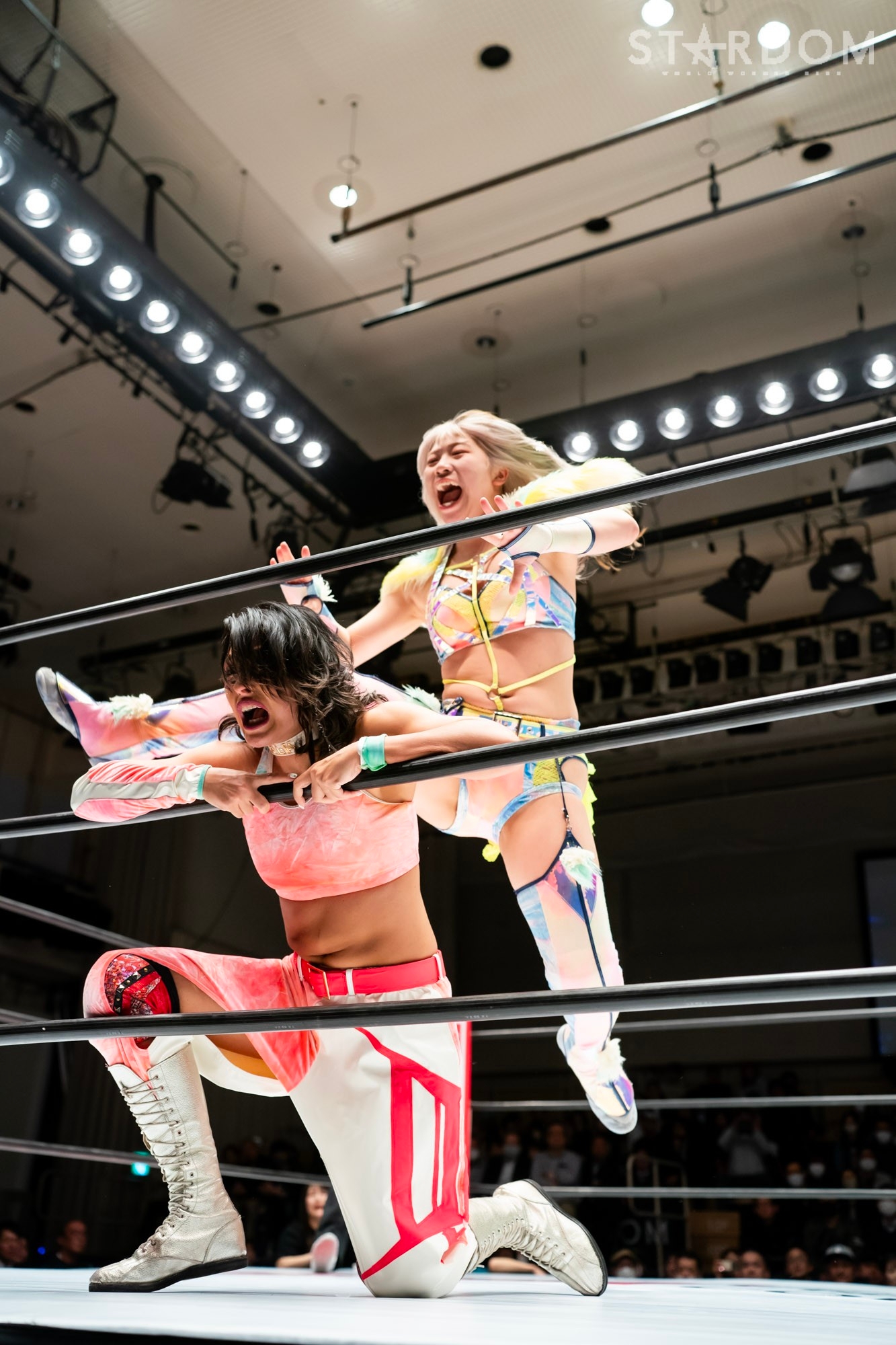 STARS, yang terdiri dari Iwatani Mayu dan Hanan, berhadapan dengan Akari dan Julia dalam pertandingan tag team. Ini adalah pertandingan terakhir Julia di Stardom, dan dia menghidupkan kembali Altrivello Cavalian (Alicaba) bersama Akari, rekan setimnya di Donna del Mondo, sebelum meninggalkan ring Stardom. Juara Wanita IWGP Iwatani dan mantan Juara Wanita STRONG Julia berhadapan untuk terakhir kalinya. Pertarungan seperti apa yang akan kita saksikan, yang berpusat pada dua pegulat yang juga telah memukau ring Amerika ini?