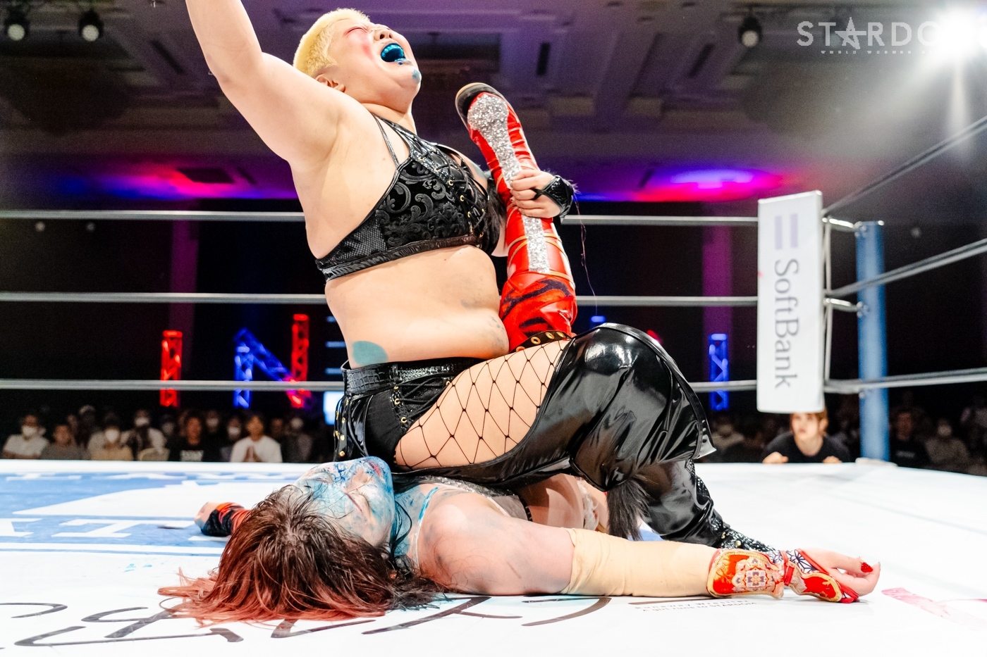 EXV dan Kamitani membuka tali ring untuk menyambut Maika masuk. Arena bergemuruh kegembiraan melihat rambut pirang pendek Natsuko. Gong berbunyi, dan saat sorakan "Maika" menggema, kedua pegulat perlahan melangkah dan saling berhadapan untuk adu kekuatan. Mereka bergulat lagi dan memecahkan kebuntuan. Bahu mereka saling berbenturan, tak satu pun yang menyerah. Natsuko menjatuhkan Maika dengan crossbody, menginjak lengan kanannya, dan melakukan cambukan rambut, lalu meletakkan lengan kanannya di tali ring dan mencekiknya. Dia menginjak lengan kanannya lagi, melakukan cambukan rambut, meletakkan lengan kanannya di tali ring dan mencekiknya, lalu menendangnya. Maika menghindari serangan Natsuko dan melemparkannya ke luar ring, dan pertarungan berlanjut di luar ring. Maika membanting Natsuko ke arah penonton, mencekiknya, dan berjalan-jalan di sekitar ring. Momo ikut campur, dan Natsuko menyemprotkan air. Natsuko melakukan Swanton Bomb dari pinggir ring. Maika menghindar dan mengangkatnya, lalu melakukan brainbuster di matras di luar ring. Kembali ke dalam ring, Maika melakukan spear lariat. Natsuko mencegat lariat dan melakukan armbar, backflip, senton, dan armbar. Kaki Maika mencapai tali ring. Natsuko melakukan cannonball, tetapi hanya mendapat hitungan dua. Natsuko berteriak, "Belum!" dan menuju ke pojok ring. Maika bangkit, tetapi Natsuko menjatuhkannya dan melakukan frog splash. Maika menghindar dan menuju ke pojok ring. Natsuko juga bangkit dan melakukan avalanche shoulder throw. Maika bangkit dan melakukan avalanche brainbuster. Tanpa melepaskan cengkeramannya, dia melakukan tiga brainbuster lagi. 10 menit berlalu. Natsuko bangkit, dan Maika melakukan power slam. Kedua wanita itu terjatuh. Maika melakukan Sazanka, tetapi Natsuko membalasnya. Maika memperingatkan gerakan pamungkasnya dan bersiap untuk Michinoku Driver. Natsuko menanduk, tetapi Maika mengantisipasi serangan itu dan melakukan tackle bahu. Maika melempar Enka Otoshi, tetapi hanya mendapat hitungan dua. Maika mengangkat Natsuko, melemparnya ke sudut ring, dan melakukan lariat dari belakang. Dia menempatkannya di sudut ring dan melakukan powerbomb. Tetapi Natsuko meraih lengannya dan menerapkan triangle choke. Dia beralih ke armbar dan memperketat cekikannya. Ketika Maika lolos, Natsuko melakukan frog splash. 15 menit telah berlalu. Maika kembali, dan Natsuko melakukan hurricane driver. Ketika Maika kembali, Natsuko mengumumkan gerakan penyelesaiannya dan melakukan swanton bomb. Namun, Maika mengangkat bahunya. Natsuko mengumumkan gerakan penyelesaiannya lagi dan mengangkatnya. Maika melakukan pukulan tinju, dan ketika Maika menyerang, Natsuko melakukan iron pipe. Maika menghindar dan melakukan lariat, lalu mencoba melakukan Michinoku. Maika menghindar tetapi melakukan rolling lariat. Saat Natsuko kembali, Maika pergi ke pojok dan melakukan diving lariat. Natsuko membalas dan melakukan Michinoku driver. Tampaknya dia berhasil, tetapi Natsuko berhasil menghindar. Kamitani berteriak. Maika menarik Natsuko, menyilangkan tangannya, dan melakukan Michinoku driver. Entah bagaimana Kamitani menarik kaki wasit. Kamitani pergi ke pinggir ring. Maika terkejut. Natsuko melakukan Death Valley Bomb dari kabut racun. Maika kembali dan Natsuko melakukan Swanton Bomb. Kamitani tetap duduk di pinggir ring. Setelah hitungan ketiga, Natsuko mendapatkan sabuk merah. Kamitani tertawa terbahak-bahak saat sabuk merah dililitkan di pinggang Natsuko.
