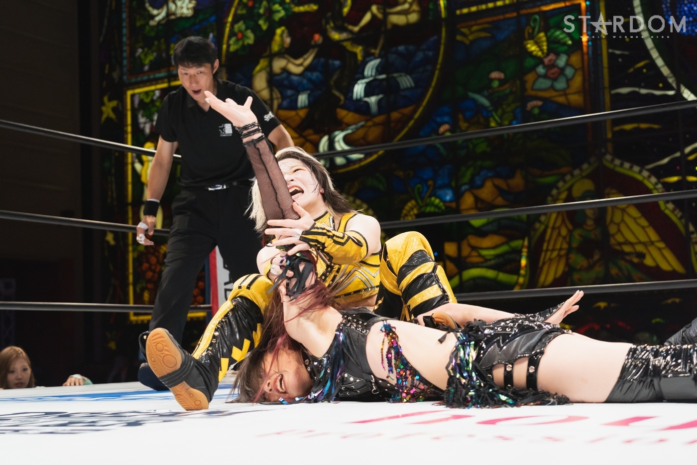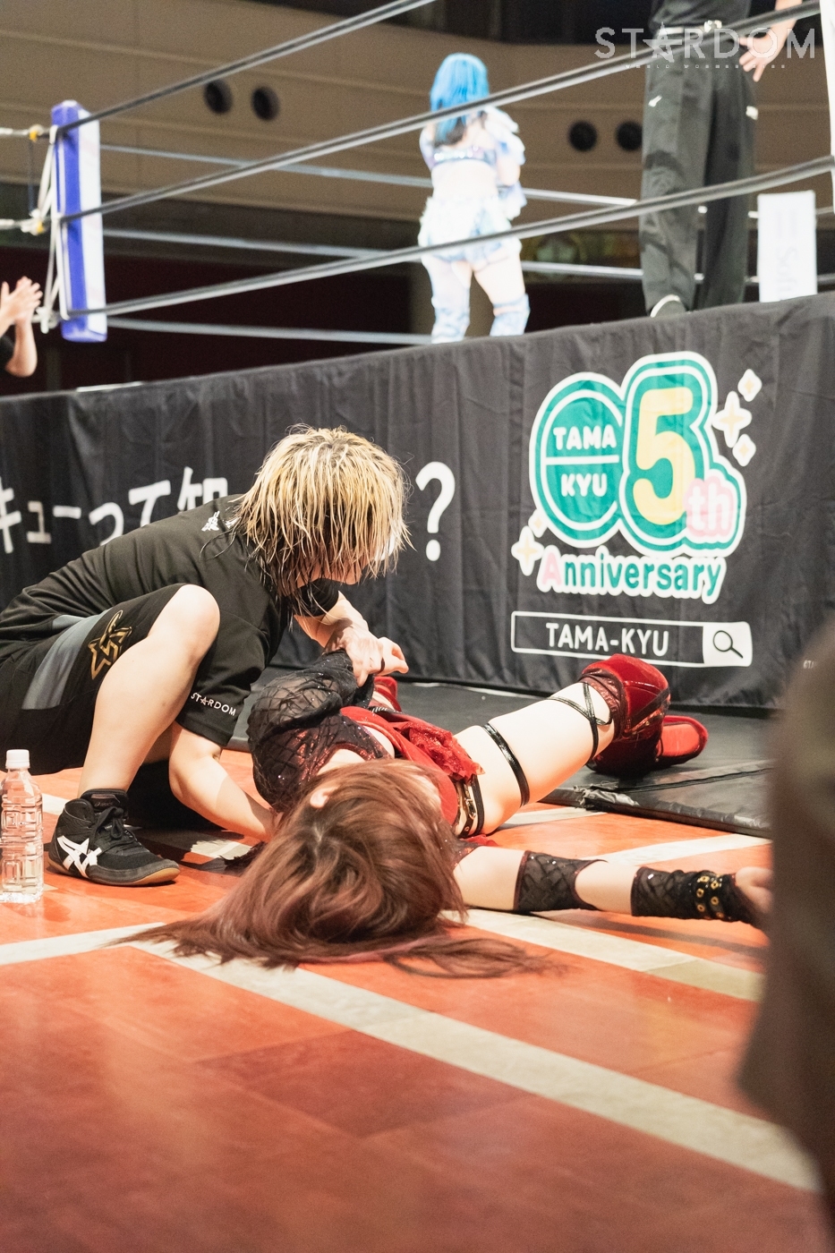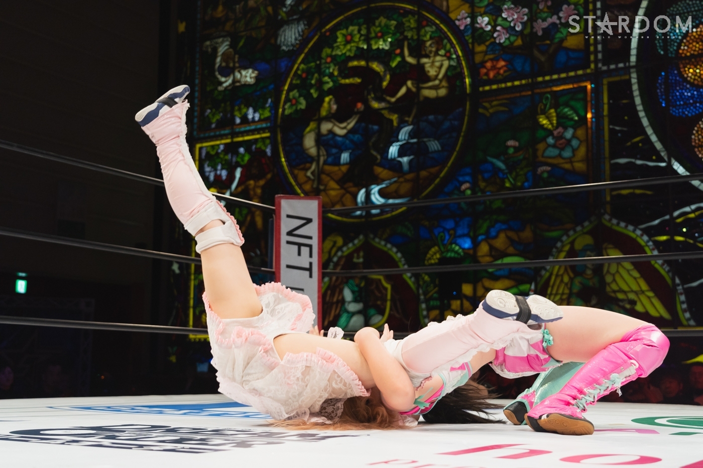 梨杏がボディースラムを狙うが、さくらが切り返しキャメルクラッチから三角絞め。梨杏がエスケープしてエルボー。さくらが挑発し梨杏が連打。さくらはミドルキックで倒すが2カウント。さくらのドロップキックをかわして梨杏がドロップキック。さくらがロープに振ると梨杏がクロスボディー。梨杏がボディースラムを狙うが、さくらがこらえてエルボーの打ち合いにもっていく。さくらの突進に梨杏がコルバタ、ドロップキック。梨杏が再度投げを狙う。さくらがこらえるが、梨杏が切り返しボディースラム。ダブルニードロップをさくらが返す。梨杏が「決めるぞ!」と絶叫しフィッシャーマン狙い。さくらが切り返し三角絞め。梨杏がエスケープすると、さくらがダブルリストアームサルト。梨杏が返すと、さくらがコーナーからダイビングニーアタック。梨杏がかわして丸め込みの連続。逆さ押さえ込みをさくらが返し突進。梨杏が止めてフィッシャーマンで叩きつける。さくらが返すと、梨杏の突進にミドルキック。さくらが狙いすまして前蹴りの連打。梨杏が返すと、さくらのハイキックをかわして丸め込む。ギリギリでさくらが返すとカウンターのハイキックから変型ヘッドシザーズ。梨杏がギブアップしさくらの勝利となった。試合後は2人で健闘をたたえ合うも、最後は笑顔のさくらが梨杏を突き飛ばして退場した。