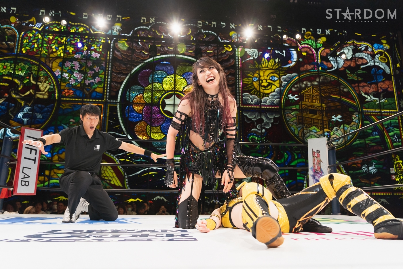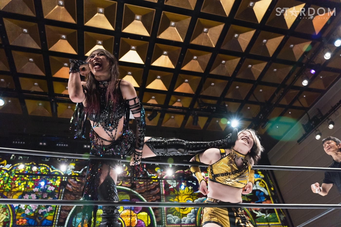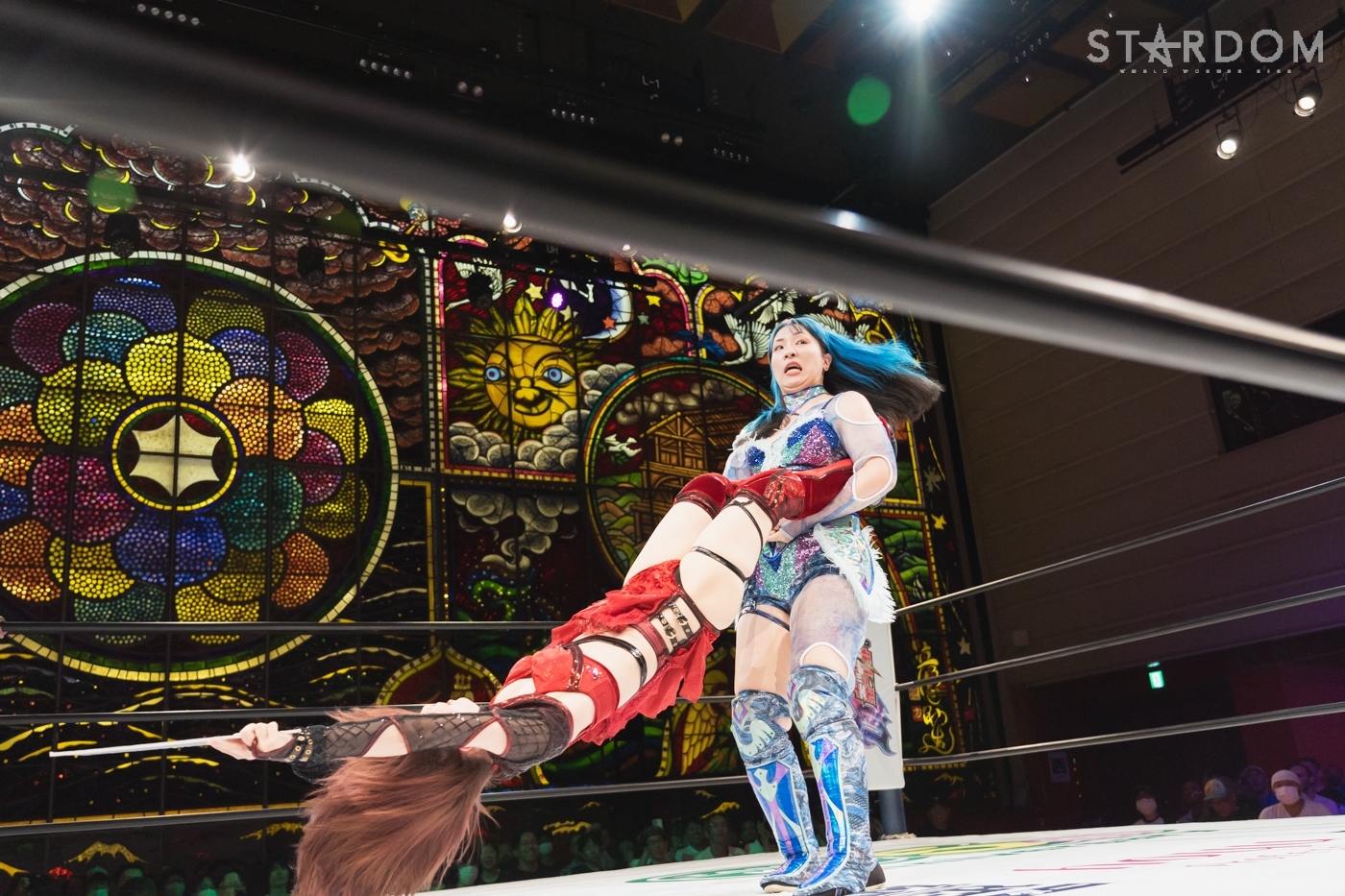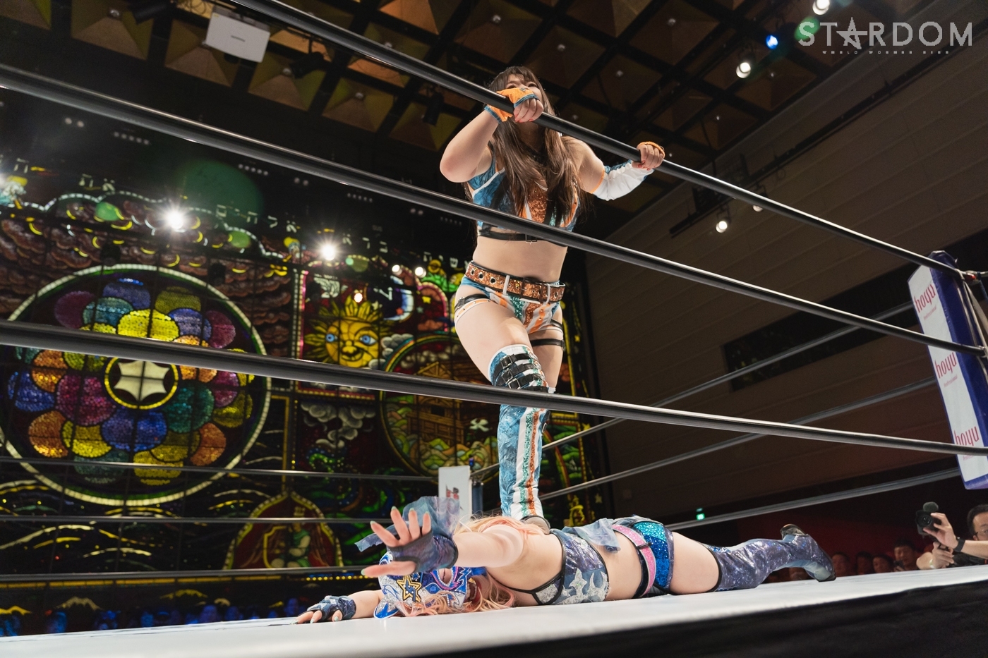 梨杏がボディースラムを狙うが、さくらが切り返しキャメルクラッチから三角絞め。梨杏がエスケープしてエルボー。さくらが挑発し梨杏が連打。さくらはミドルキックで倒すが2カウント。さくらのドロップキックをかわして梨杏がドロップキック。さくらがロープに振ると梨杏がクロスボディー。梨杏がボディースラムを狙うが、さくらがこらえてエルボーの打ち合いにもっていく。さくらの突進に梨杏がコルバタ、ドロップキック。梨杏が再度投げを狙う。さくらがこらえるが、梨杏が切り返しボディースラム。ダブルニードロップをさくらが返す。梨杏が「決めるぞ!」と絶叫しフィッシャーマン狙い。さくらが切り返し三角絞め。梨杏がエスケープすると、さくらがダブルリストアームサルト。梨杏が返すと、さくらがコーナーからダイビングニーアタック。梨杏がかわして丸め込みの連続。逆さ押さえ込みをさくらが返し突進。梨杏が止めてフィッシャーマンで叩きつける。さくらが返すと、梨杏の突進にミドルキック。さくらが狙いすまして前蹴りの連打。梨杏が返すと、さくらのハイキックをかわして丸め込む。ギリギリでさくらが返すとカウンターのハイキックから変型ヘッドシザーズ。梨杏がギブアップしさくらの勝利となった。試合後は2人で健闘をたたえ合うも、最後は笑顔のさくらが梨杏を突き飛ばして退場した。