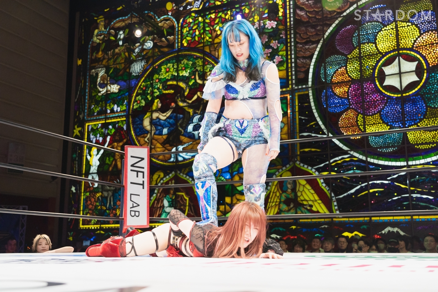 2連勝中の上谷沙弥と1勝1敗の八神蘭奈による公式リーグ戦。H.A.T.E.入りでヒールとなった上谷は、シングルリーグ戦でも白星を伸ばしており、3連勝は射程圏内。対する八神は開幕戦で鹿島沙希を破る金星を挙げており、この試合でも番狂わせをやってのけるか期待がかかる。