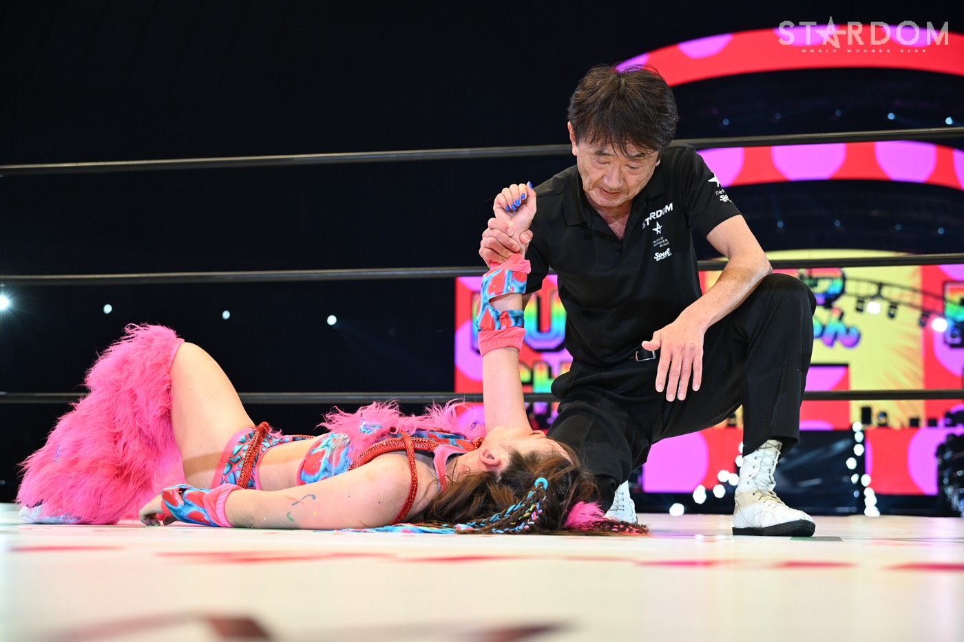 安納の猛攻をしのぐと、最後は「直伝、葉・月ストラル」で電光石火の3カウントを奪った。