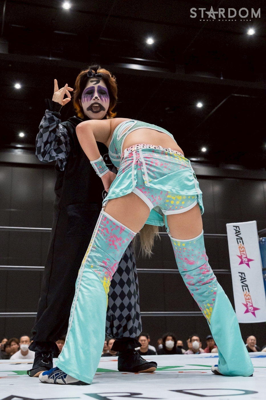 ネオジェネシスのスターライト・キッド&天咲光由組とH.A.T.E.の小波&フキゲンです★組がタッグマッチで激突。アーティスト・オブ・スターダム王座をめぐる因縁はもちろん、11・3大田区でのワンダー・オブ・スターダム王座戦が決まったキッドと小波には前哨戦となる。白いベルト挑戦表明以来、精神的には小波がリードしているように見える。再戦に向けて、同じ轍は踏まないとばかりに優位に立つ小波。王者・キッドに反撃の秘策はあるのか?