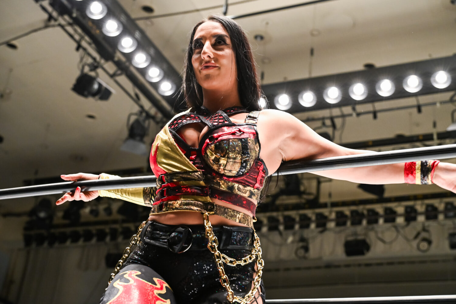 ジーナ「後楽園ホール、ありがとう! 素敵な空気だね。後楽園ホールはとても特別な場所です。日本のレスリングの中心です。今日は強さを示して勝ったんです。ありがとうございました」