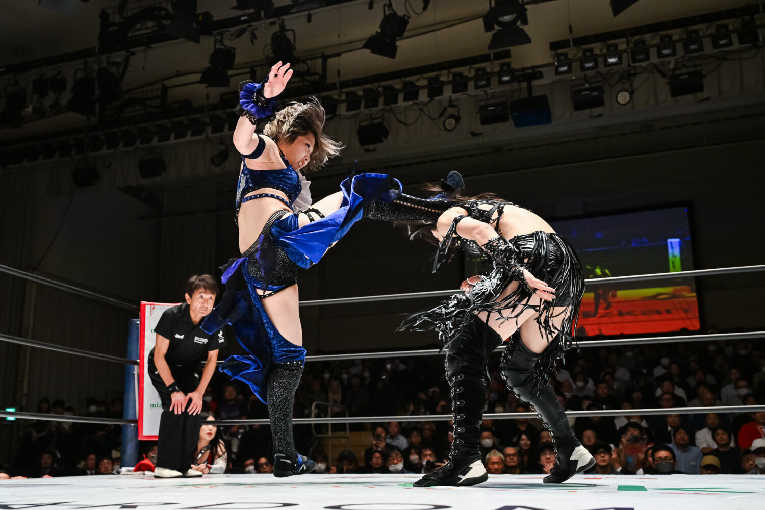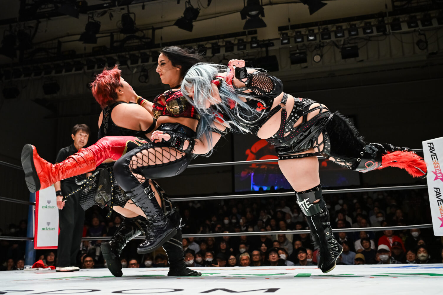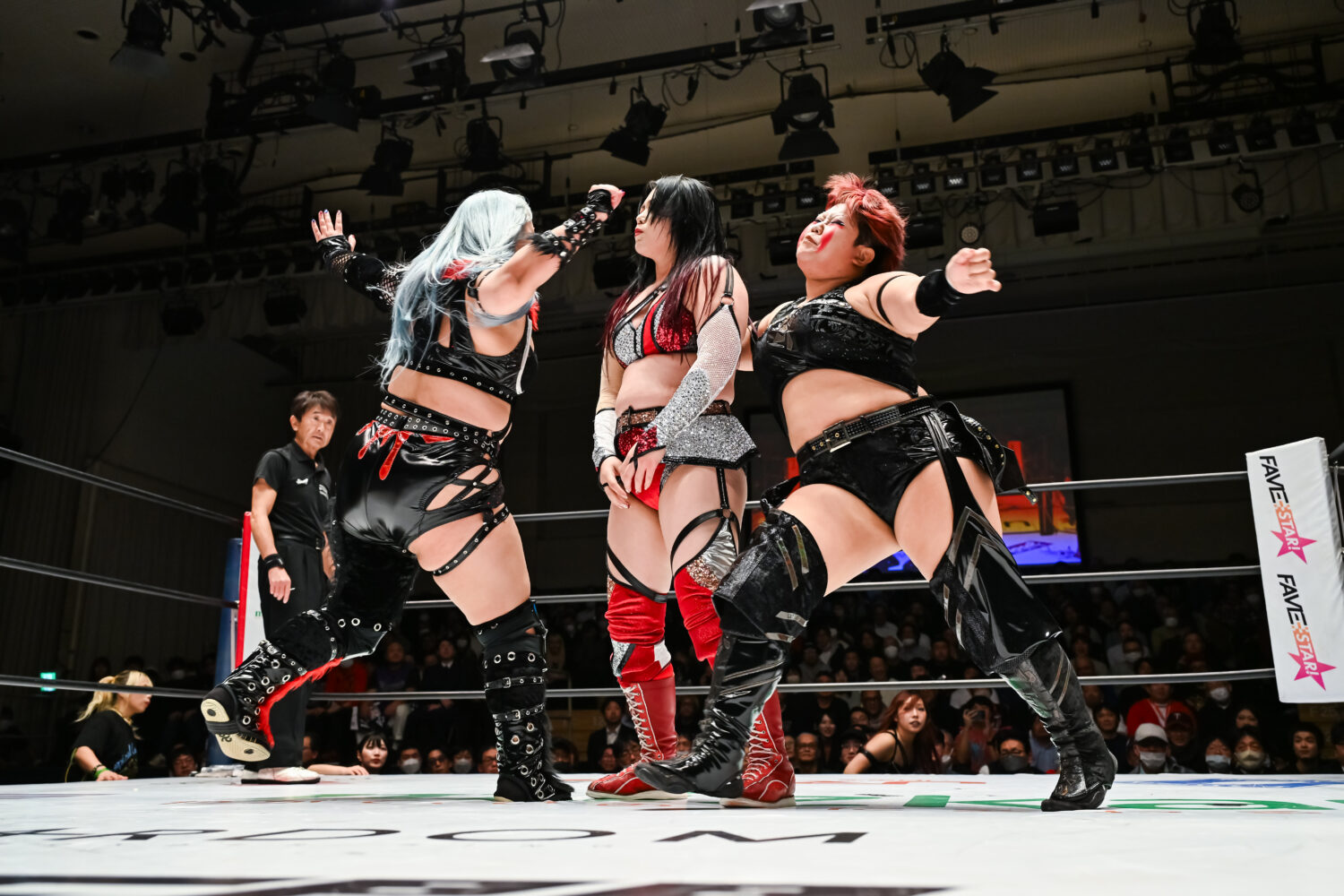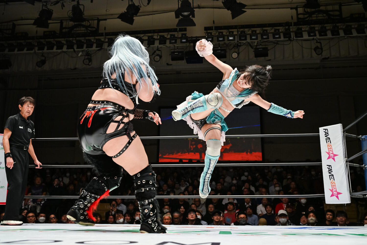 右ヒジ故障で欠場していた舞華が5・6福岡以来、7カ月ぶりに復帰。安納サオリ&玖麗さやかのコズミックエンジェルズとチームを結成する。試合は8人タッグマッチでもうひとりはXとされている。そのⅩは入場時にわかる仕組み。Xとは舞華とかかわりのある人物なのか、それとも? 相手は舞華が指名した通り、刀羅ナツコを含むH.A.T.E.で上谷沙弥&ナツコ&琉悪夏&稲葉あずさ組という構成。ナツコ&琉悪夏にはタッグリーグ決勝戦で敗れた玖麗へのリベンジマッチにもなる。そしてまた、上谷と安納には12・29両国でおこなわれるワールド・オブ・スターダム王座戦に向けての前哨戦だ。