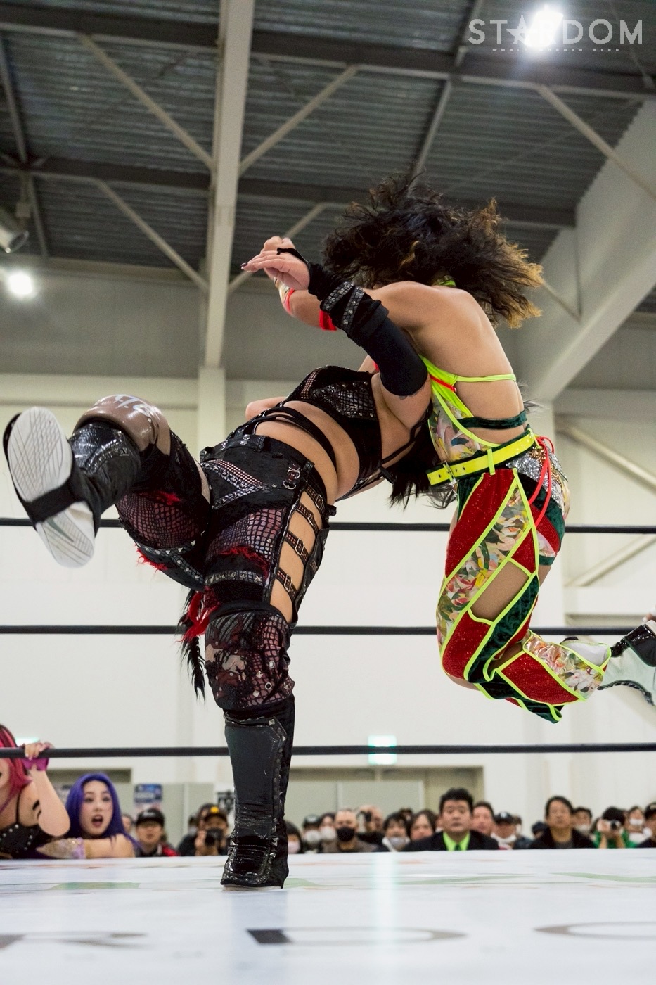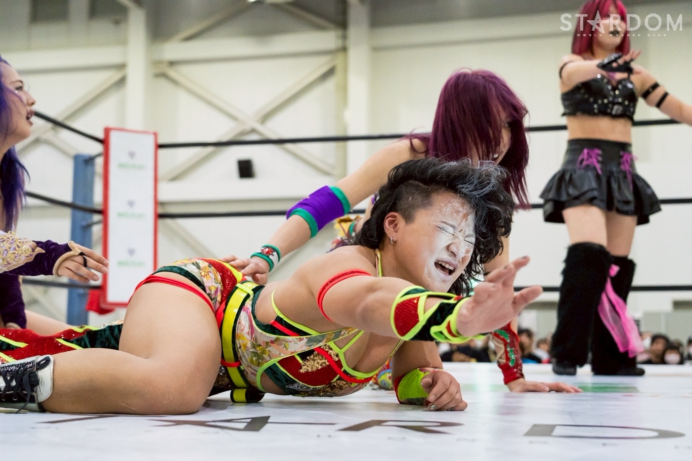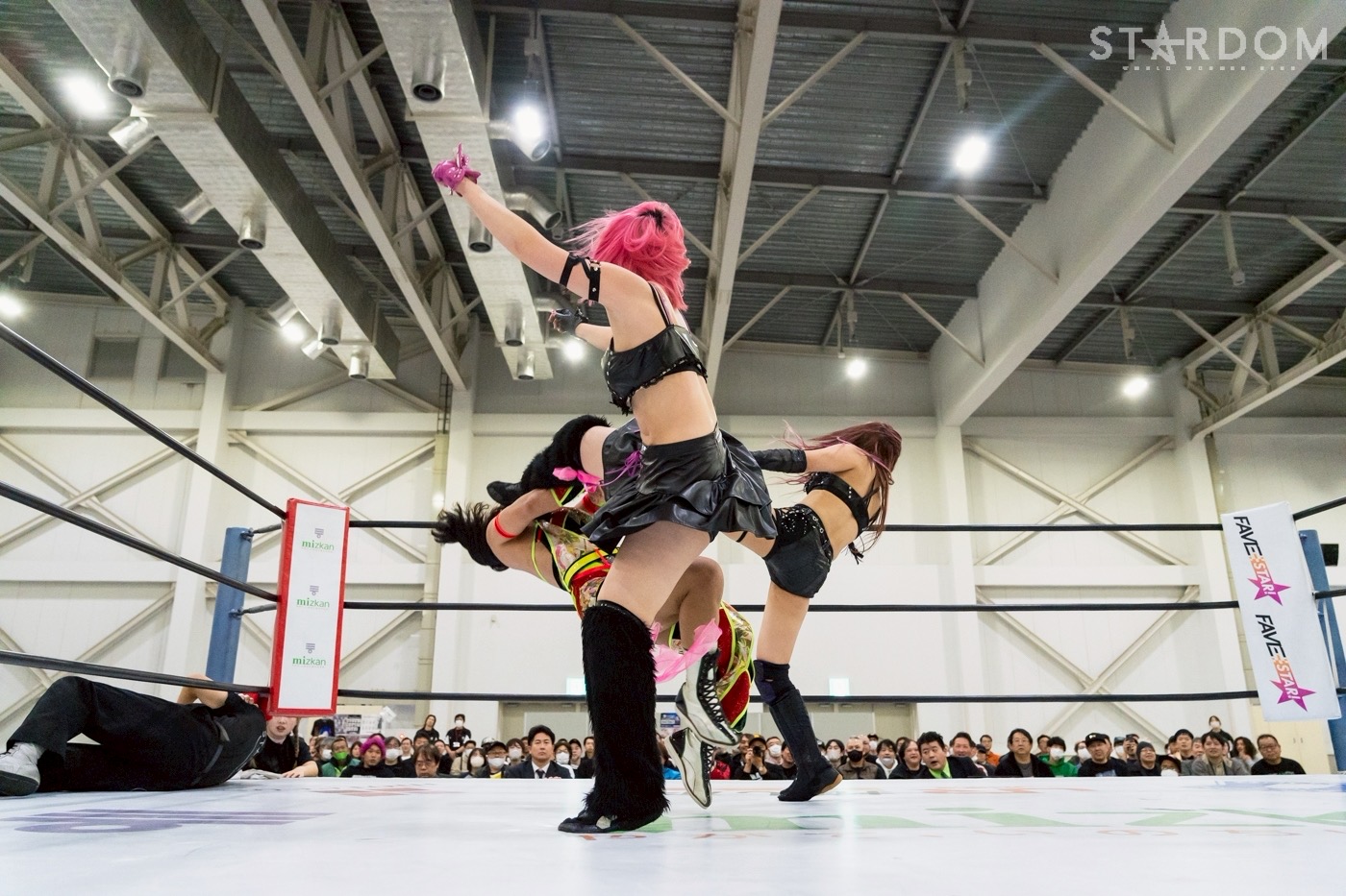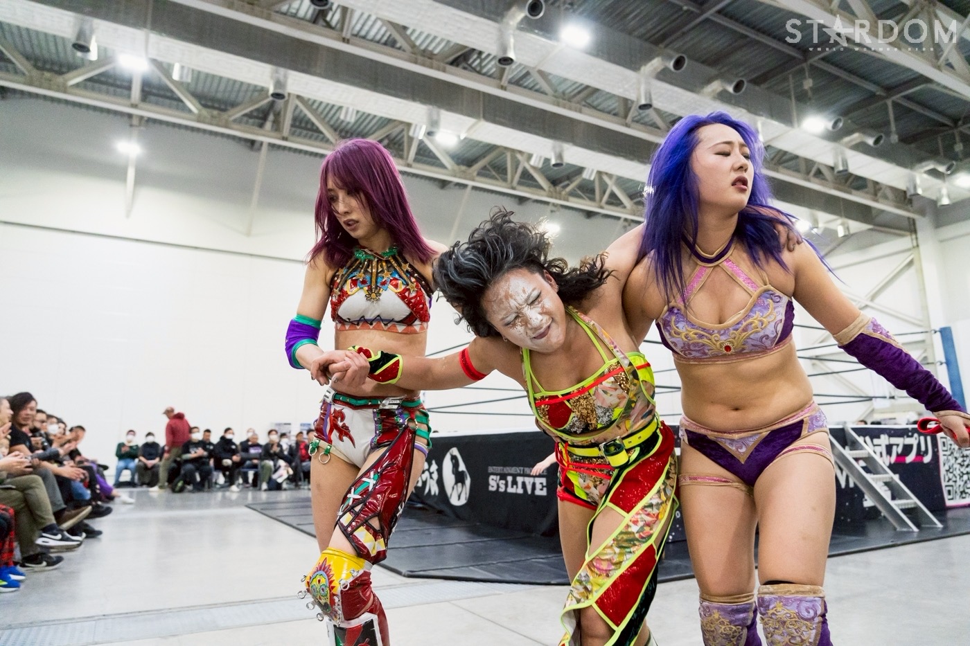 STARSの飯田沙耶&向後桃&姫ゆりあ組とH.A.T.E.の小波&吏南&稲葉あずさ組が6人タッグマッチで激突。壮麗亜美を破り白いベルトへの挑戦権を獲得した飯田には小波とのタイトルマッチに向けた前哨戦。12・29両国に向けて、この試合でも小波がゲームを仕掛けるかが注目されるところだ。