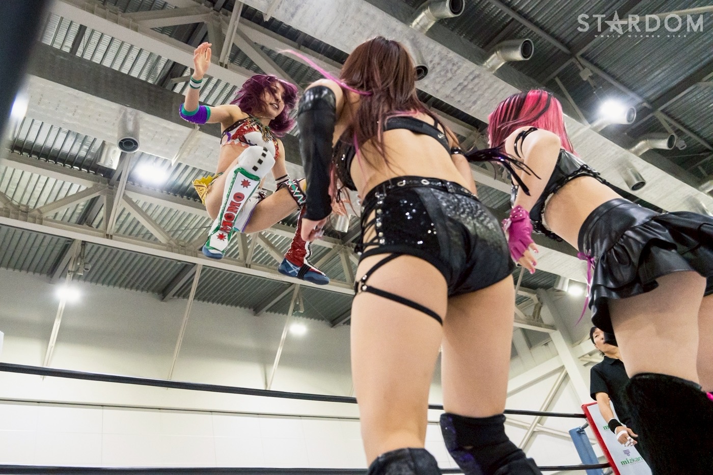 ゆりあが手を上げて、先発に名乗りを挙げる。飯田と小波が睨み合うなか、ゆりあとあずさで試合がスタート。腕の取り合いから、あずさがヘッドロック。ゆりあが脱け出すと、STARSが割って入り連係攻撃、3人でドロップキックを見舞う。あずさが返すと、こんどH.A.T.E.が乱入して場外戦へ突入。小波は、飯田をターゲットに白いベルトも使って攻めていく。ゆりあが戻され、あずさがコーナーに追い詰めストンピング連打。あずさは、サッカーボールからPK。吏南がゆりあにヘアーホイップ、「このクソ新人が!」と顔面を踏みつける。ゆりあがエルボー連打で向かっていくと、吏南が仁王立ちで受けて立つ。吏南はビッグブーツでゆりあを吹っ飛ばすが、カウンターでドロップキックを食らう。向後もつづいてドロップキック。すると、あずさが乱入。しかし、向後がまとめてスワンダイブ式ミサイルキック。向後は予告して、スープレックスの構え。吏南がかわし、ビッグブーツ。向後が返すと、吏南がノーザン狙い。向後が切り返してドロップキック。あずさのアシストから吏南がドロップキック。小波が向後にニーアタック、スライディングキック、ダイビングボディーアタック。飯田が小波にショルダータックル、逆水平の連打を浴びせる。小波が頭部にパンチを浴びせるが、STARSが入って連係攻撃。合体フェースクラッシャー狙いは、足を引かれて不発に。H.A.T.E.が飯田を捕獲し、次々と串刺し攻撃、小波がミドルキック。飯田が返すが、小波がジャーマン。小波がコーナーに上がると、飯田が追いつきマットに叩きつける。返された飯田は、ファイナルカットを狙う。切り返した小波がワキ固め、切り返されるとハイキック。2発目を読んだ飯田が、飯田橋。しかし、H.A.T.E.のカットが間に合う。混戦から小波が打撃の連打。ハイキックを浴びた飯田が倒れ込むと、小波がスプレーを持ち出す。しかし、飯田がかわしてラリアット、ファイナルカット。10分経過。小波が返すと、飯田はブレーンバスターへ。小波が切り返してレフェリーに飯田をぶつける。そして小波が白スプレーを顔面噴射、バズソーキック。飯田が返せず、小波が3カウントを奪ってみせた。