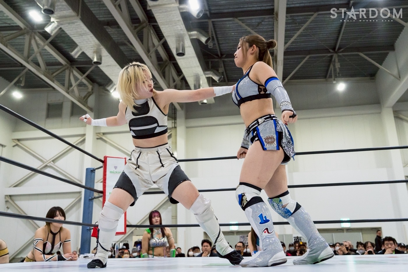 青木が大音量の「よろしくお願いします!!」。ゴッズアイがドン引きするなか、試合は山下と八神でスタート。山下が握手しないゴッズアイを糾弾。「あらためてやろう」と、山下が八神に握手を求める。八神が応じると見せかけてローキック。悶絶の山下が向かっていくと、八神がもう一発。3発目を山下がかわすが、八神が倒す。しかし山下が反撃、強引に握手をさせてから八神を孤立させる。MVLが八神を次々とヘアーホイップ。全員でマットに叩きつけ、MVLをアピールする。アキラが八神に串刺し攻撃の連続。八神がカウンターでドロップキック、PK。ともかがアキラにニー。アキラがこらえてエルボー連打。ともかが受けて立ち、エルボー連打のお返し。アキラのエルボー連打を再びともかが受けて立つ。アキラのドロップキック3連打をともかがこらえる。4発目をかわすと、サッカーボールキックを連発。レディがアキラにストンピング連打、ボディースラム、ニードロップ。アキラのエルボーに、レディは「きかねえよ!」とお返しの一発。レディはアキラのドロップキック連打も受けて立つ。ボジラが入り、レディにクロスボディー。妃南が入ってくると、ボジラが場外に送り出す。ともかと八神が合体も、ボジラがまとめてバックドロップ、レディにはブレーンバスター。返したレディにボジラが突進。レディがかいくぐってビッグブーツを連打。ともにショルダーをぶつけ合う。ボジラは「ノーダメージ」を主張。ボジラの突進をレディと壮麗が合体で吹っ飛ばす。レディがビッグブーツ、替わった壮麗が、ボジラとラリアットをぶつけ合う。壮麗は、「ボジラ倒すぞ!」と叫んでラリアット。ボジラがかいくぐりラリアットを決めると、後方に投げつける。鈴季が壮麗に串刺しエルボー、串刺しニー。壮麗が逆水平、鈴季が悶絶も、エルボーでやり返す。鈴季がエルボー連打、壮麗が逆水平連打。鈴季がカウンターのエルボー、壮麗がカウンターでダブルチョップ。鈴季がテキーラショットの構えにいくが、壮麗が切り返してブレーンバスター。10分経過。鈴季がジャーマン、壮麗がラリアット。妃南が青木のランニングヘッドバットをかわし、串刺しニーアタック、ネックブリーカー、STF。青木がなんとかエスケープ成功し、DDT、ランニングダブルニードロップ。妃南が返すと、青木がバックを取る。妃南が切り返すと、壮麗がボディーアタック。ともかと八神がキックの挟み撃ち。レディと妃南でネックブリーカー。しかし、MVLがカット成功。妃南は、青木にジャックハマー狙い。青木が切り返すと鈴季がスピア、山下がラリアット、青木がダブルニーアタック、STO。しかし、ゴッズアイがカットする。ボジラが、壮麗とレディにラリアット。妃南に青木がラリアット。妃南が外道クラッチも、2カウントどまり。妃南がSTOから青木にジャックハマーの構え。ボジラがラリアット、MVLがトラースキックの挟み撃ち、そして青木がフロッグスプラッシュ。最後は青木が妃南から3カウントを奪った。