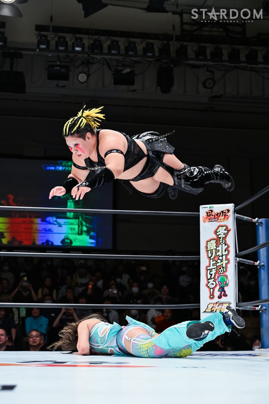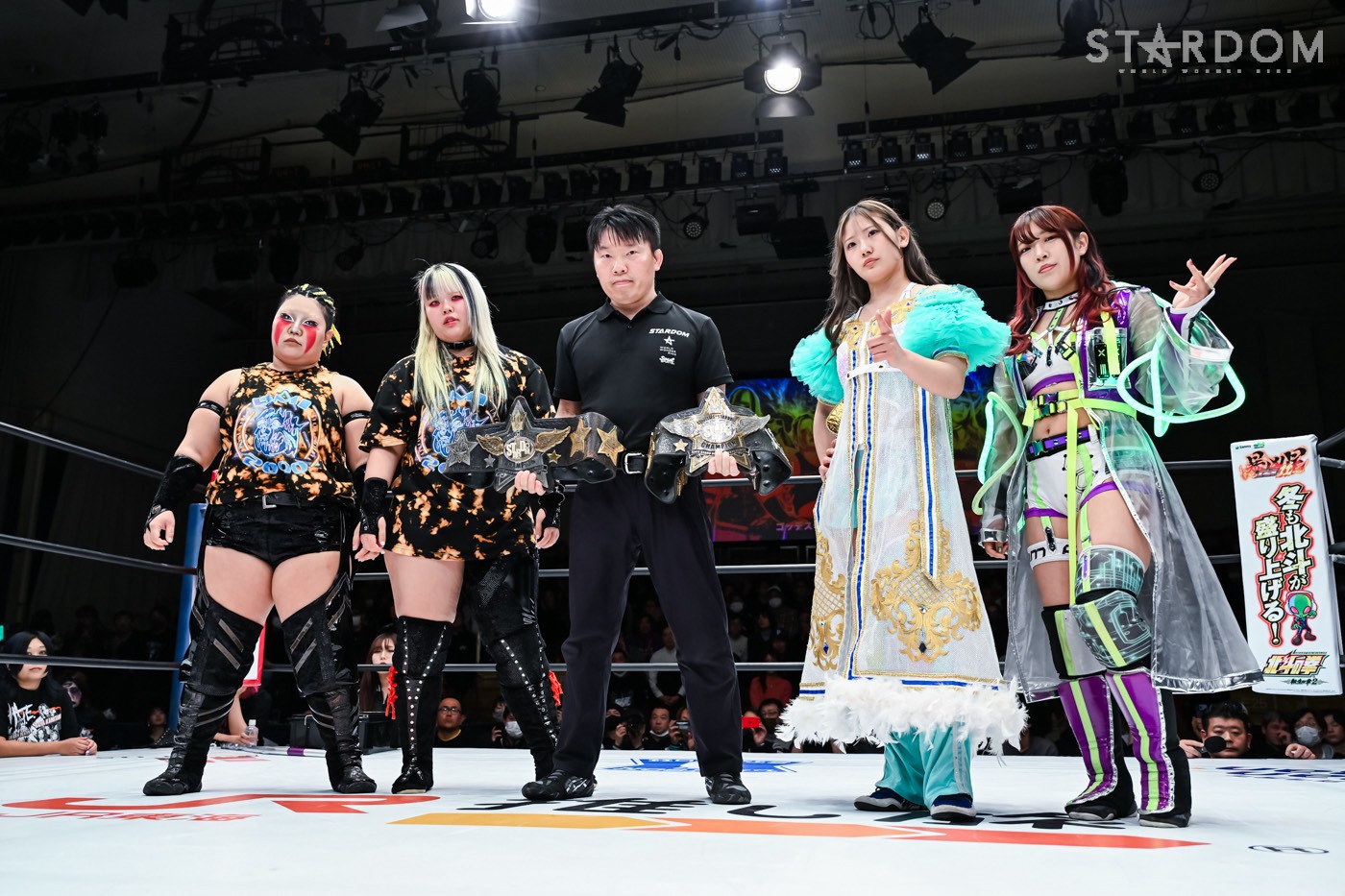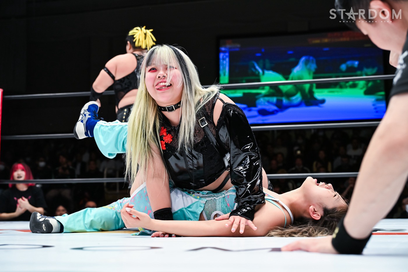 Natsuko: "02, orang-orang di sana bilang kalian tidak begitu hebat dan membosankan. (Kepada penonton) Apa? Haruskah aku memberikan mikrofon padamu? Aku tidak bisa mendengarmu. Bicaralah dengan jelas, hei. Dengar, semuanya, bayi dan pahlawan hanya menang di dunia anime dan manga! Di gulat profesional wanita Stardom, kami, H.A.T.E., akan menguasai dunia tahun ini dan pada tahun 2026. Sampai saat itu, tidurlah dalam ketakutan."