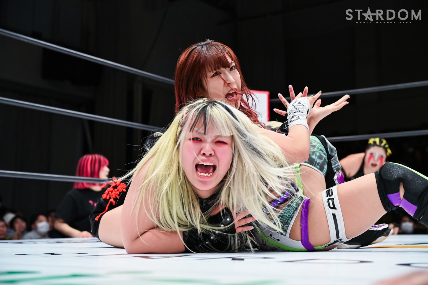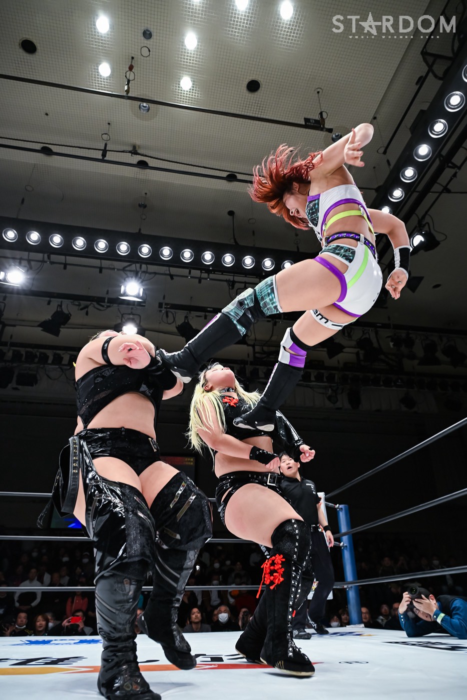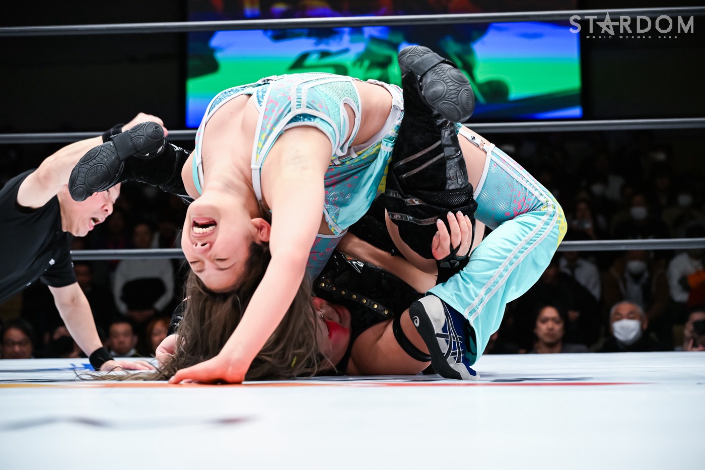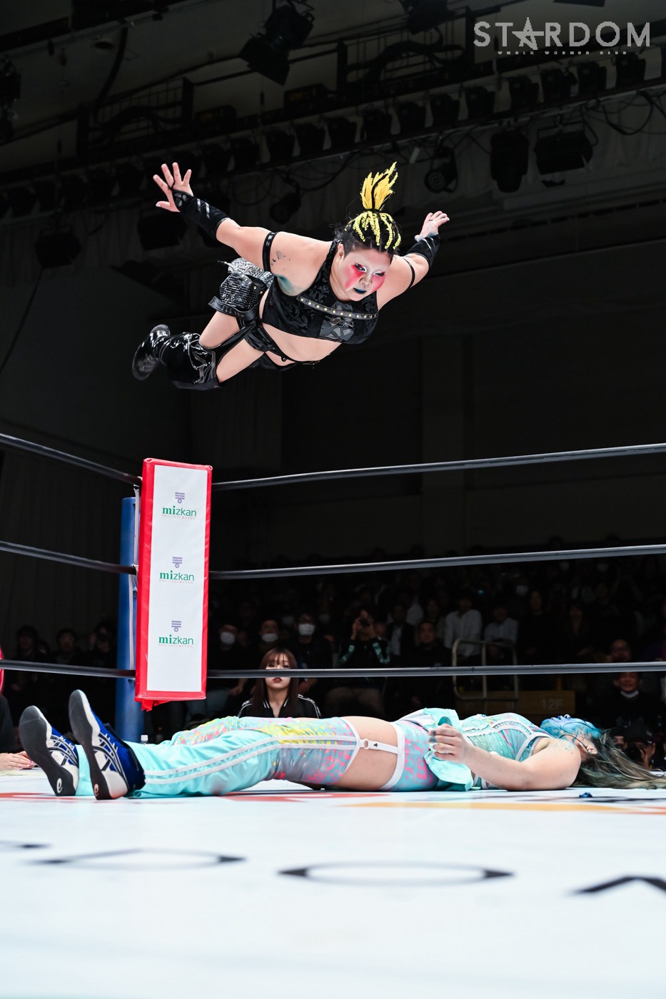 Natsuko: "02, orang-orang di sana bilang kalian tidak begitu hebat dan membosankan. (Kepada penonton) Apa? Haruskah aku memberikan mikrofon padamu? Aku tidak bisa mendengarmu. Bicaralah dengan jelas, hei. Dengar, semuanya, bayi dan pahlawan hanya menang di dunia anime dan manga! Di gulat profesional wanita Stardom, kami, H.A.T.E., akan menguasai dunia tahun ini dan pada tahun 2026. Sampai saat itu, tidurlah dalam ketakutan."