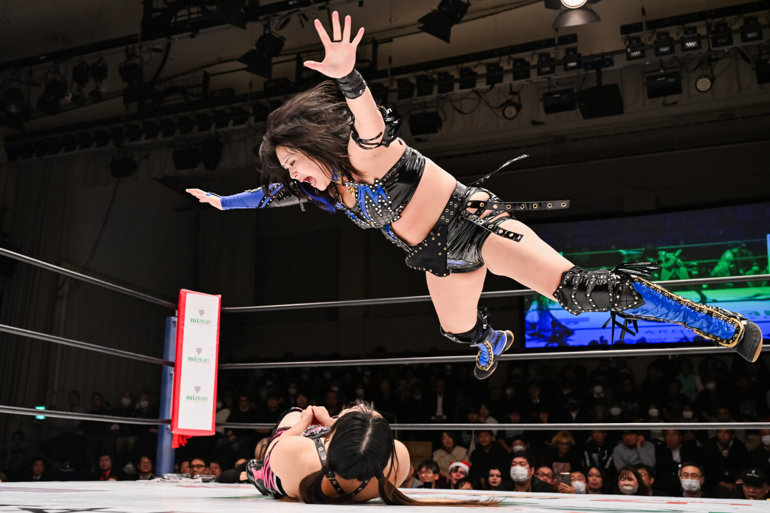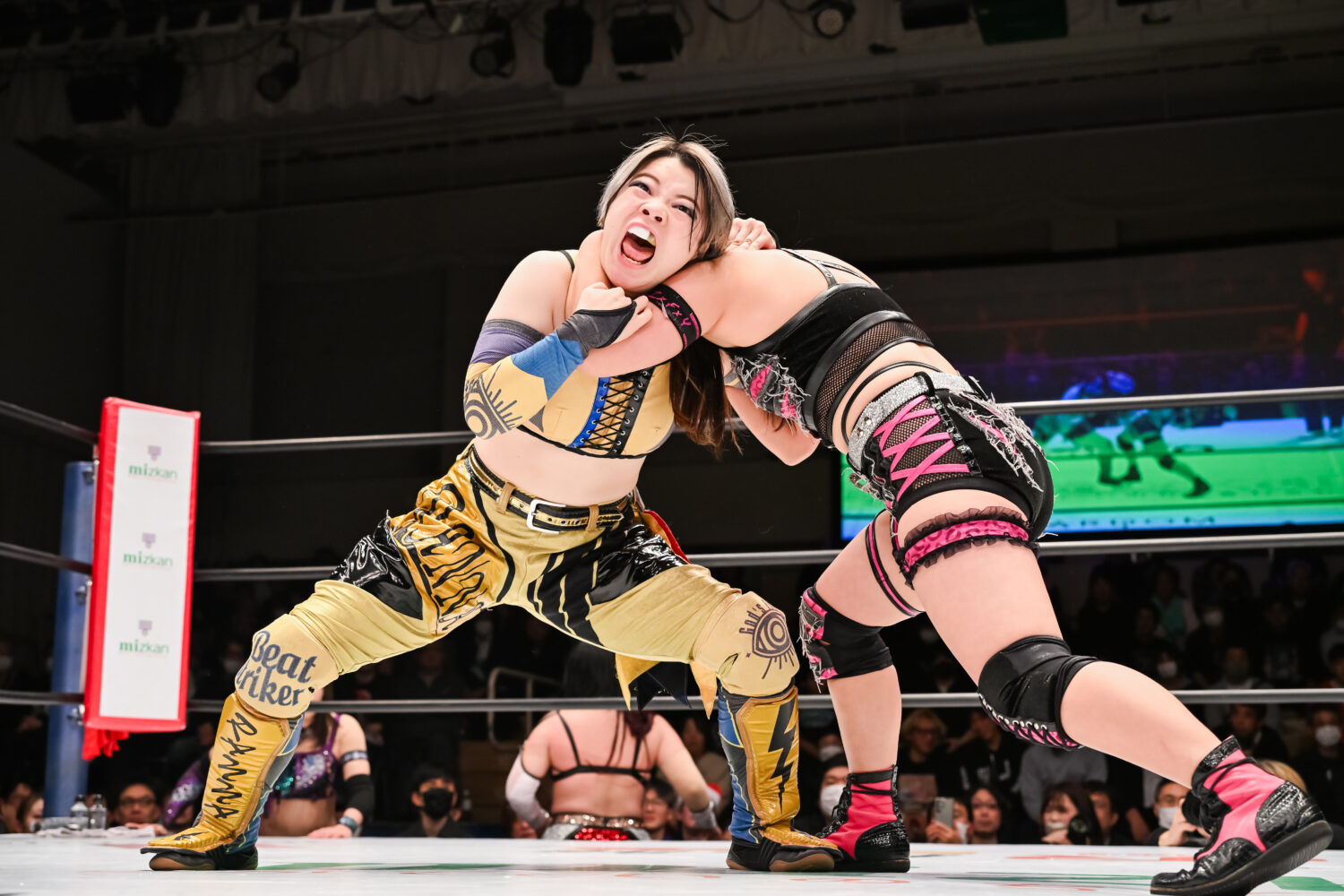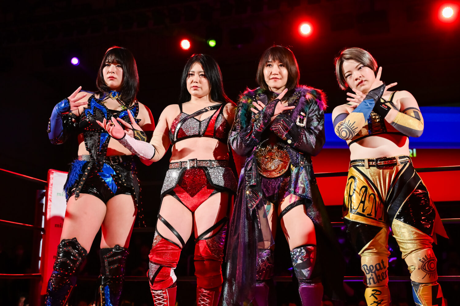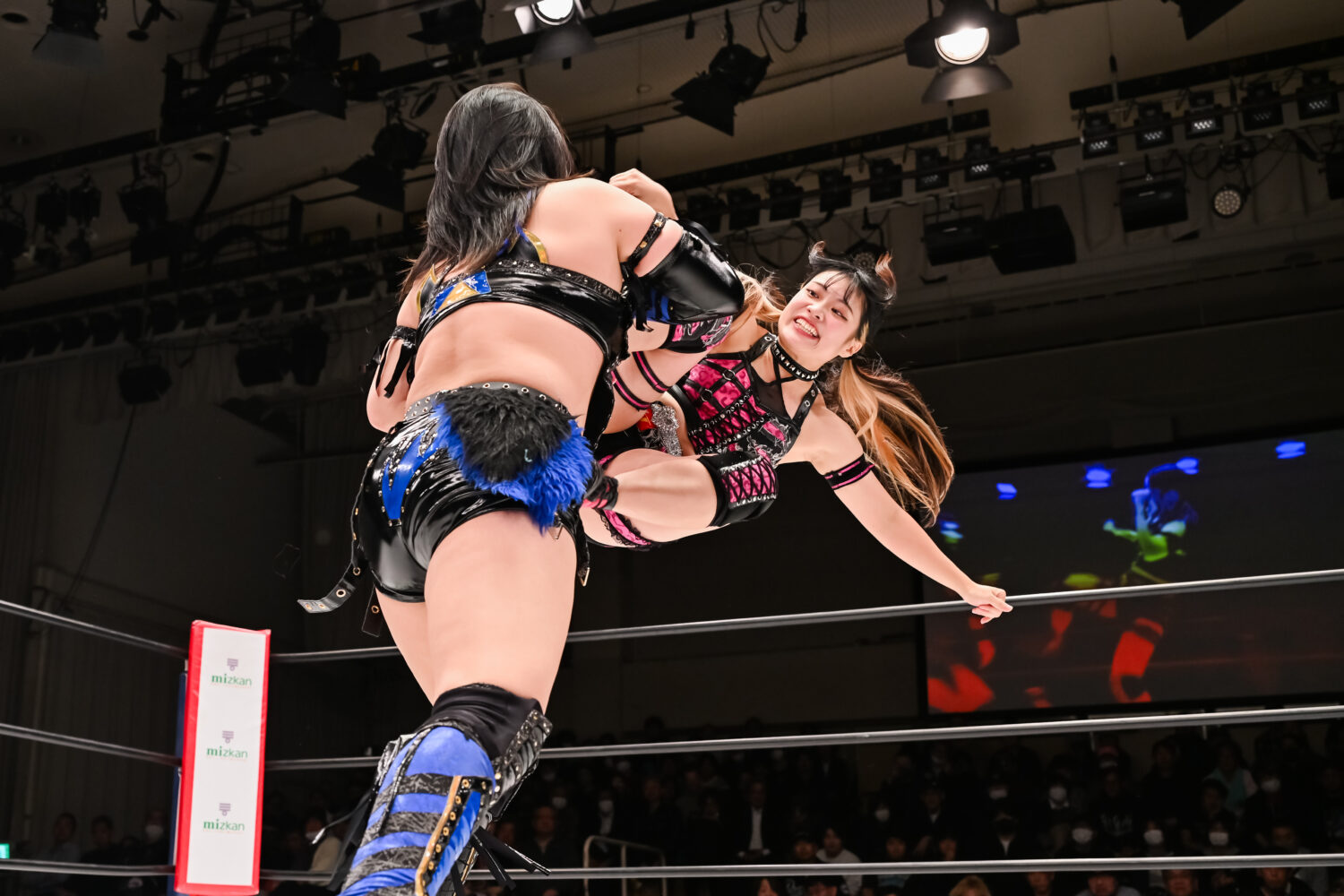 舞華が優宇を指名。橋本たちが優宇を送り出して試合開始。探り合いからロックアップで力比べ。優宇が押し込み舞華が反転。舞華が蹴りを入れて突進、ショルダーをぶつけ合う。優宇が打ち勝つと、舞華がすぐに返してみせる。YUNAが八神とロックアップ、エルボーの打ち合い。YUNAが走らせずにエルボー連打も、ドロップキックを食らう。八神が振ると、YUNAがネックブリーカー。橋本と優宇がダブルでショルダータックル、優宇、橋本が連続のランニングボディープレス。優宇は場外へみたらし団子。八神が戻され、愛海がドロップキック。八神が返すと、愛海はもう一発放つ。八神が返してサッカーボールキック。PKを愛海がかわして突進。八神がかわして串刺しハイキック、ドロップキック、PK。朱里が愛海にドロップキック、フロントネックチャンスリードロップ。愛海がジャンピングニーアタック。橋本が朱里へ串刺しラリアット。ブレーンバスターを切り返した朱里が橋本とエルボーの応酬。橋本が蹴りをつかんでアンクルホールド。朱里がバックキック、橋本がスピアも朱里が受け止める。朱里のバズソーを橋本が捕まえる。朱里はネックロックも、橋本が持ち上げてブレーンバスター。朱里がニーアタック、橋本がカウンターでラリアット。舞華と優宇のラリアットが交錯。舞華とHANAKOが優宇の腕を引く。こらえた優宇が2人に逆水平。優宇がまとめてクロスボディーアタック。舞華が返すと、優宇が起き上がりこぼし式逆水平の連打。エルボーの応酬から優宇が逆水平連打。舞華がエルボー、ラリアット、ローリングラリアット。両者ダウン状態からHANAKOがリングイン、優宇にボディーアタック、優宇が払い腰。YUNAがHANAKOへドロップキック連打、HANAKOがショルダータックル。優宇がセントーン、橋本がサマーソルト、愛海がダイビングボディープレス、YUNAがミサイルキック。10分経過。YUNAに舞華が一派音背負い、朱里と八神がキックの挟み撃ち、HANAKOがボディープレス、アルゼンチン。YUNAが丸め込みの連続も2カウント。混戦からHANAKOがYUNAにビッグブーツ、アルゼンチン、JPコースター。3カウントが入り、HANAKOがYUNAを破った。