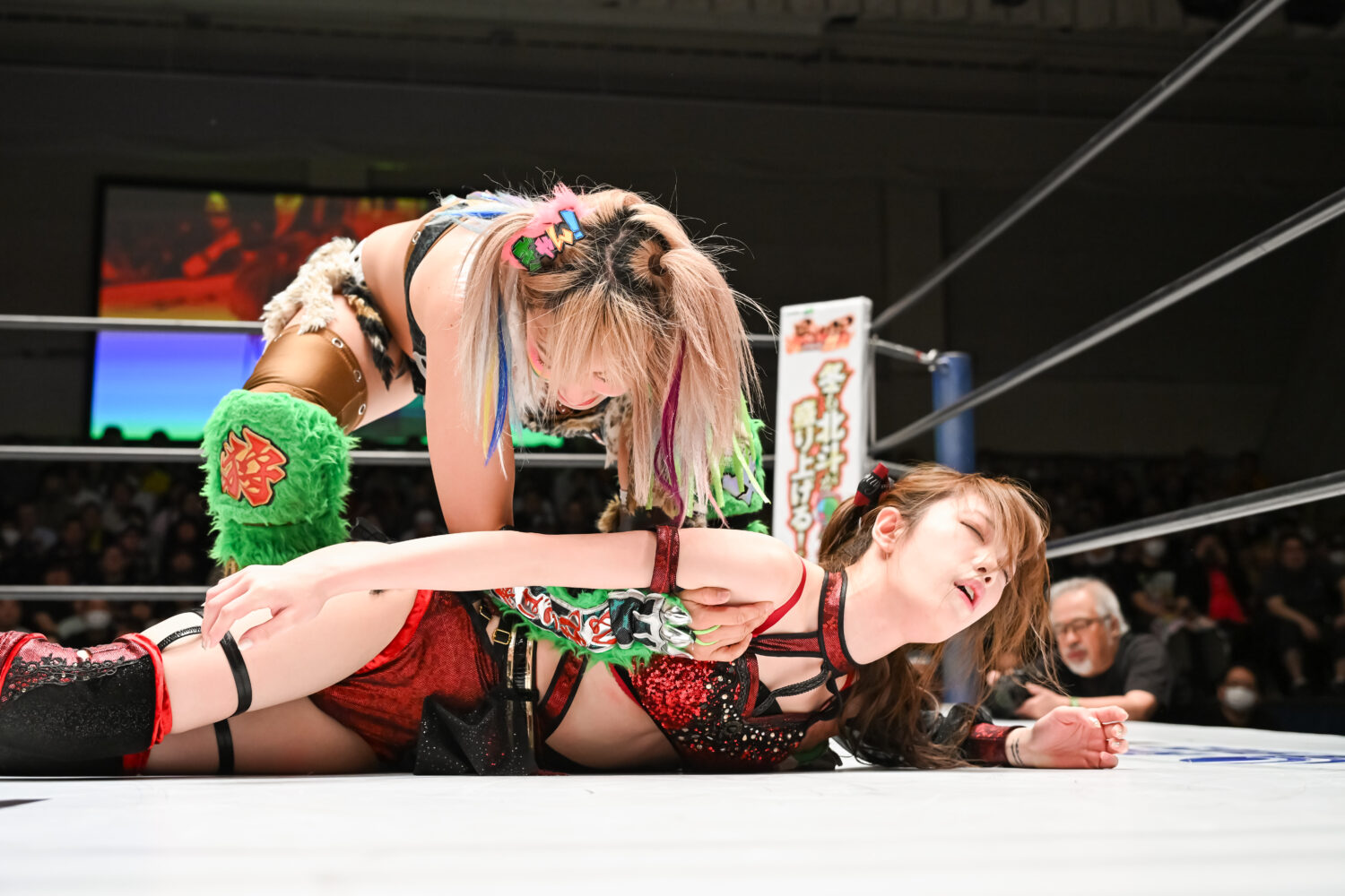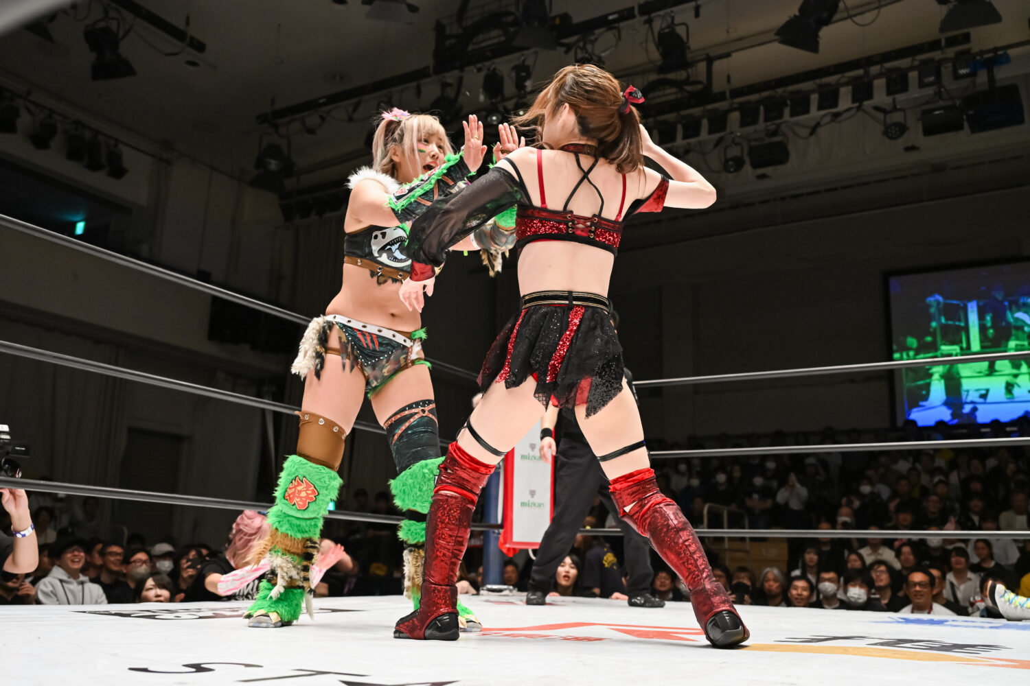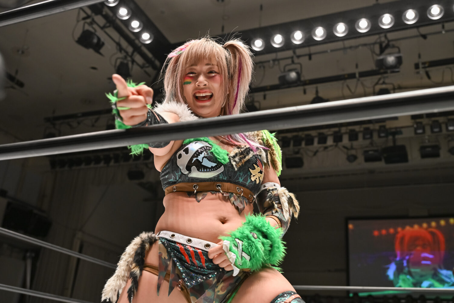 ファイナルロードを歩む鹿島沙希が、因縁のウナギ・サヤカに足をすくわれた。11日の後楽園ホール大会では葉月&コグマのFWCとトリオを結成。舞華&星来芽依&ウナギとスペシャル6人タッグマッチで対戦した。