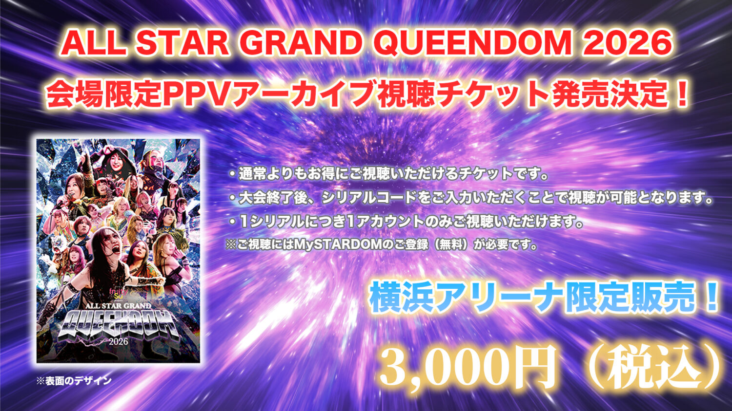 4月26日(日)神奈川・横浜アリーナにて開催される『ミツカン フルーティス presents ALL STAR GRAND QUEENDOM 2026』のPPV配信が決定いたしましたのでお知らせいたします。