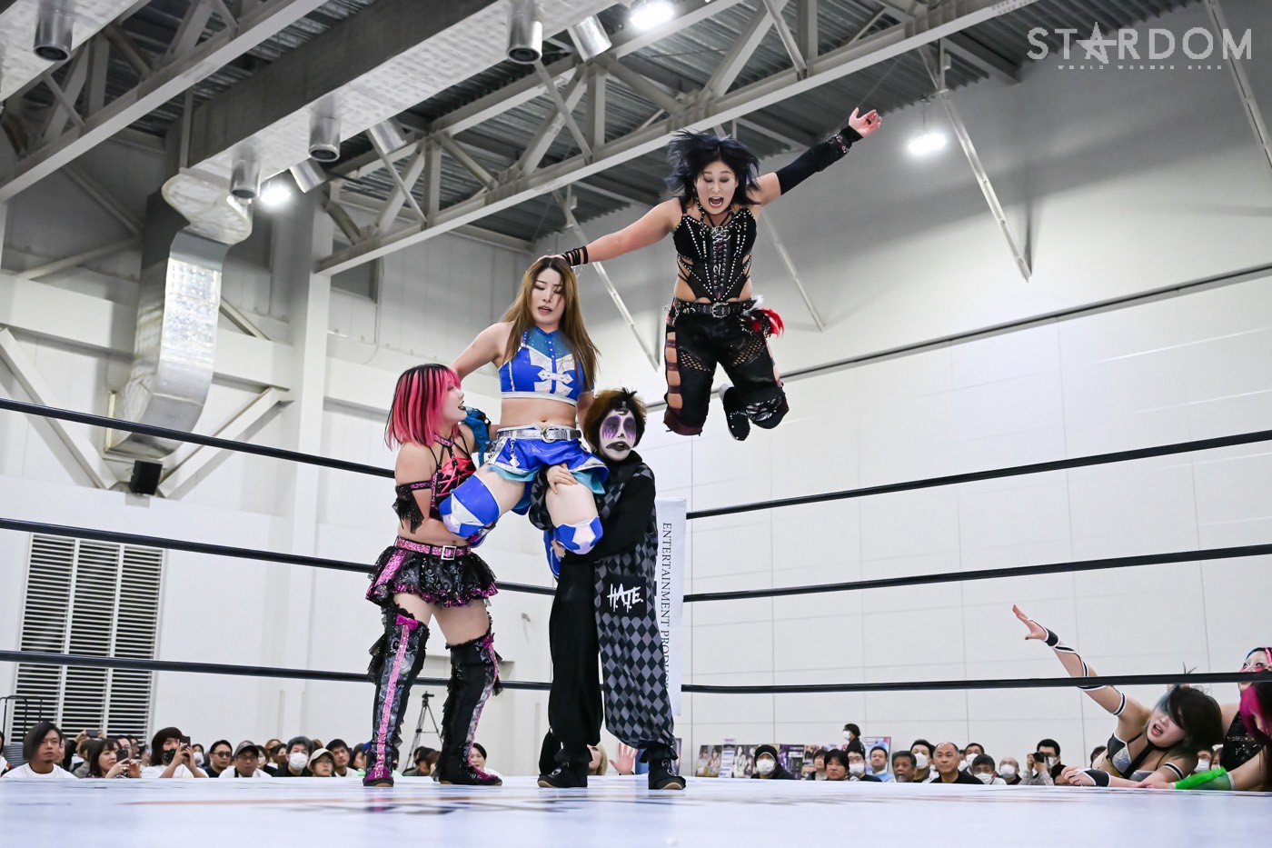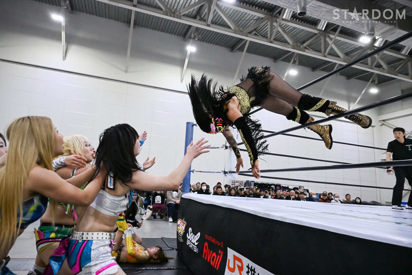 また、第3試合ではメキシコCMLLから来日しているインディア・シウクスとタバタが葉月と合体。6人タッグマッチで水森由菜&さくらあや&金屋あんねと対戦した。