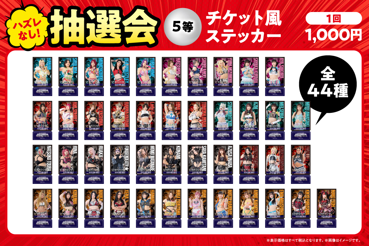 ▼5等:チケット風ステッカー(全44種・ランダム)のラインナップ
